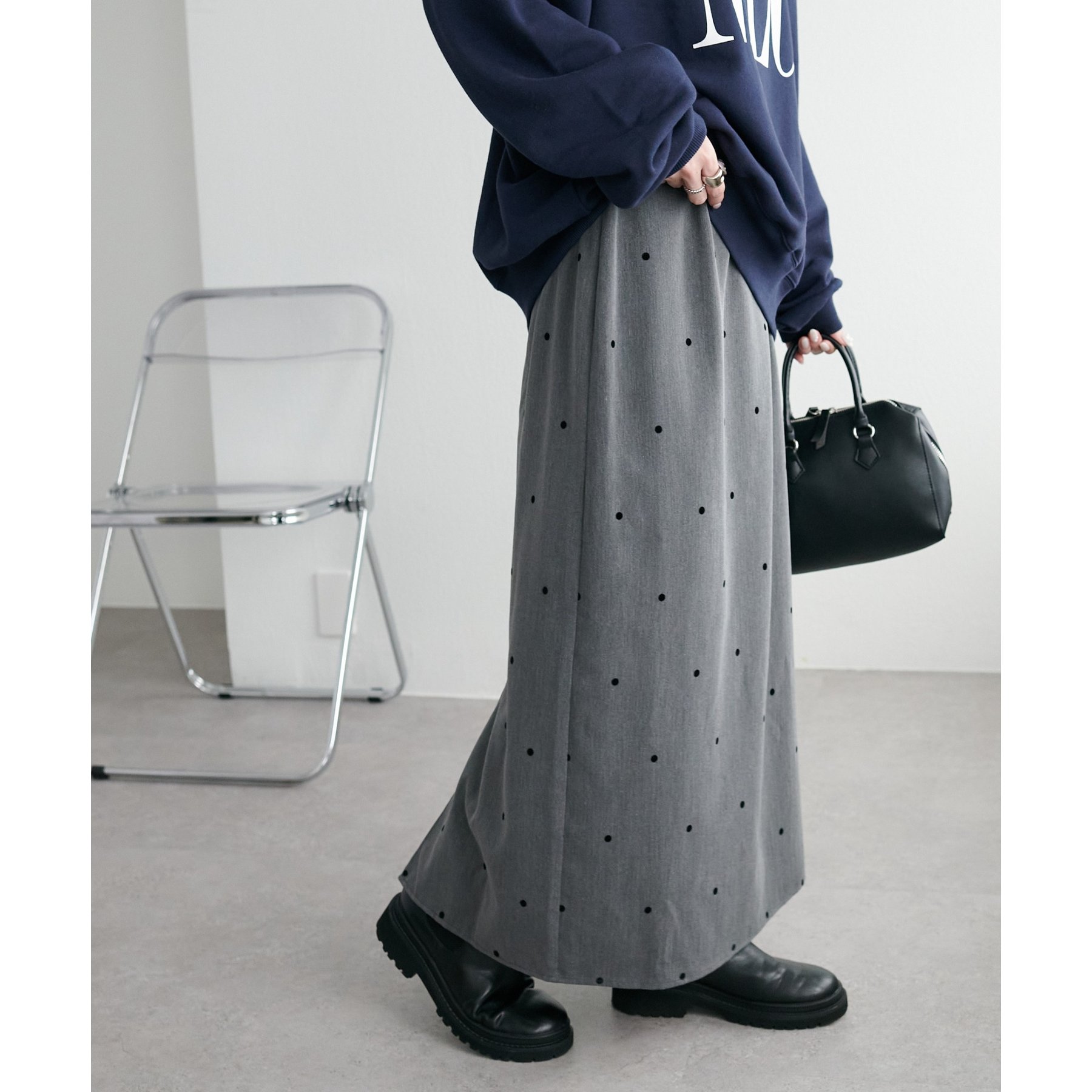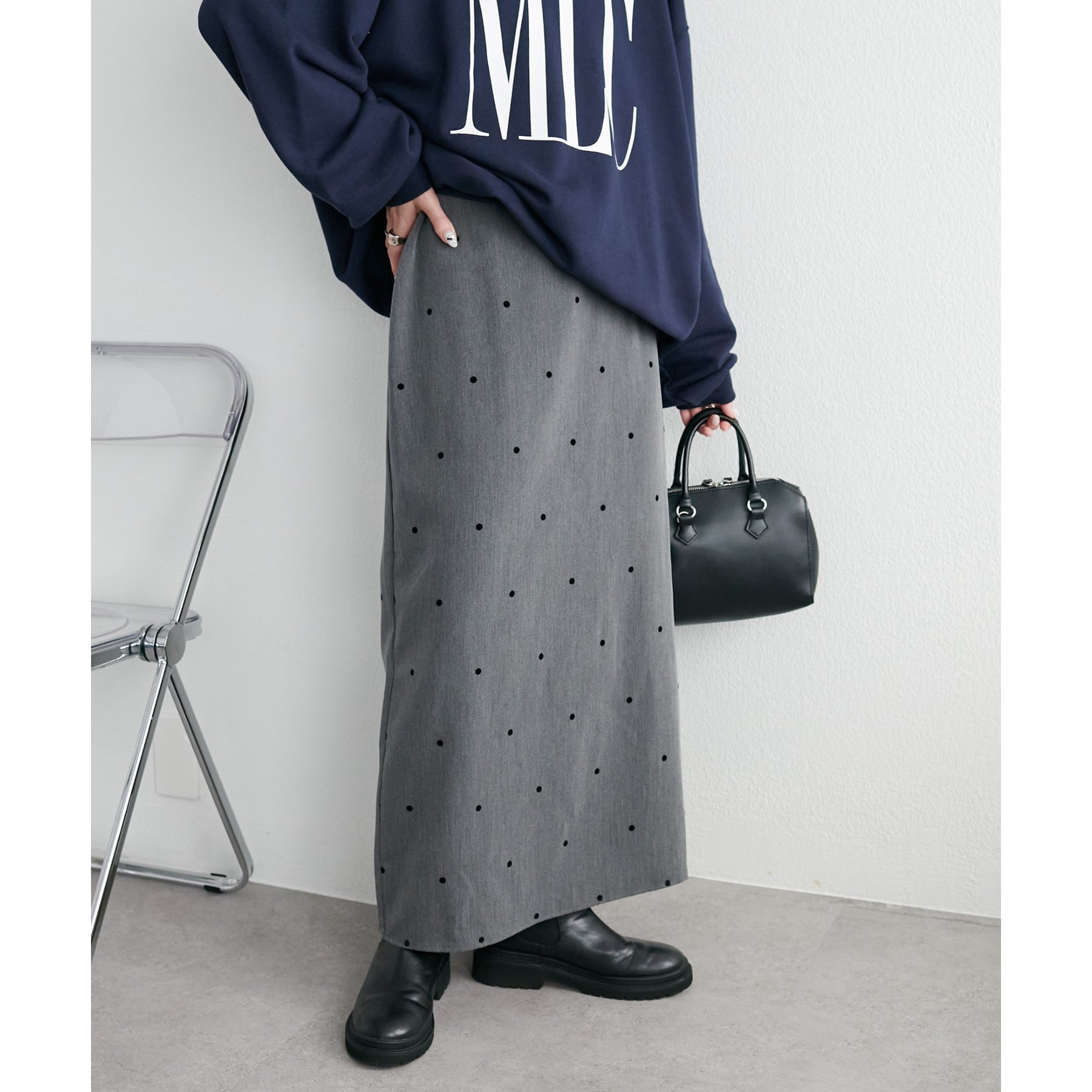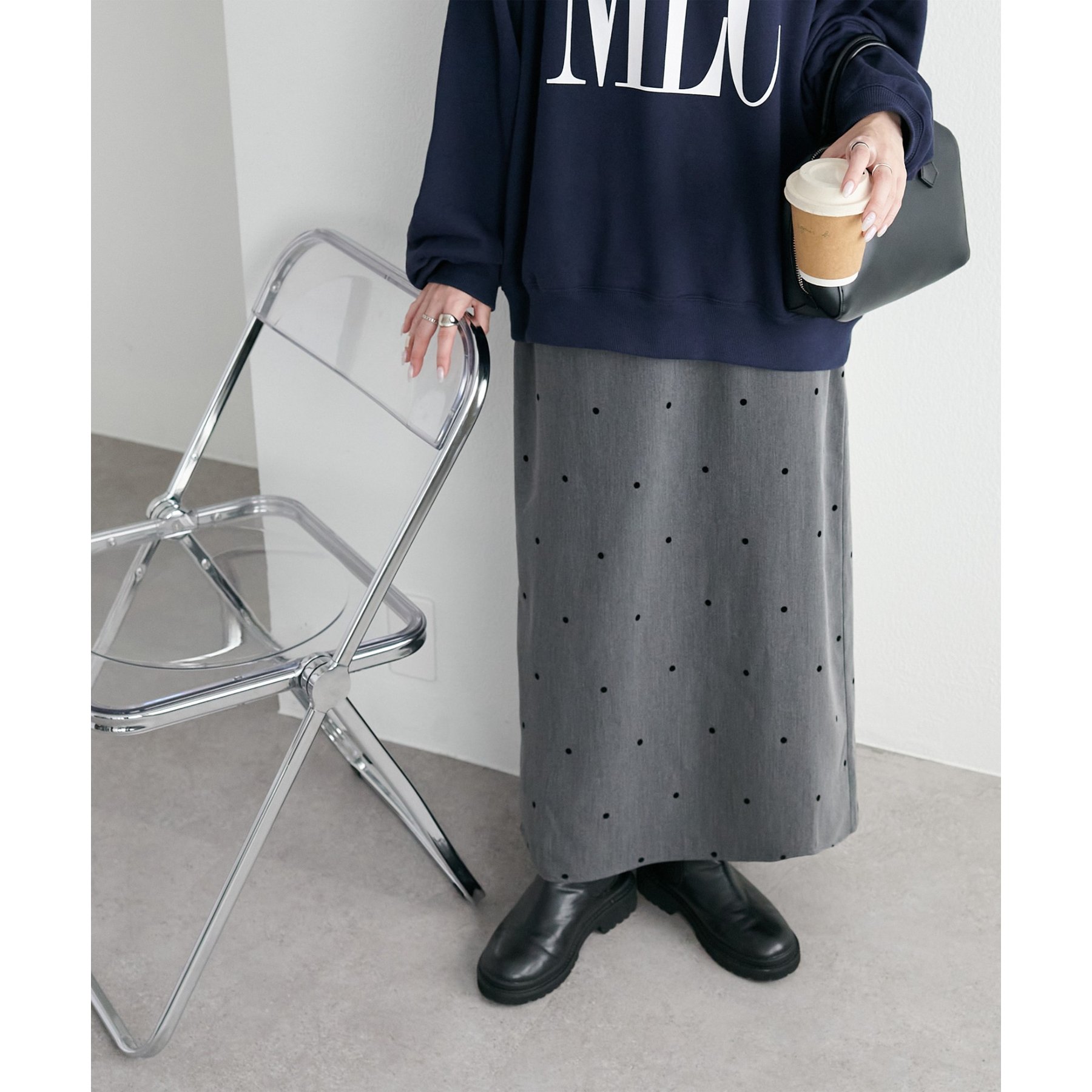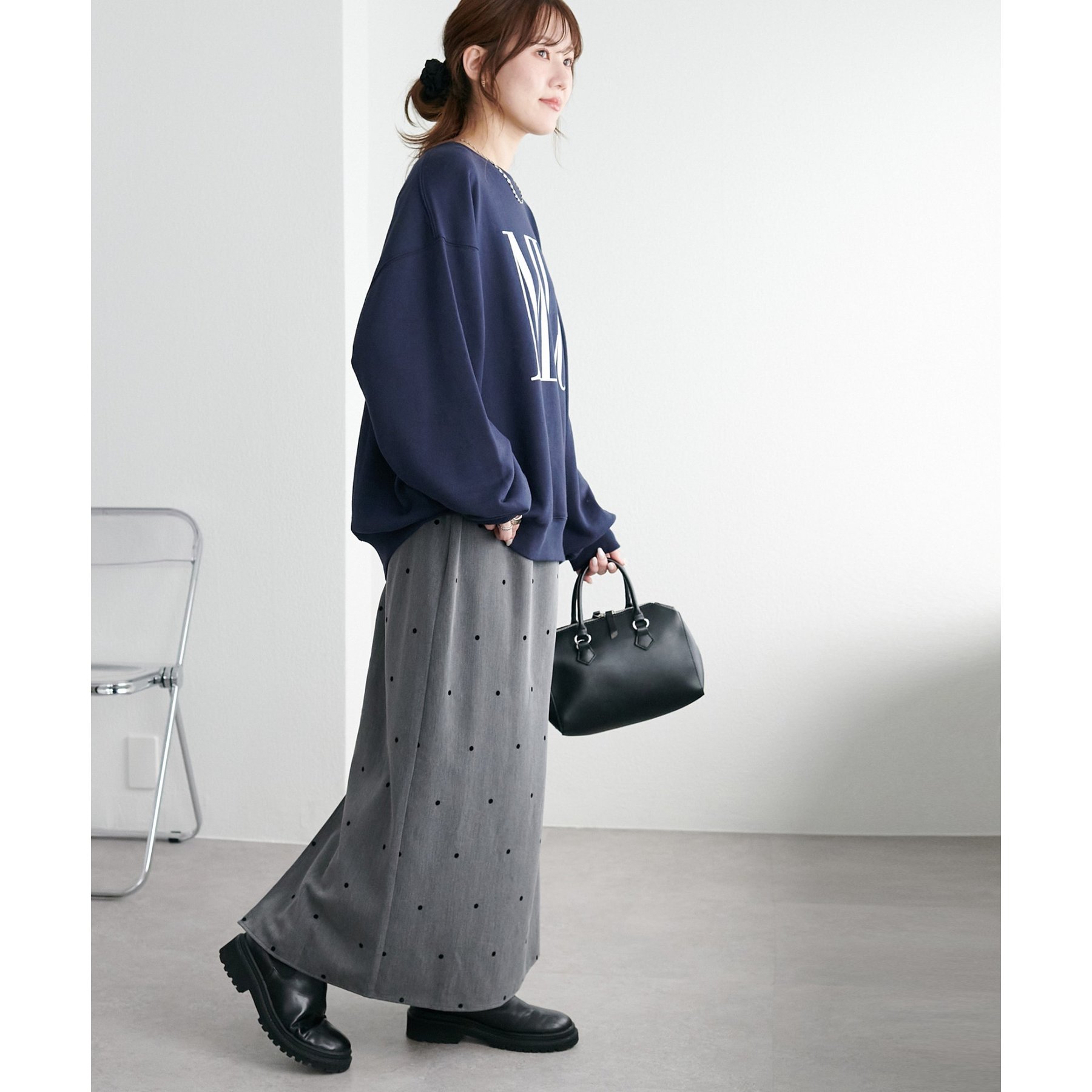 Iラインが綺麗なナロースカートなので、トップスにゆったりとしたニットやスウェットを合わせたリラクシー感のあるコーデや