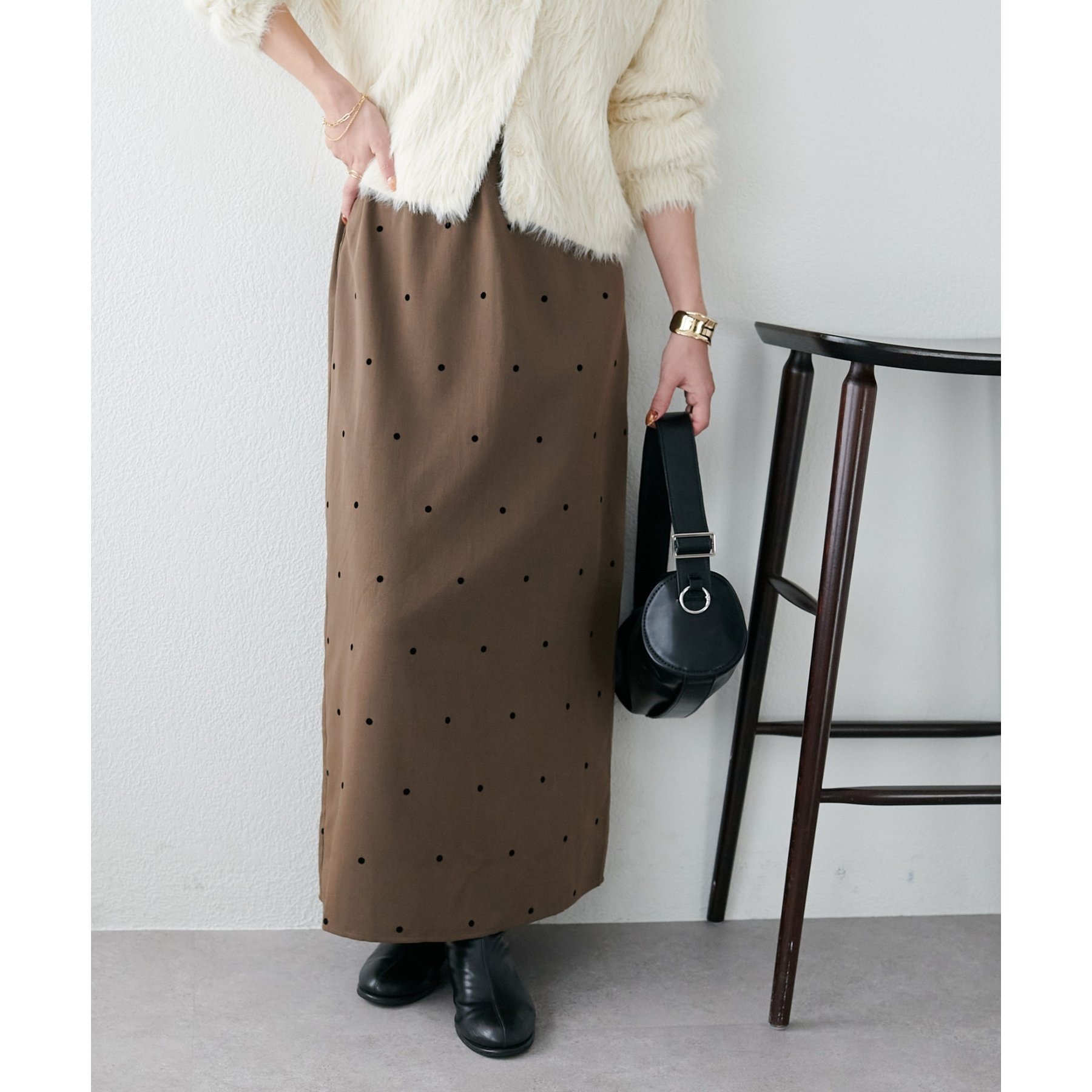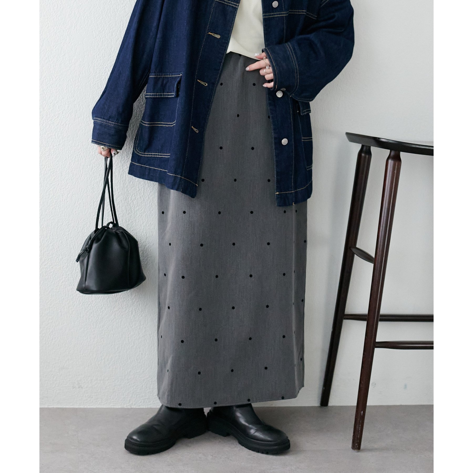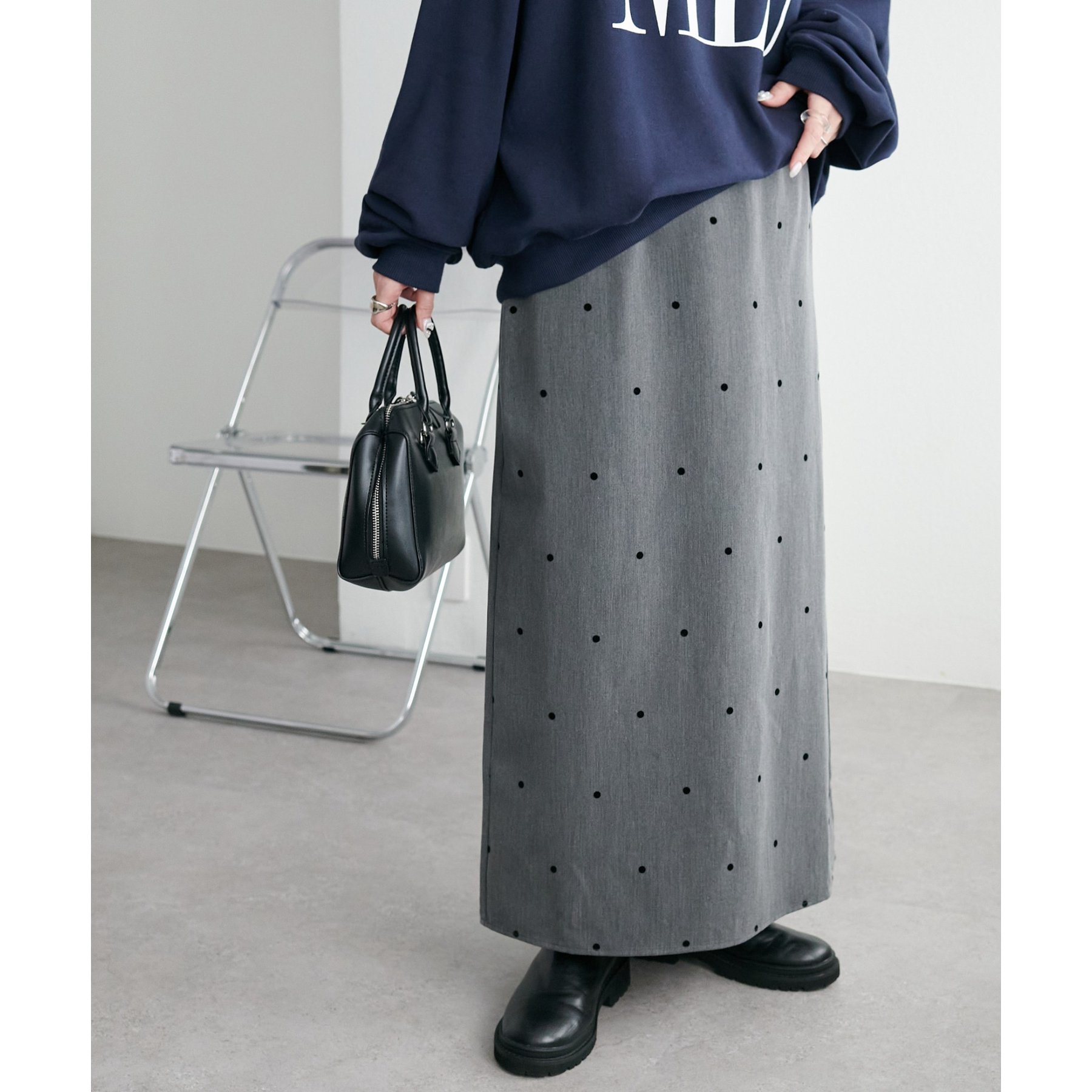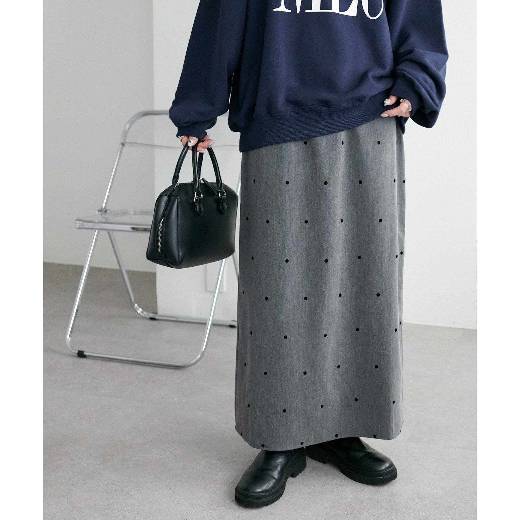 Iラインが綺麗なナロースカートなので、トップスにゆったりとしたニットやスウェットを合わせたリラクシー感のあるコーデや