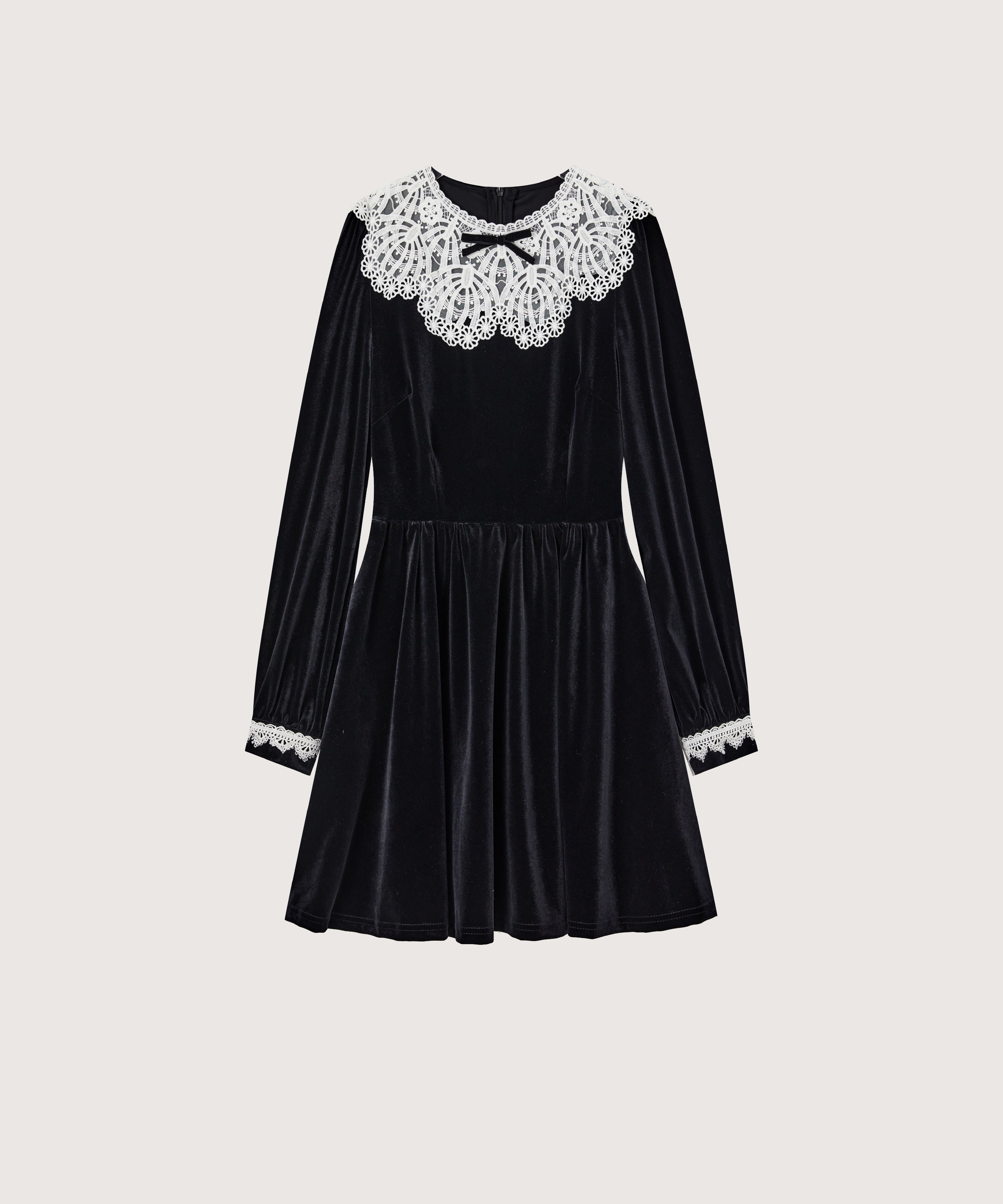 ヴィンテージレースディテールベルベットワンピース
