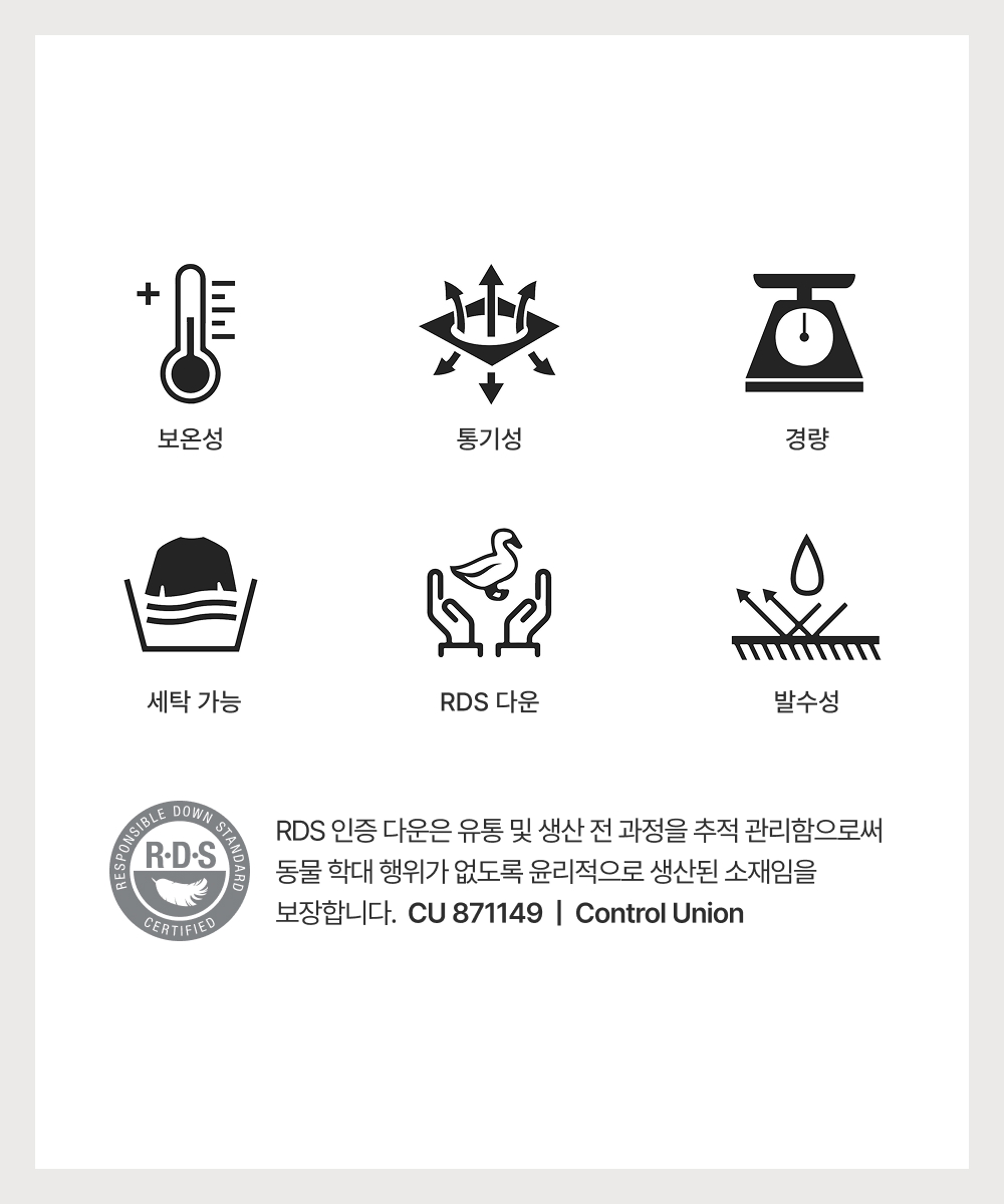 -RDS認証ダックダウン80:20(動物福祉基準を満たしたダックダウン)