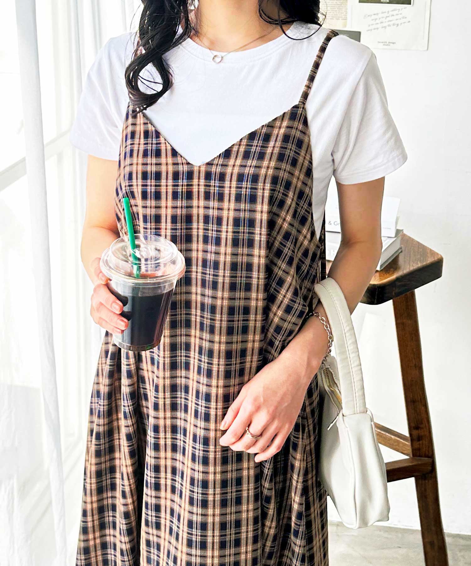 1枚でコーデの主役になる、チェック柄キャミワンピース。
