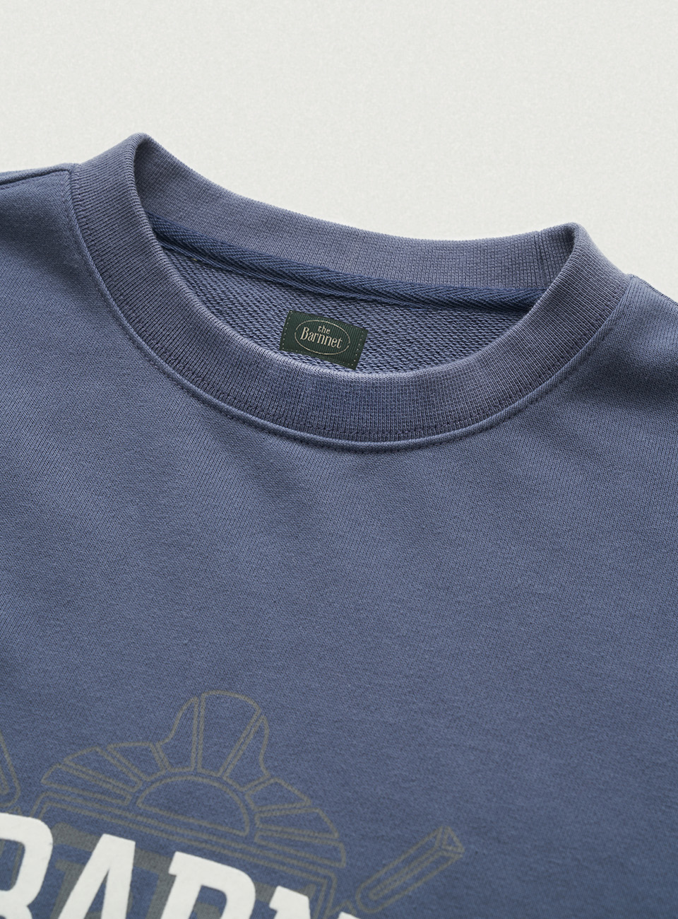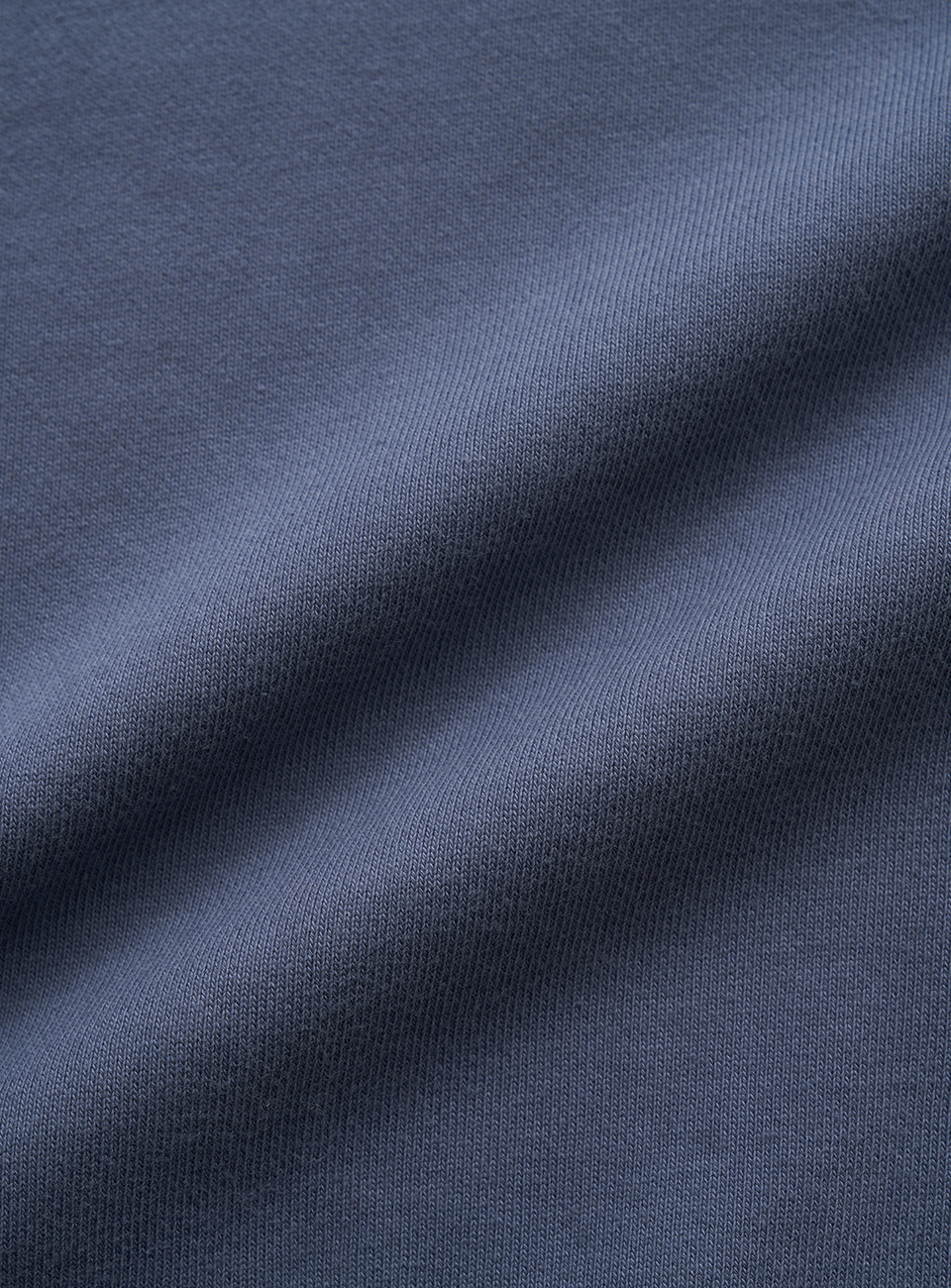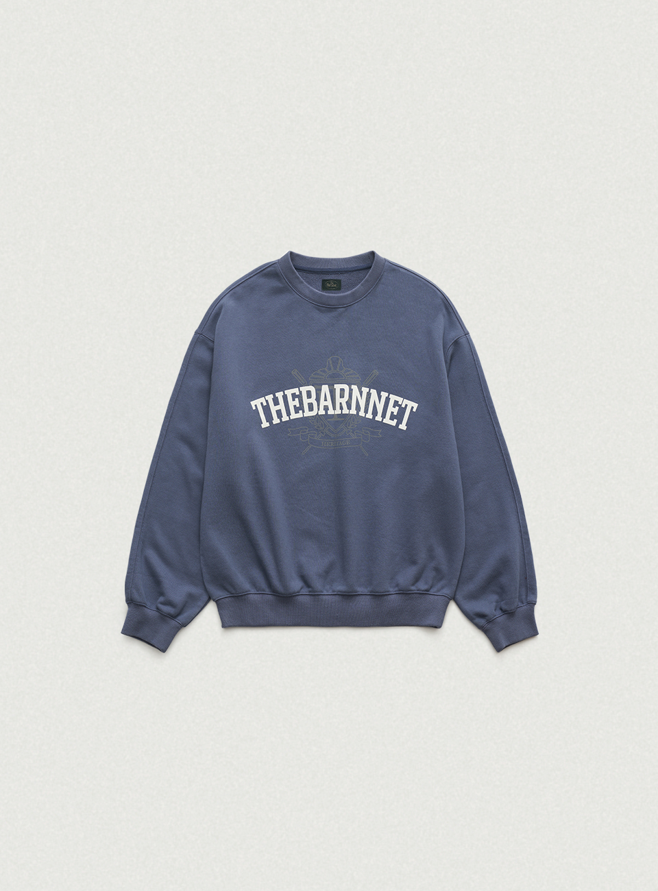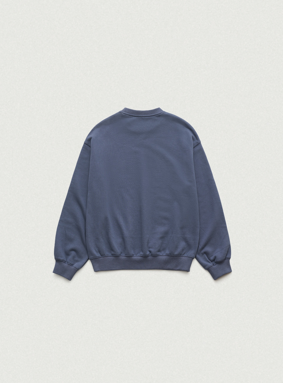 トーンダウンブルーカラーと柔らかくしっかりしたコットン生地 ラウンドネックとエッジリップ組織仕様のスウェットシャツタイプ ファブリックカラーに備えた配色メインロゴプリント コットン100% Blue Cotton ラウンドネック Drop shoulder Ribbed trim Contrast Logo Printing