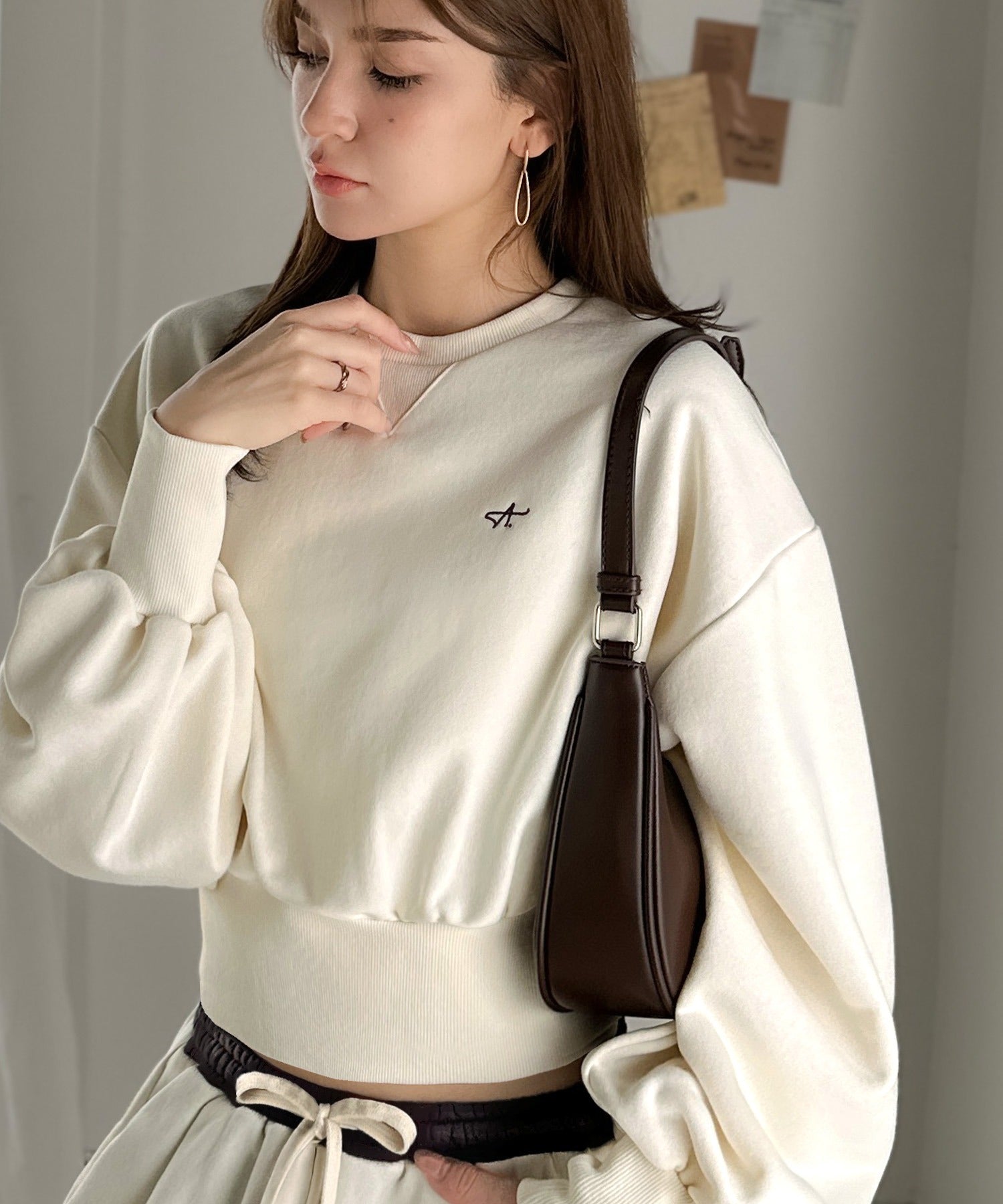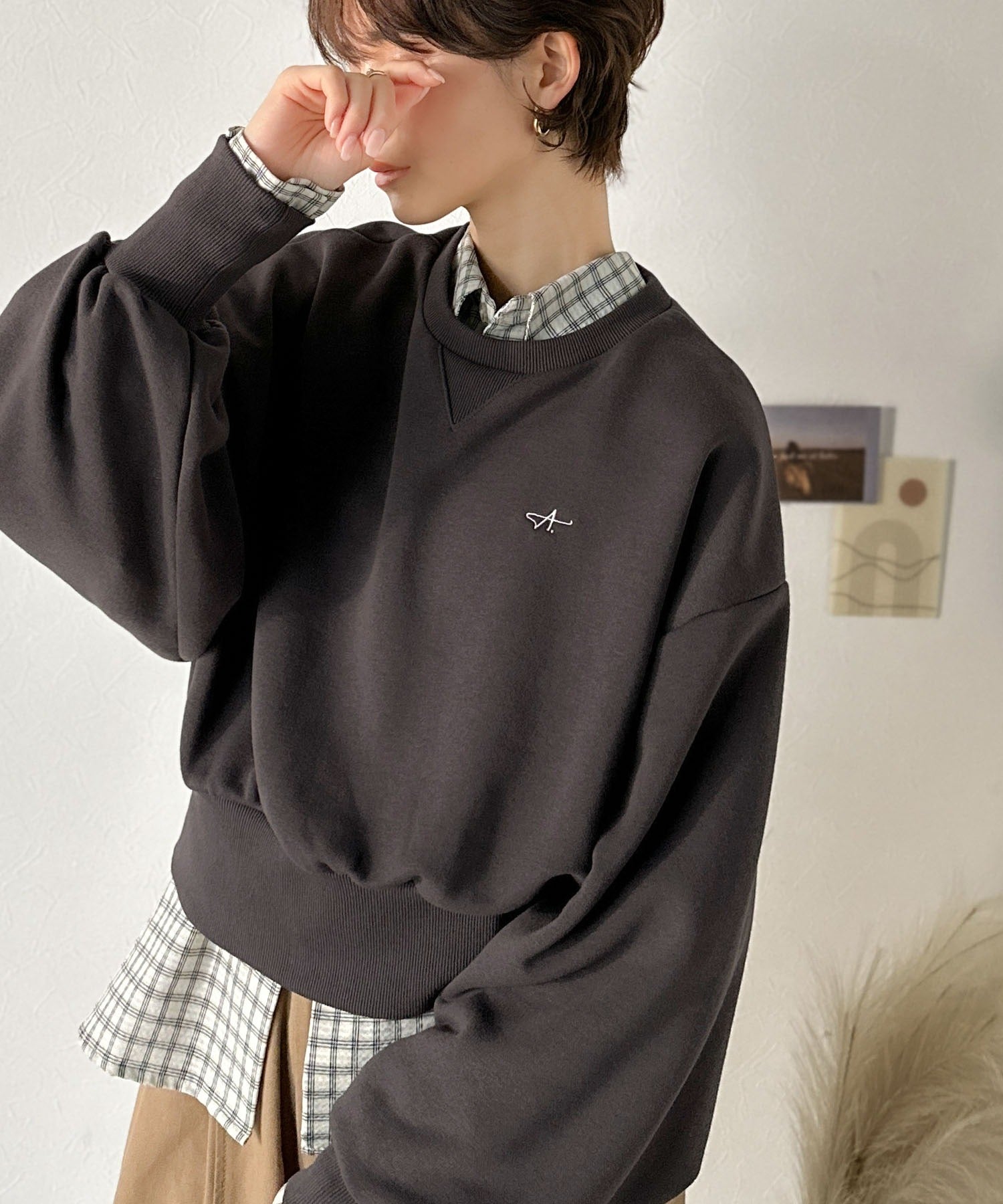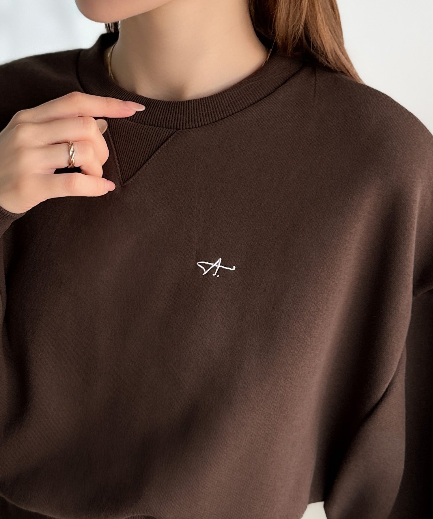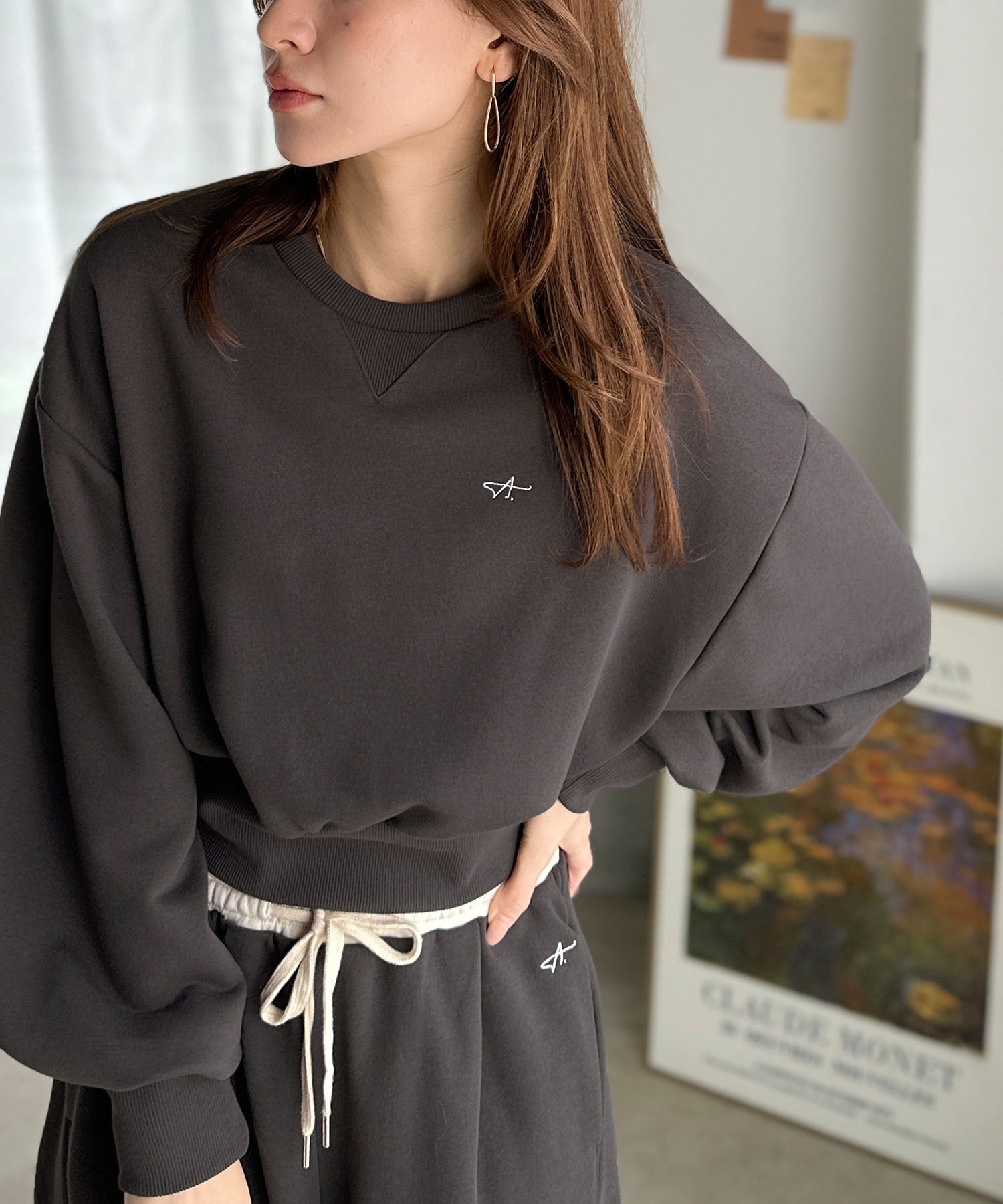 《AYA×クラシカルエルフコラボ》カジュアルなのにちゃんと女っぽ♪胸元刺繍が映える。クロップド丈裏毛スウェット(セットアップ可) ce1010520