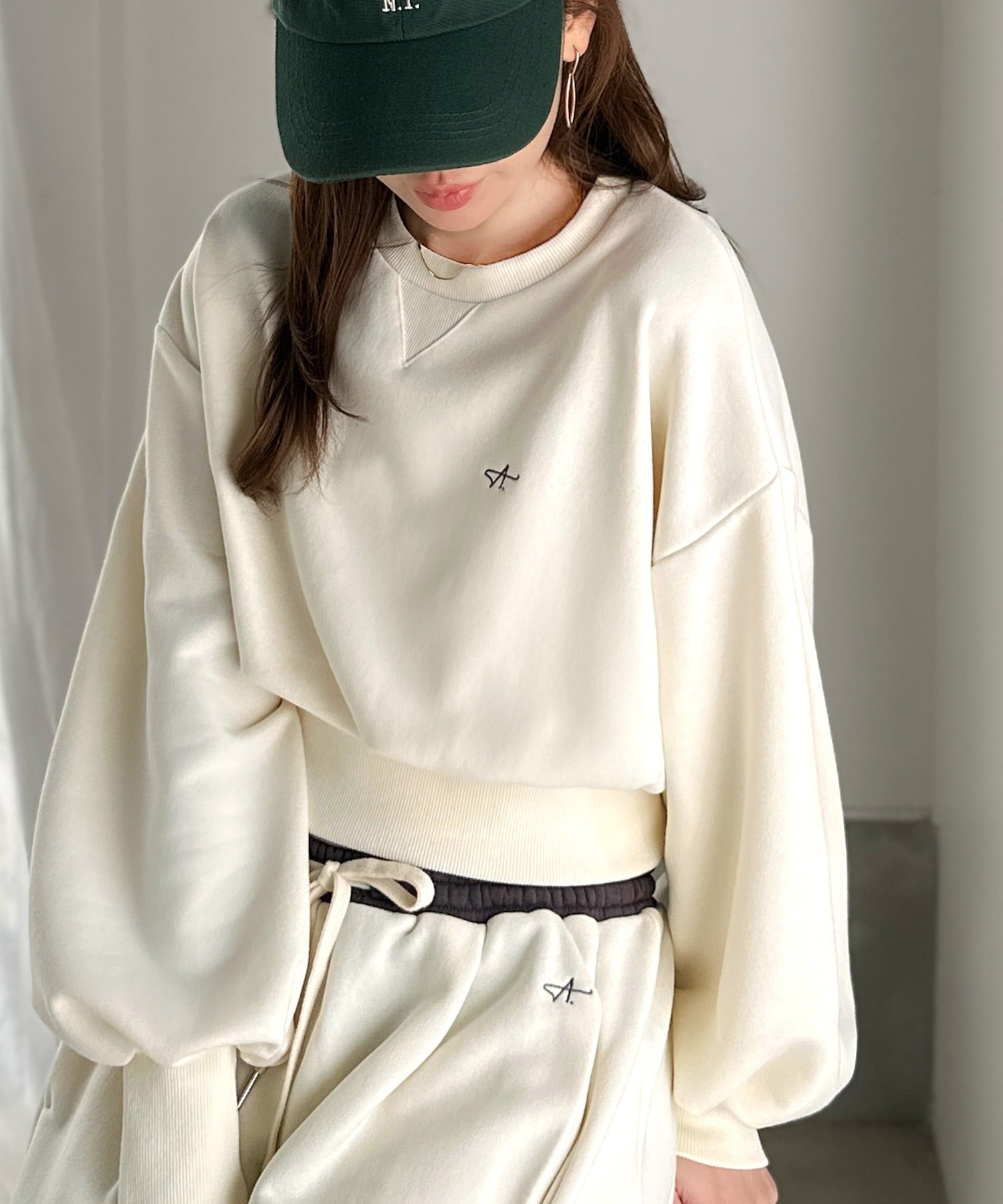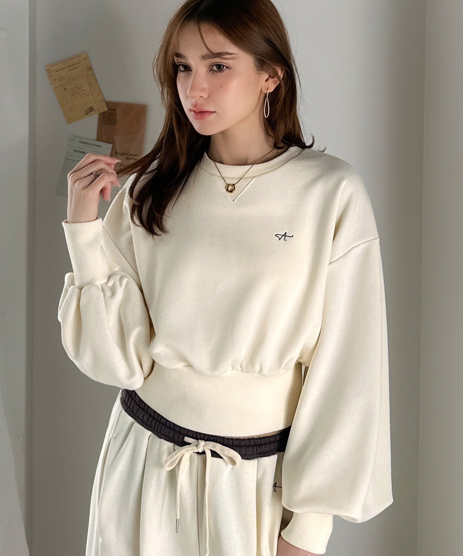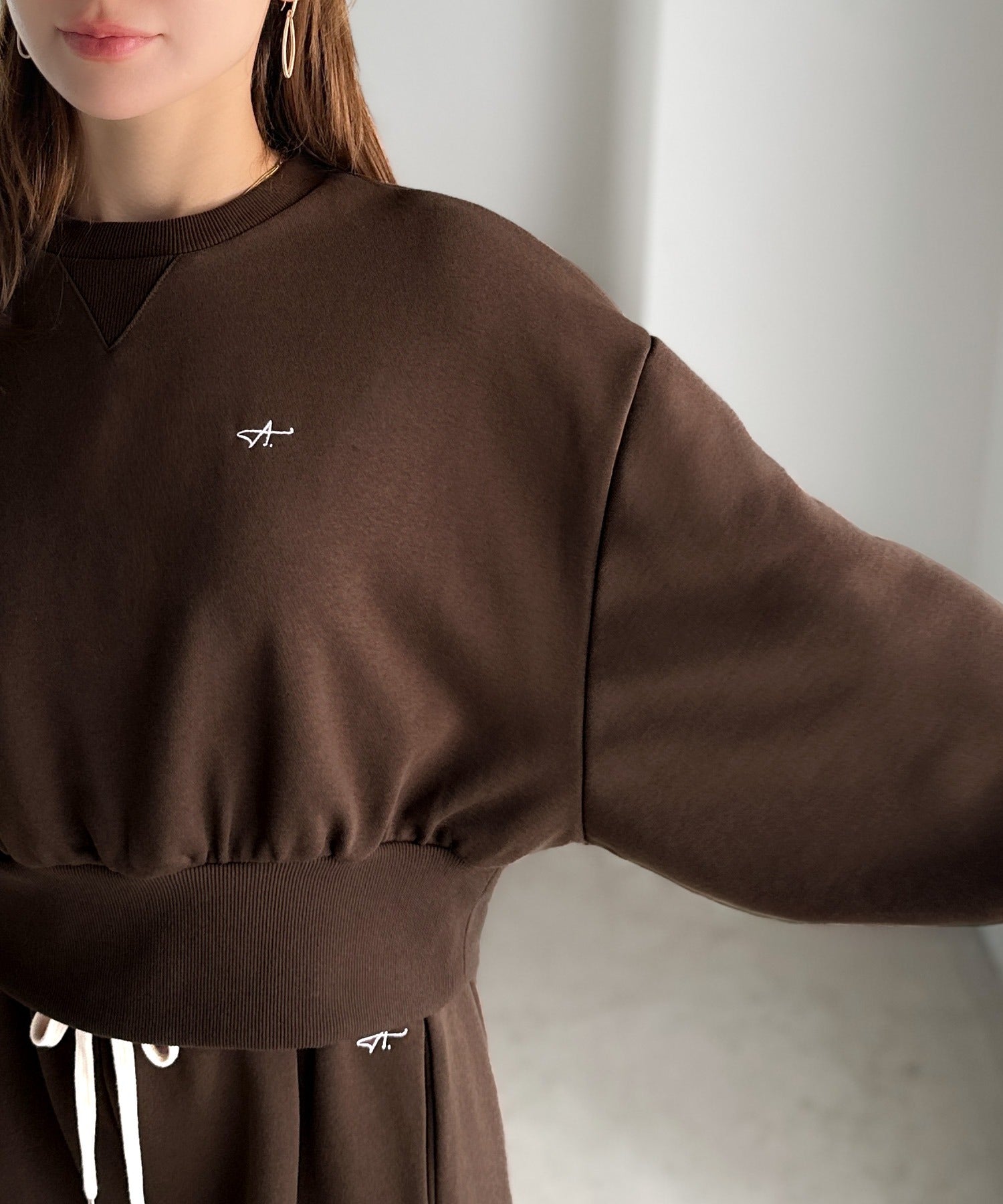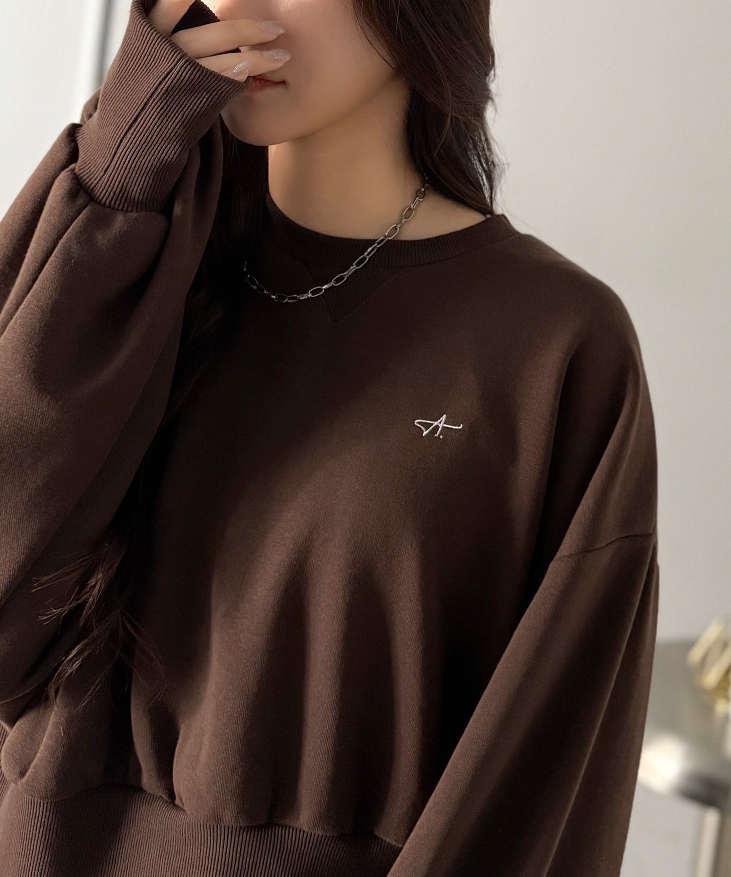 《AYA×クラシカルエルフコラボ》カジュアルなのにちゃんと女っぽ♪胸元刺繍が映える。クロップド丈裏毛スウェット(セットアップ可) ce1010520