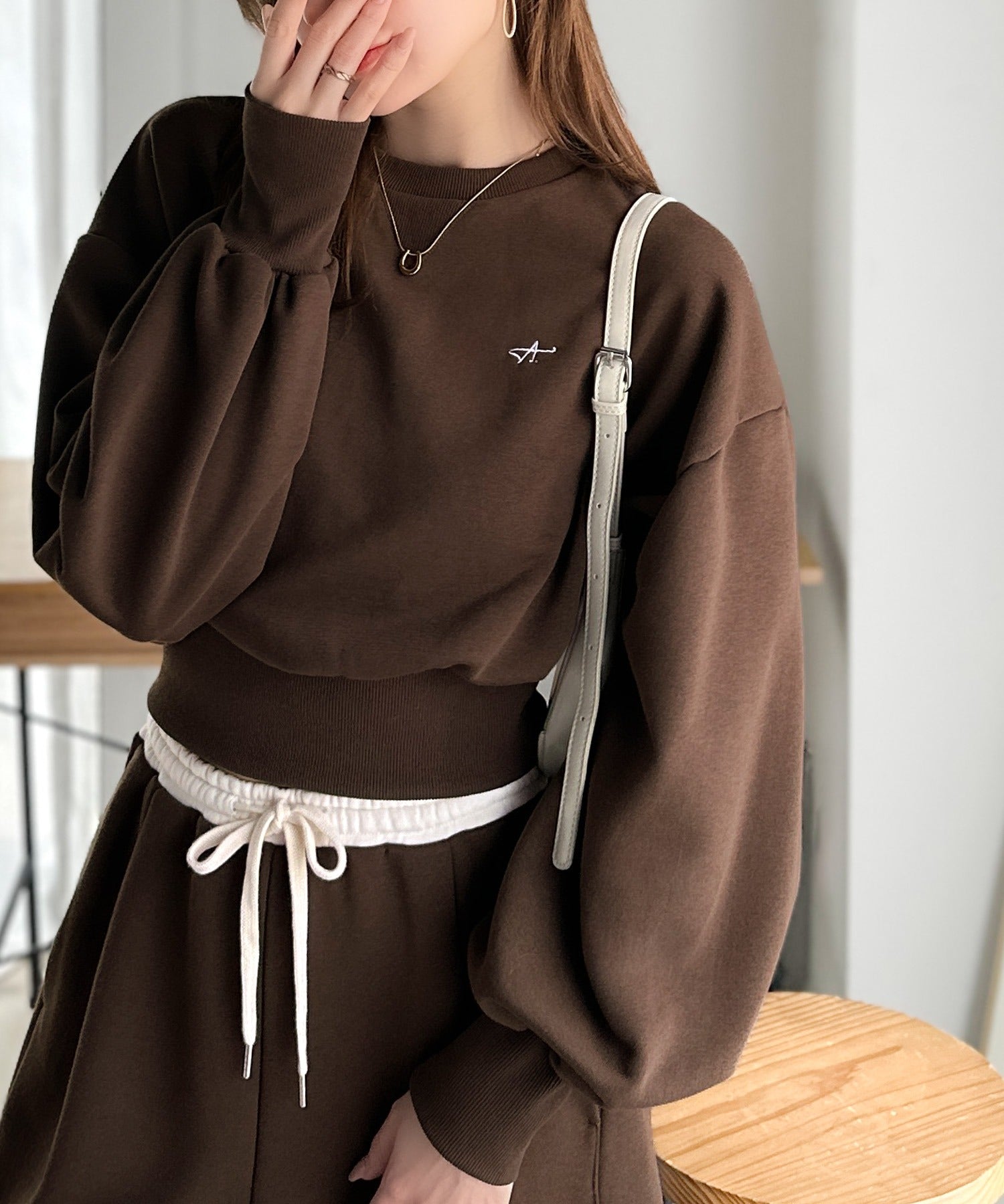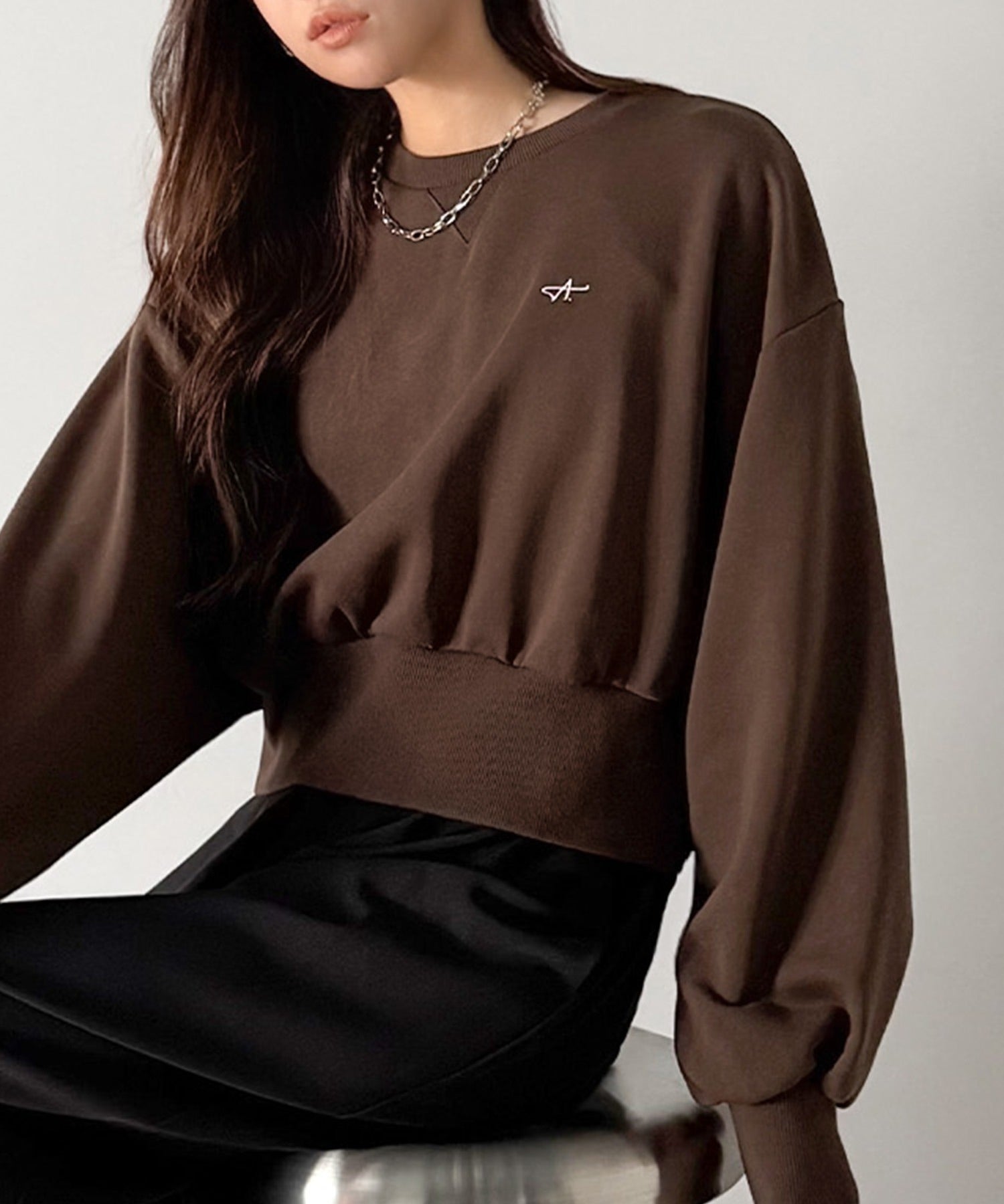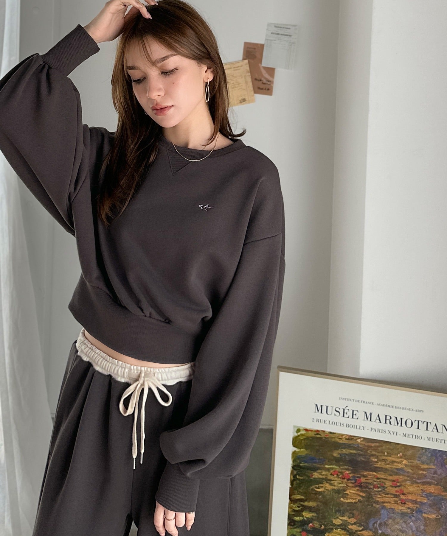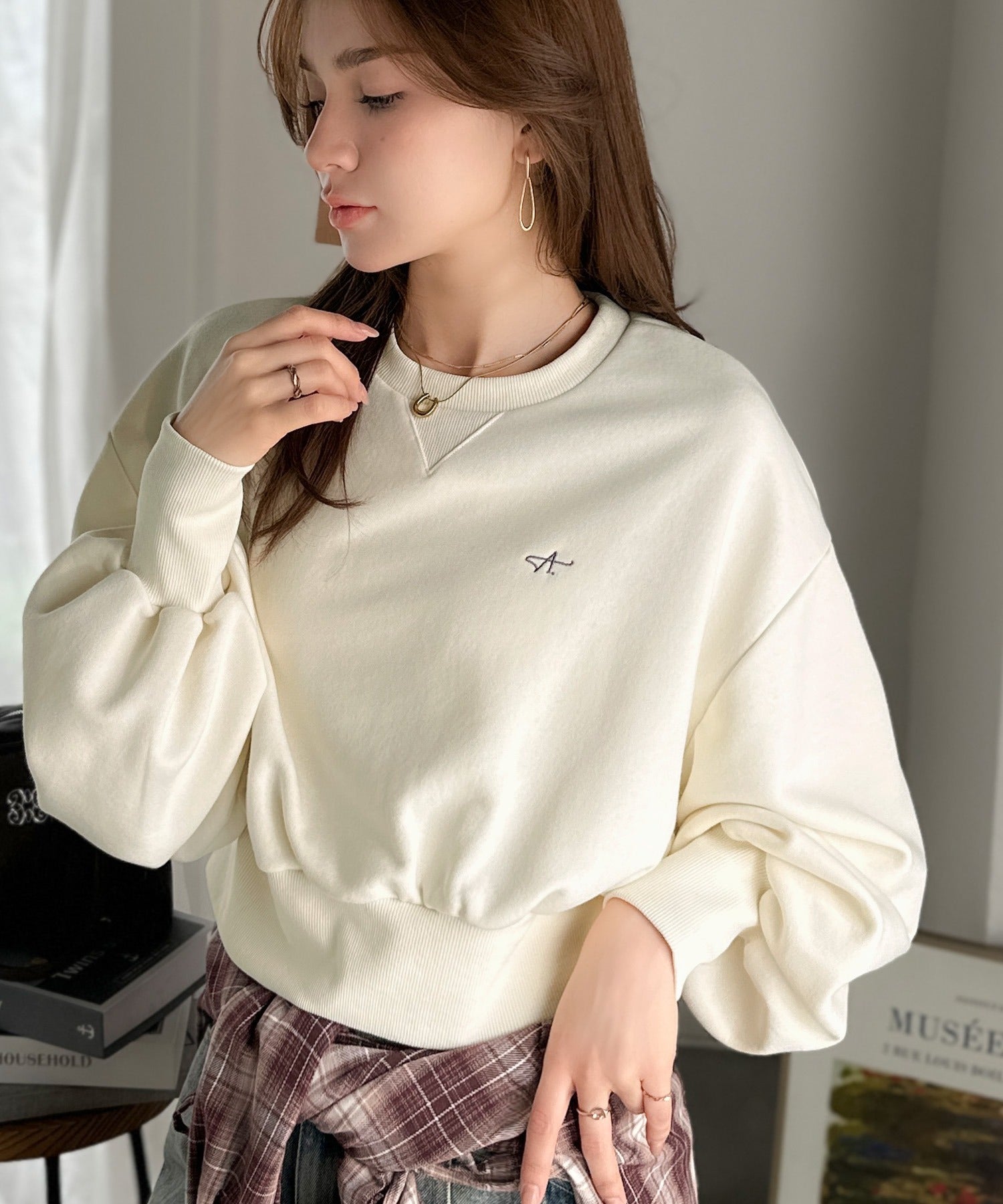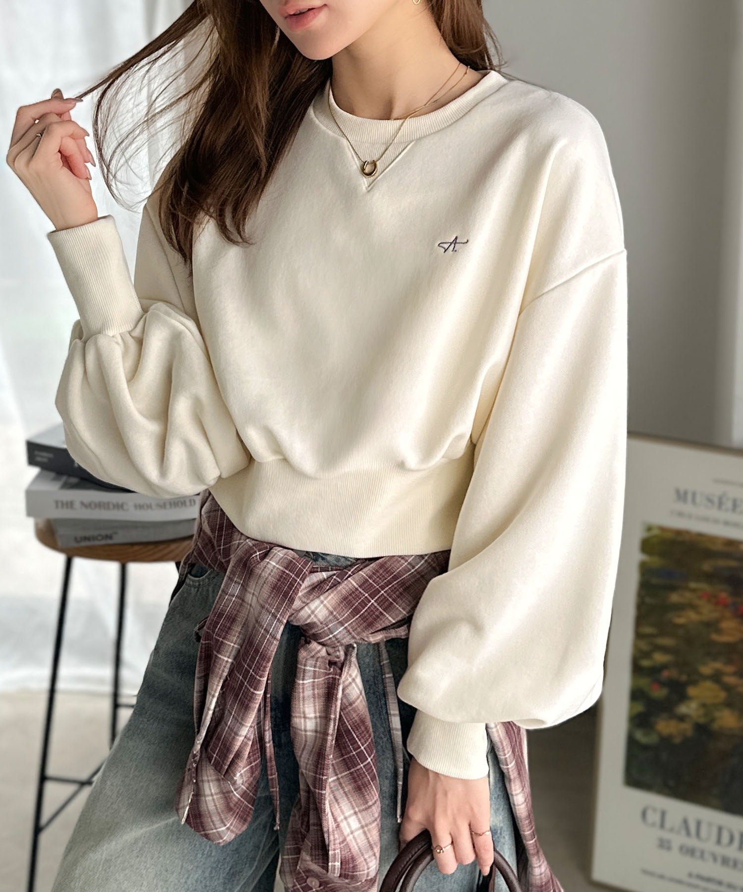 《AYA×クラシカルエルフコラボ》カジュアルなのにちゃんと女っぽ♪胸元刺繍が映える。クロップド丈裏毛スウェット(セットアップ可) ce1010520