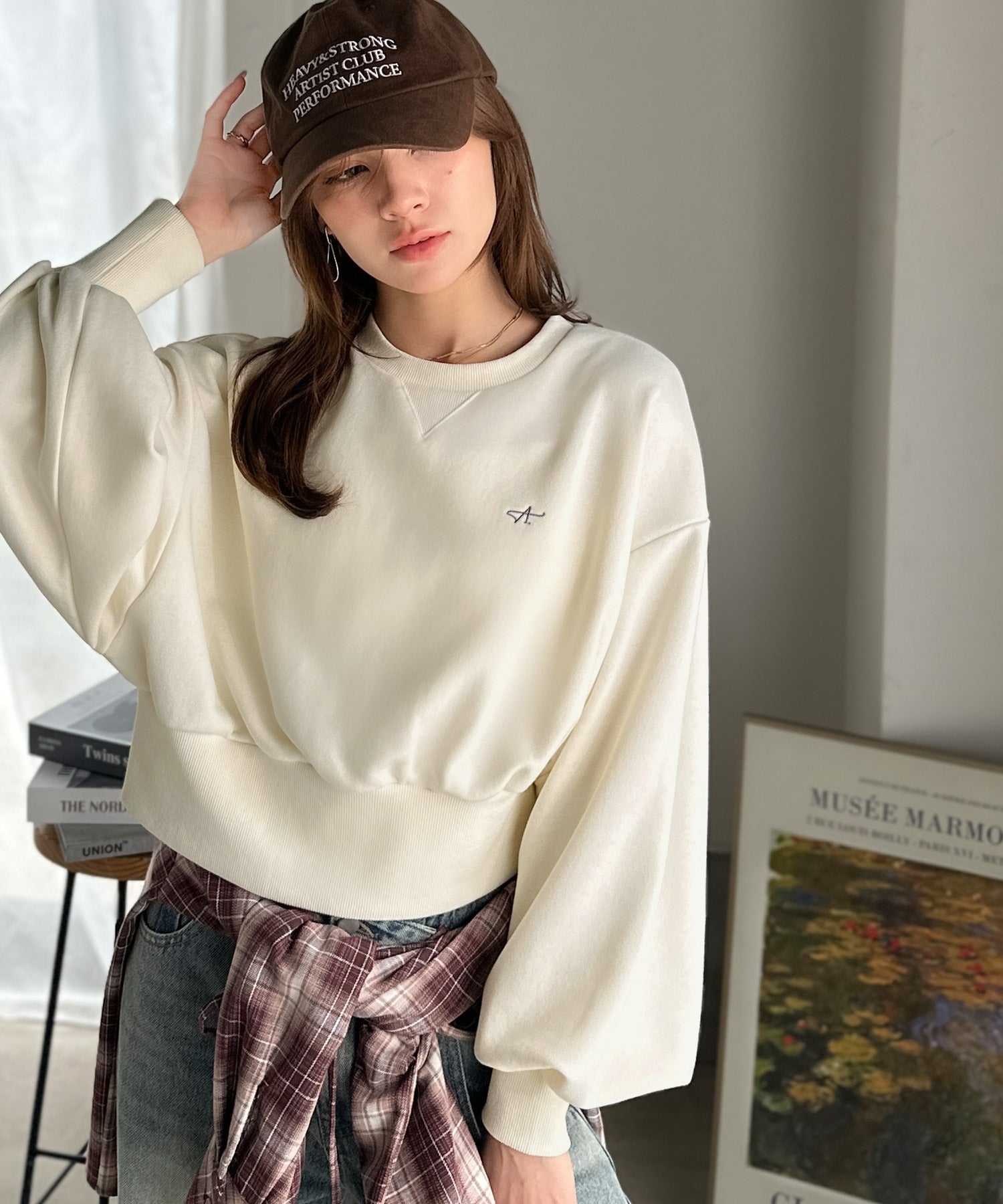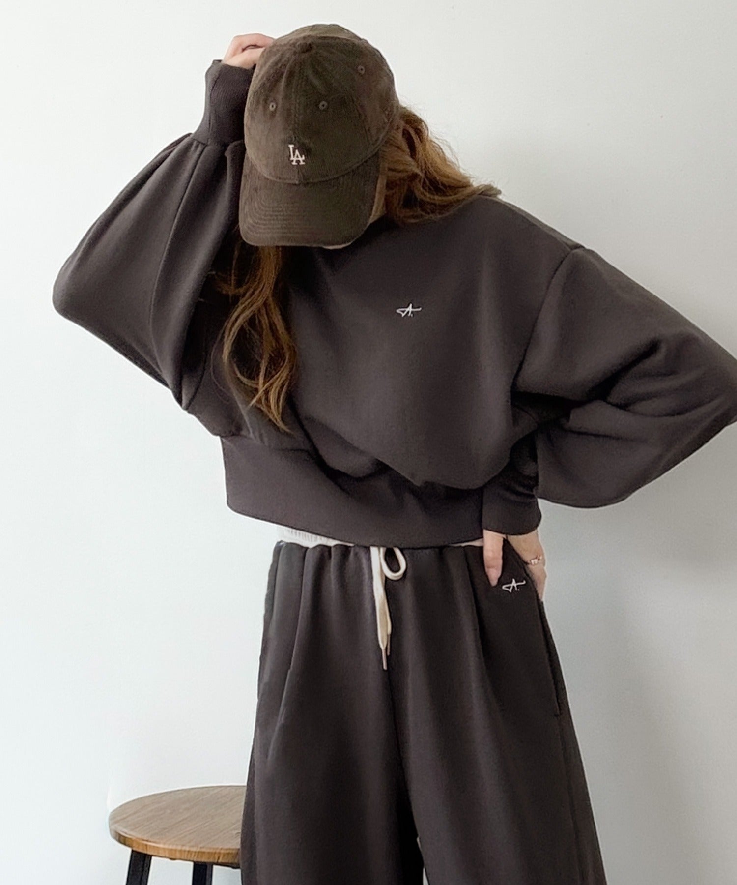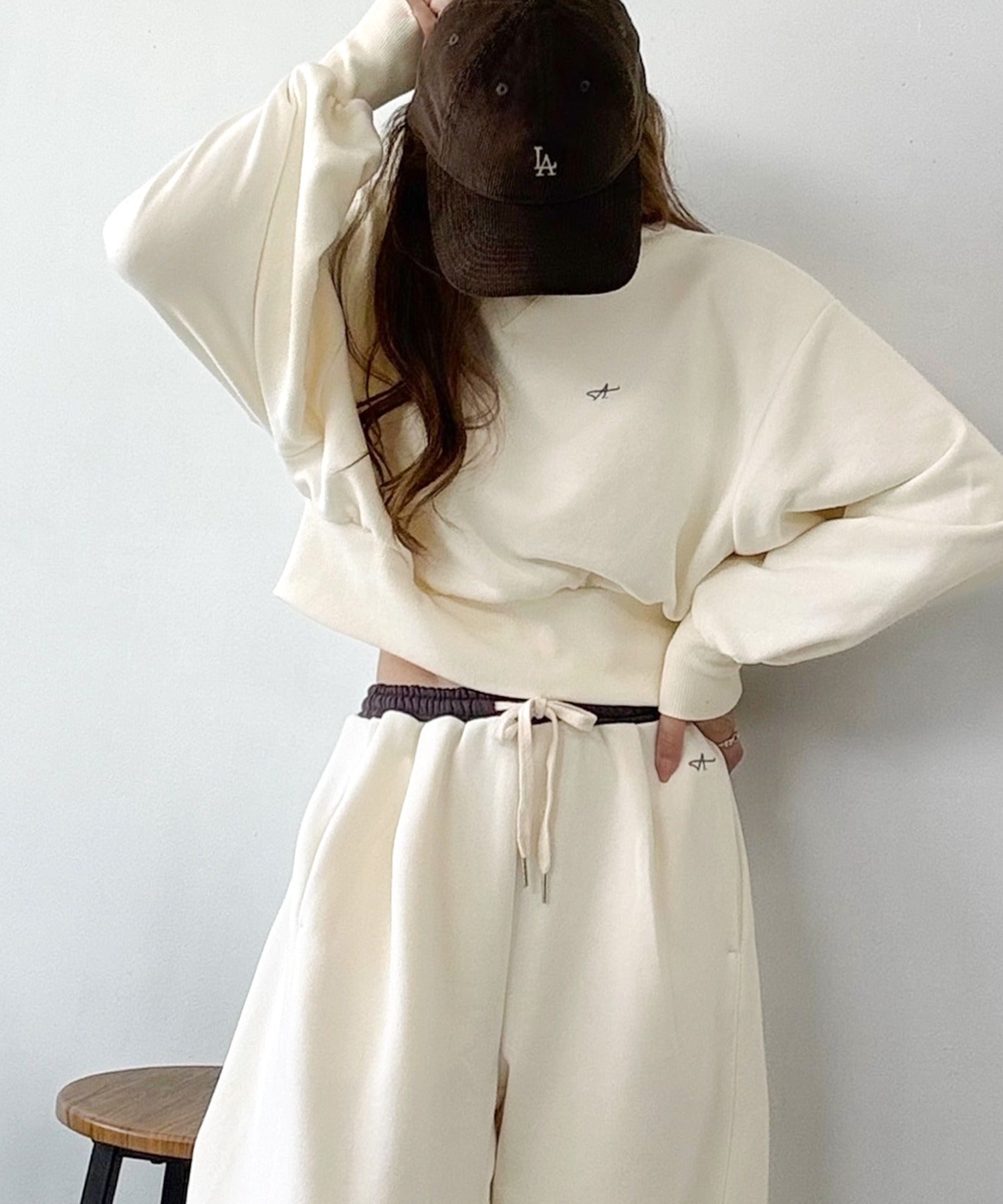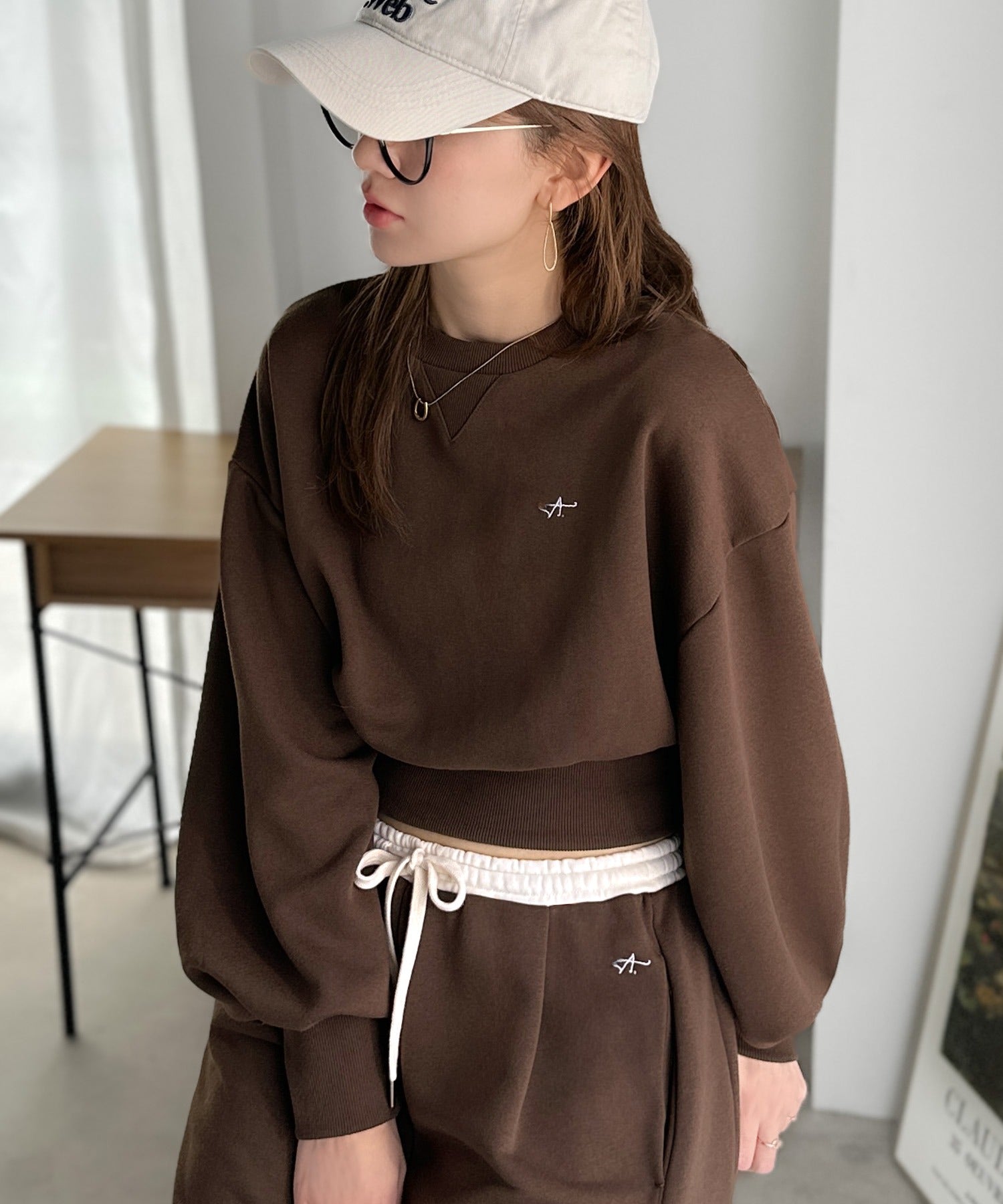 《AYA×クラシカルエルフコラボ》カジュアルなのにちゃんと女っぽ♪胸元刺繍が映える。クロップド丈裏毛スウェット(セットアップ可) ce1010520