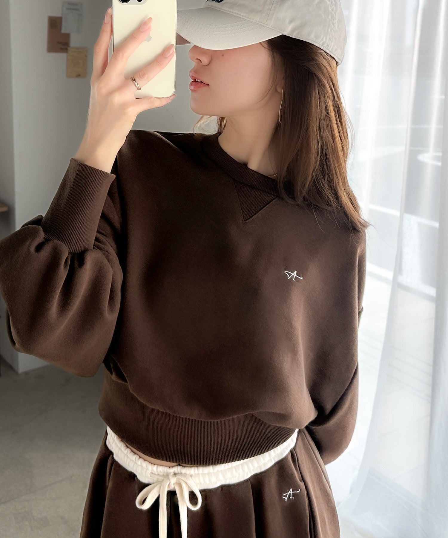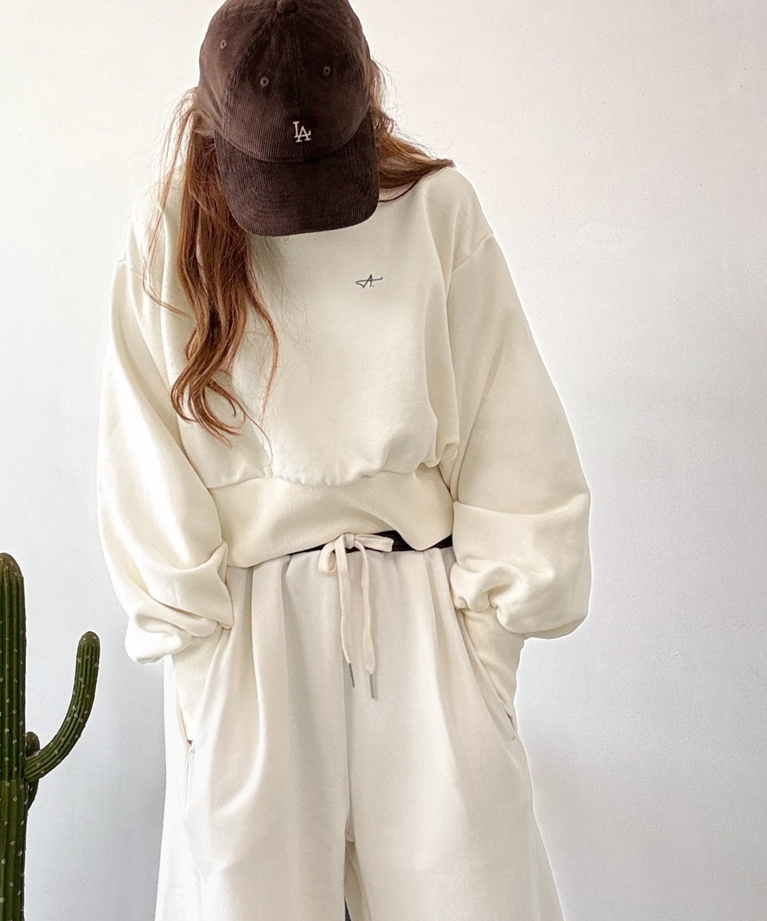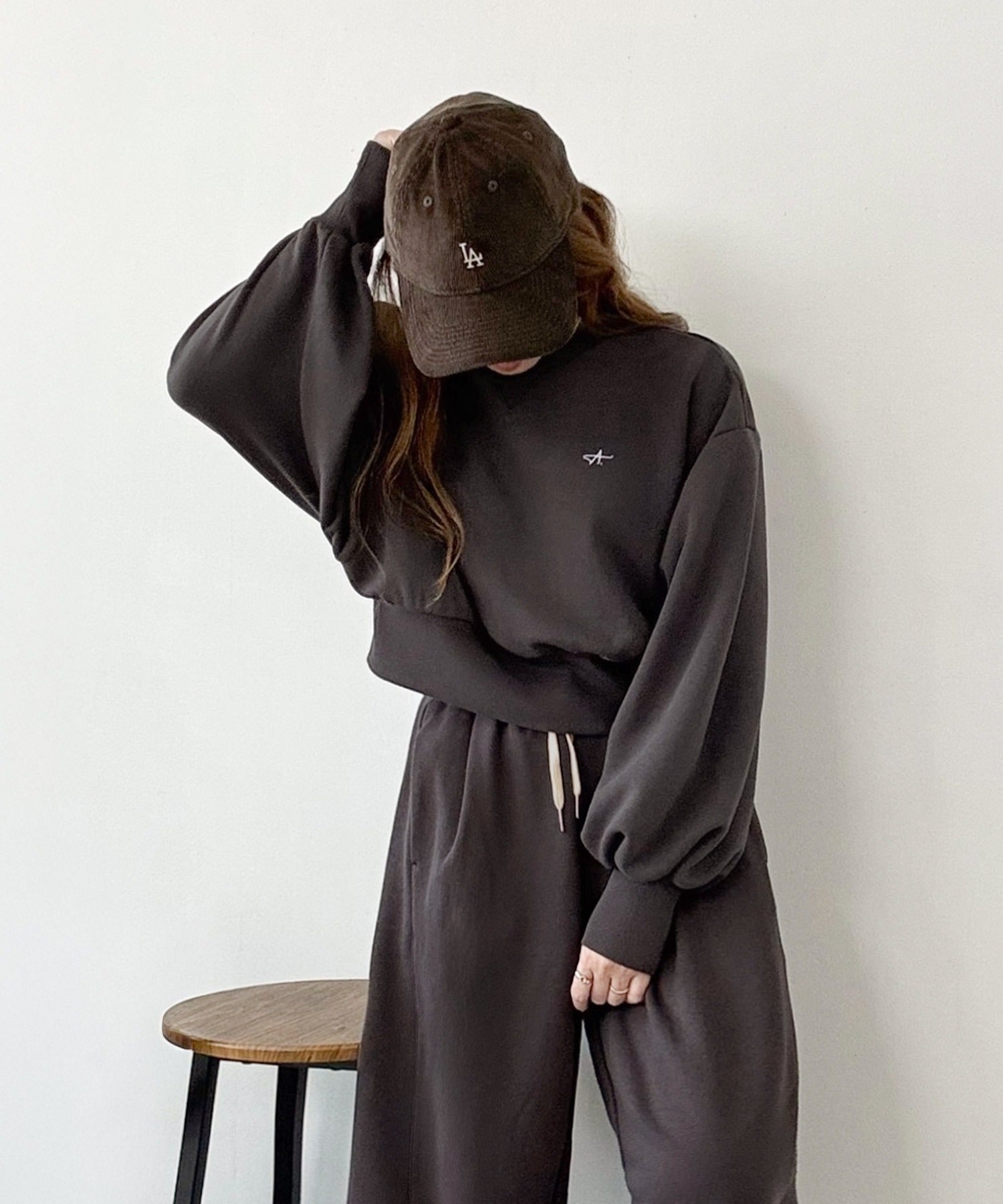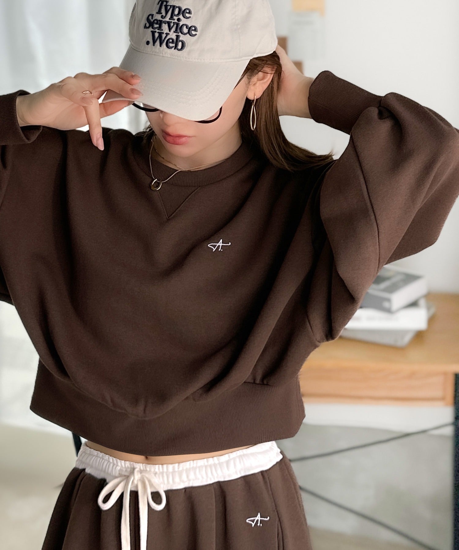 《AYA×クラシカルエルフコラボ》カジュアルなのにちゃんと女っぽ♪胸元刺繍が映える。クロップド丈裏毛スウェット(セットアップ可) ce1010520