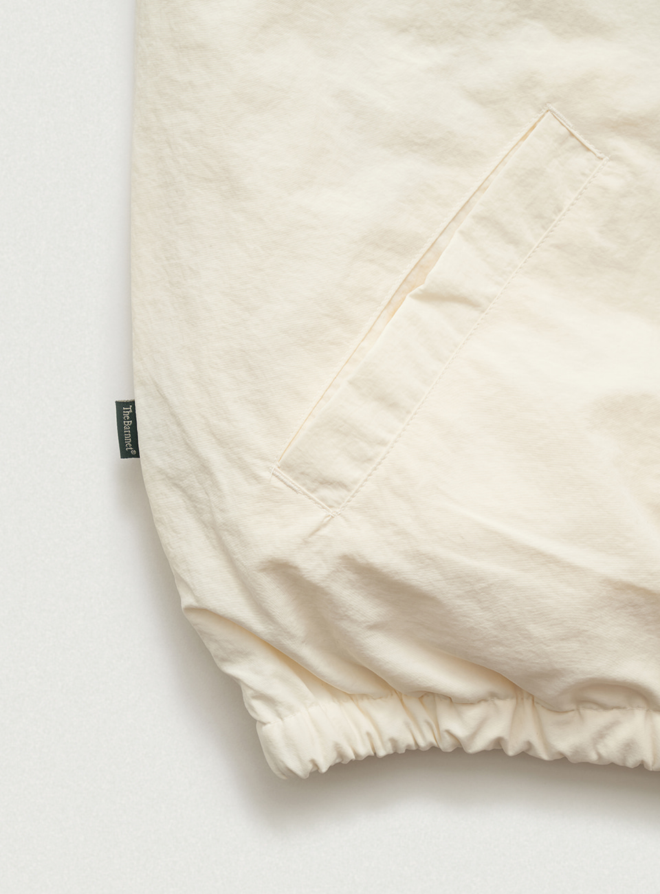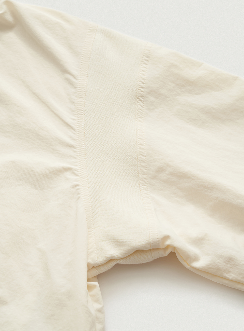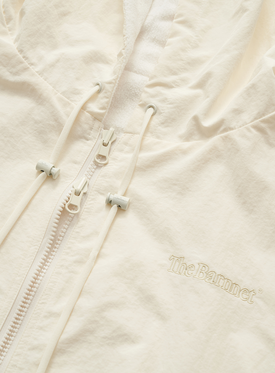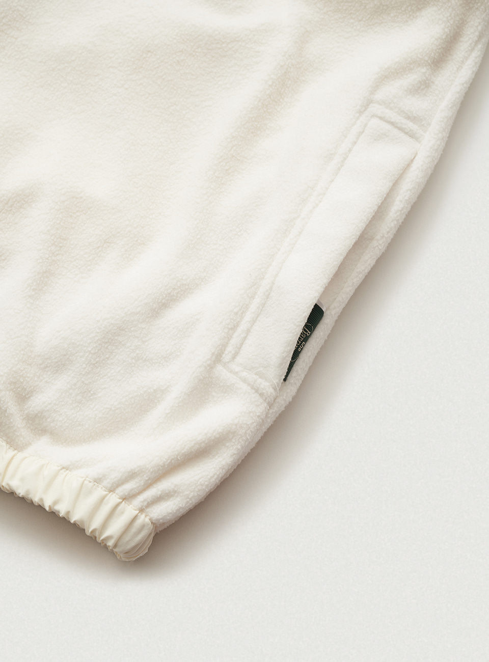 アイボリーカラーのナイロンファブリックと、アイボリーカラーのフリースファブリックを使用。
