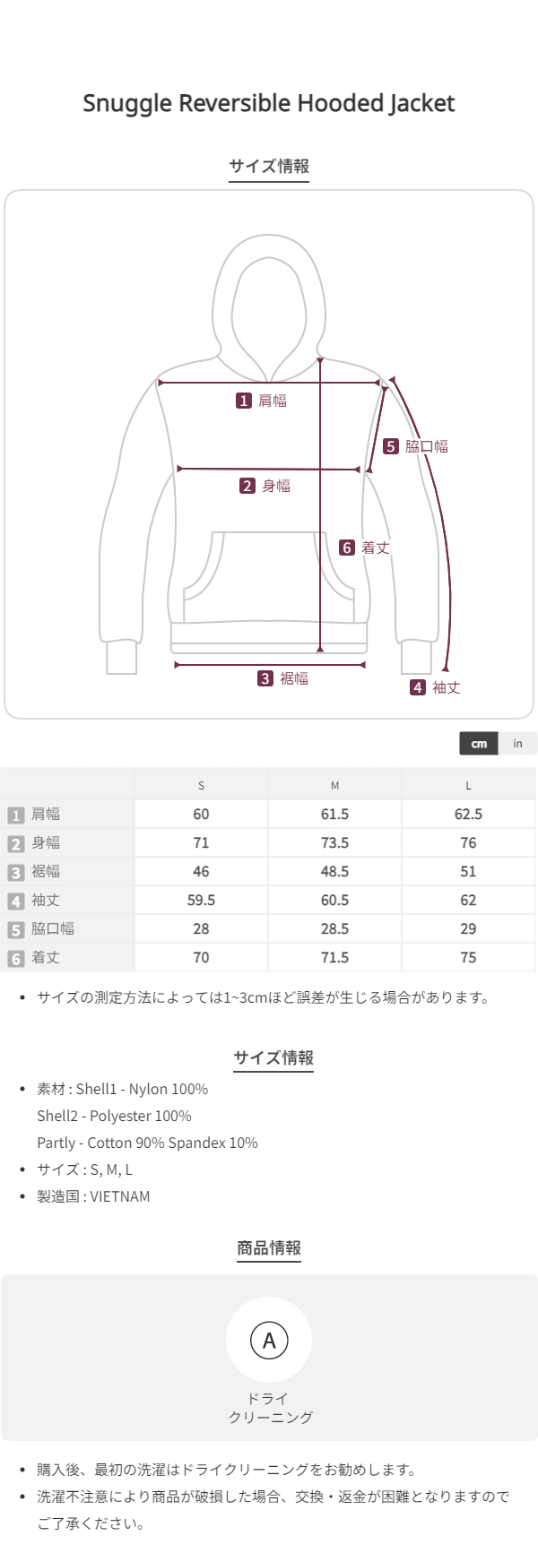 調節可能なフードストリング、伸縮性のある袖口と裾、ポケットなど、実用的なディテールが充実しています。