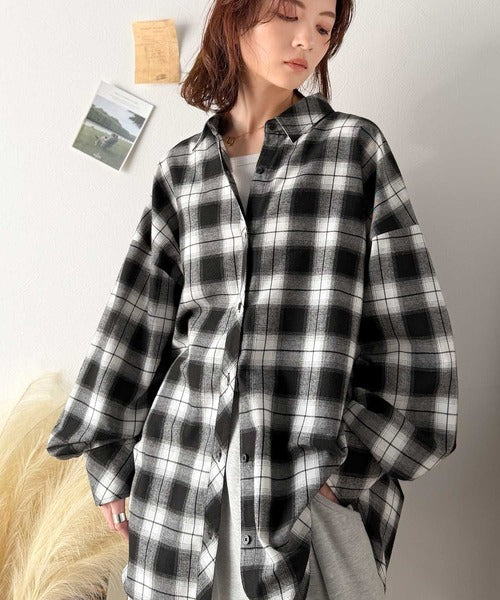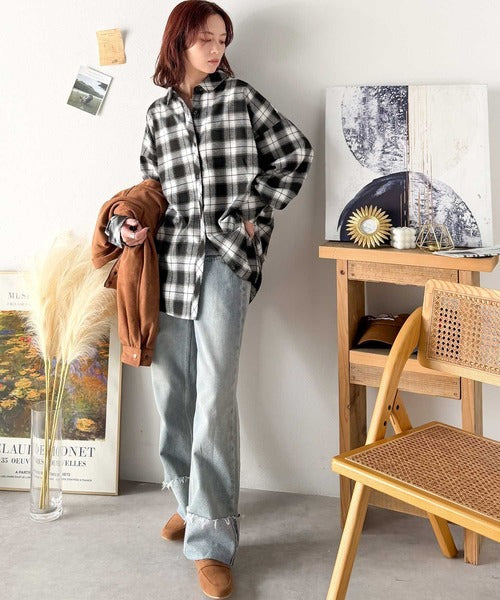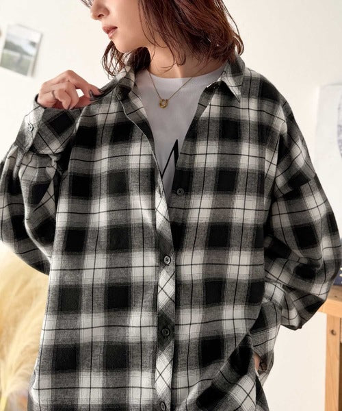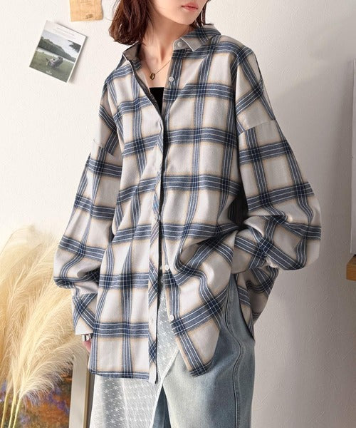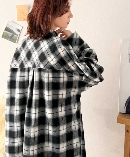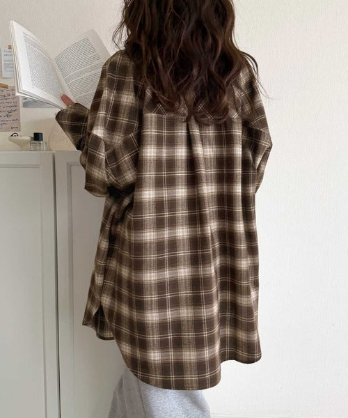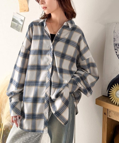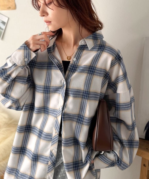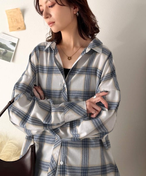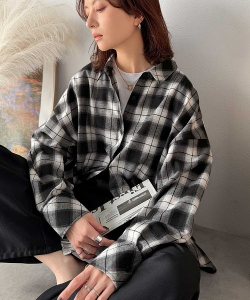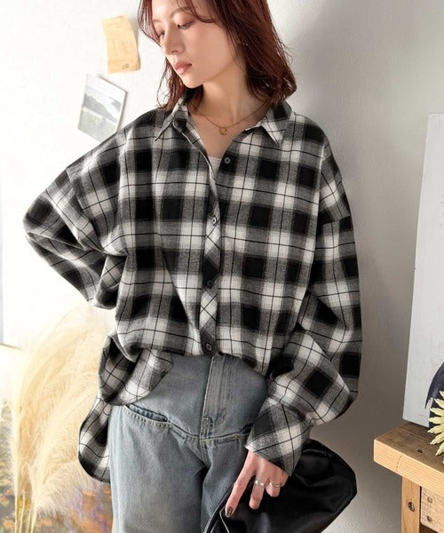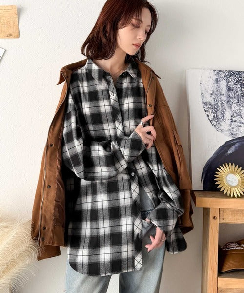 トレンド感たっぷり、ゆったりとしたシルエットで大人の抜け感を演出。微起毛オーバーサイズチェックシャツ ce1010567