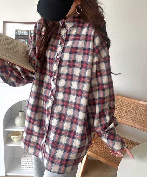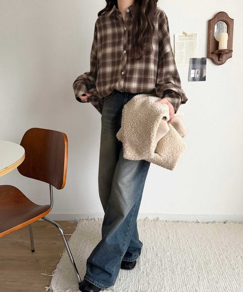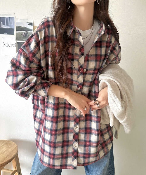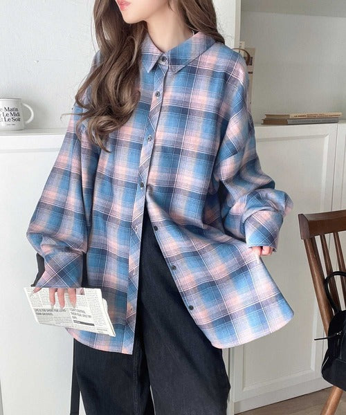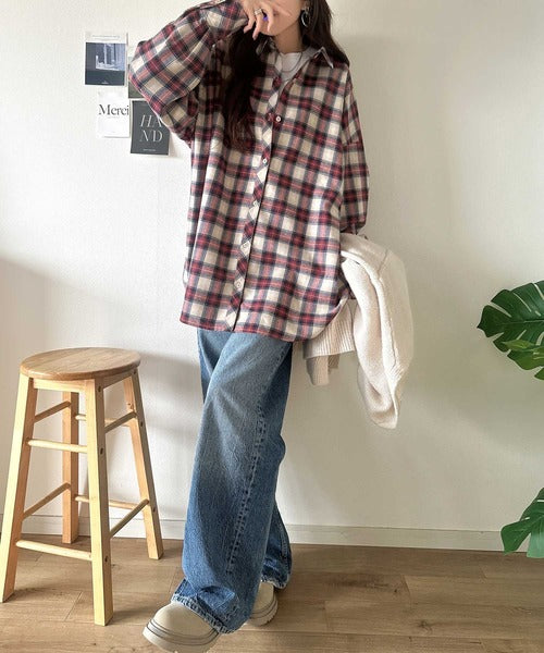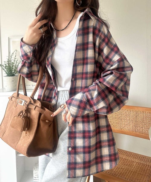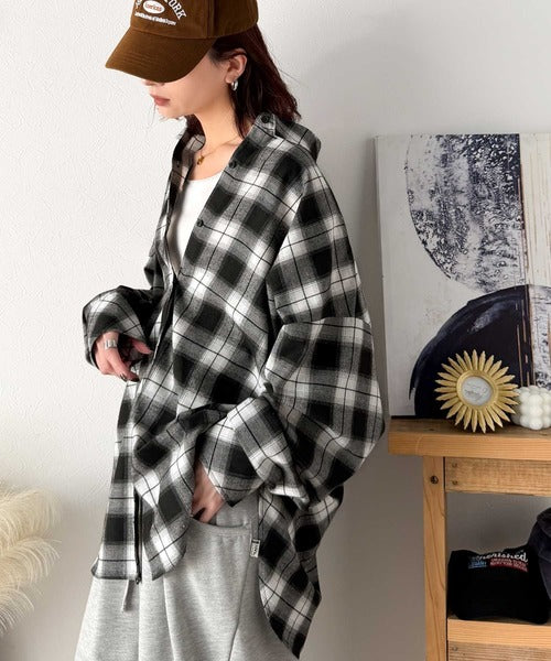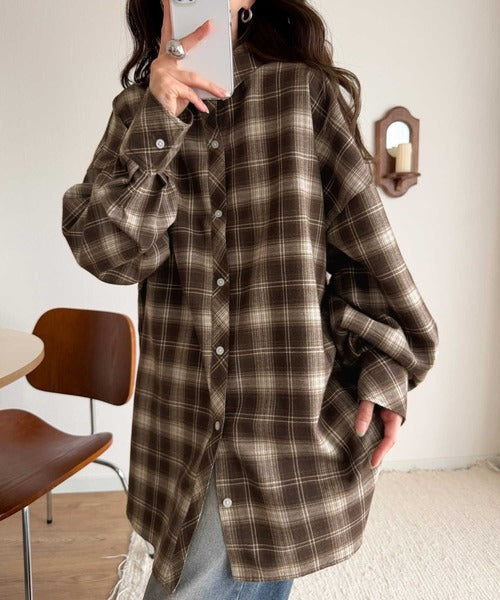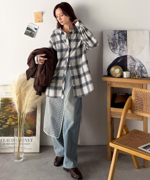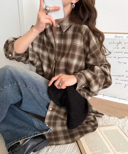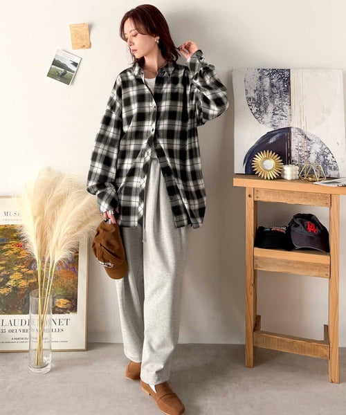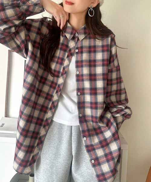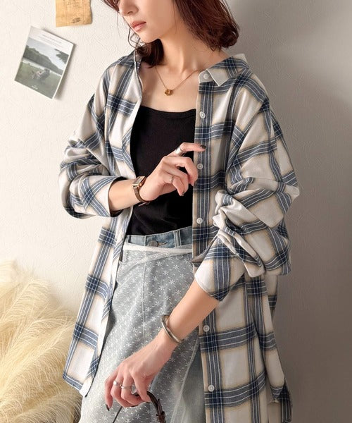 トレンド感たっぷり、ゆったりとしたシルエットで大人の抜け感を演出。微起毛オーバーサイズチェックシャツ ce1010567