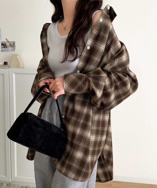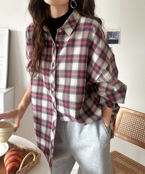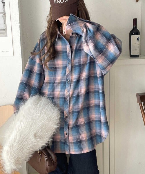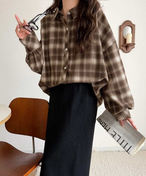 今季らしいチェック柄と大きめシルエットが特徴のシャツ。