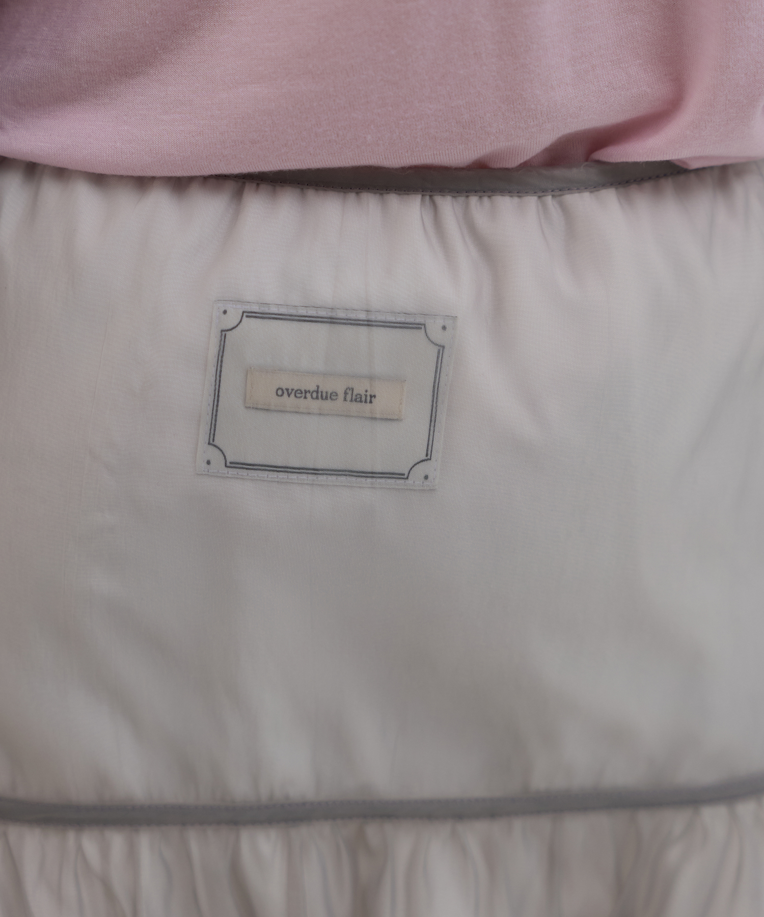 -背面の裏地にラベルポイントを配置し、シアーな表地の間からほのかに透けて見えるよう意図して上品なポイントを加えました。