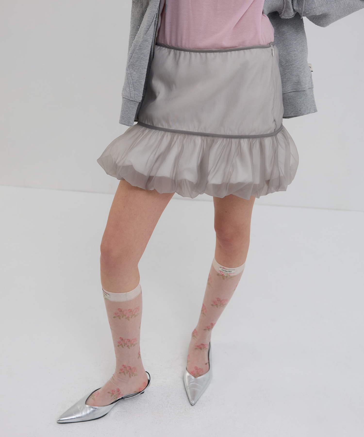 ORGANZA LAYERED MINI SKIRT_GRAY/WHITE