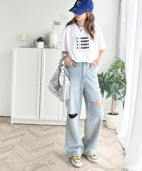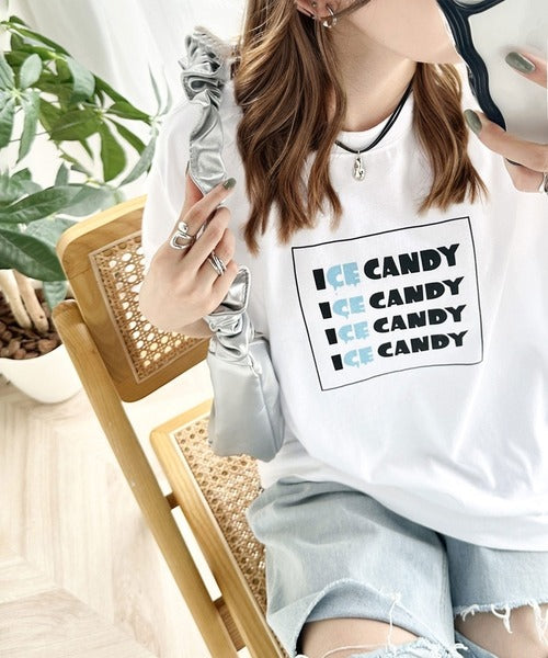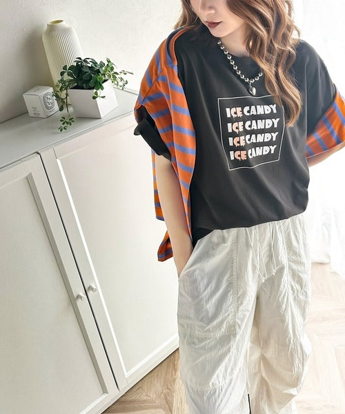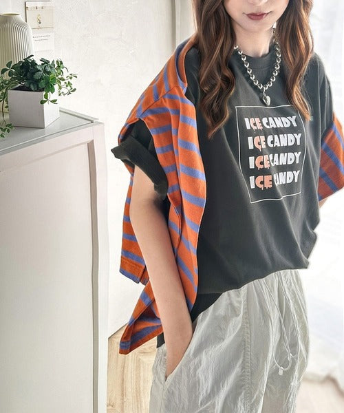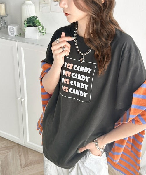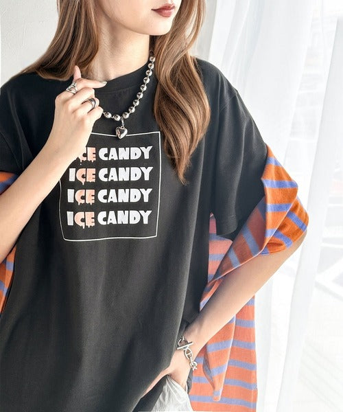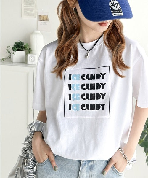 大人胸キュン。綿100%ICE CANDYロゴプリントTシャツ mo1310038