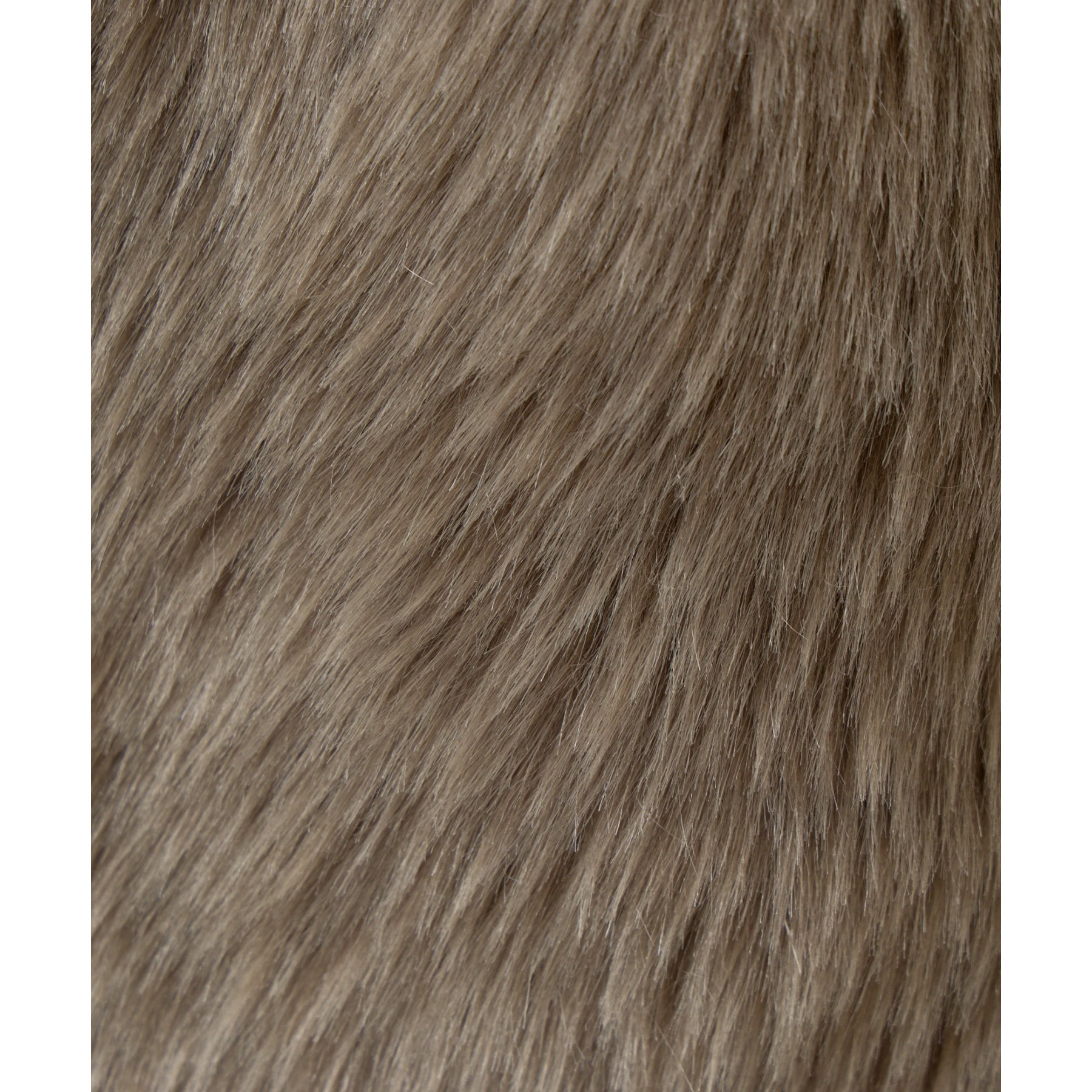 毛足の長いフェイクファーがコーディネートに華やかさをプラスしてくれるます。