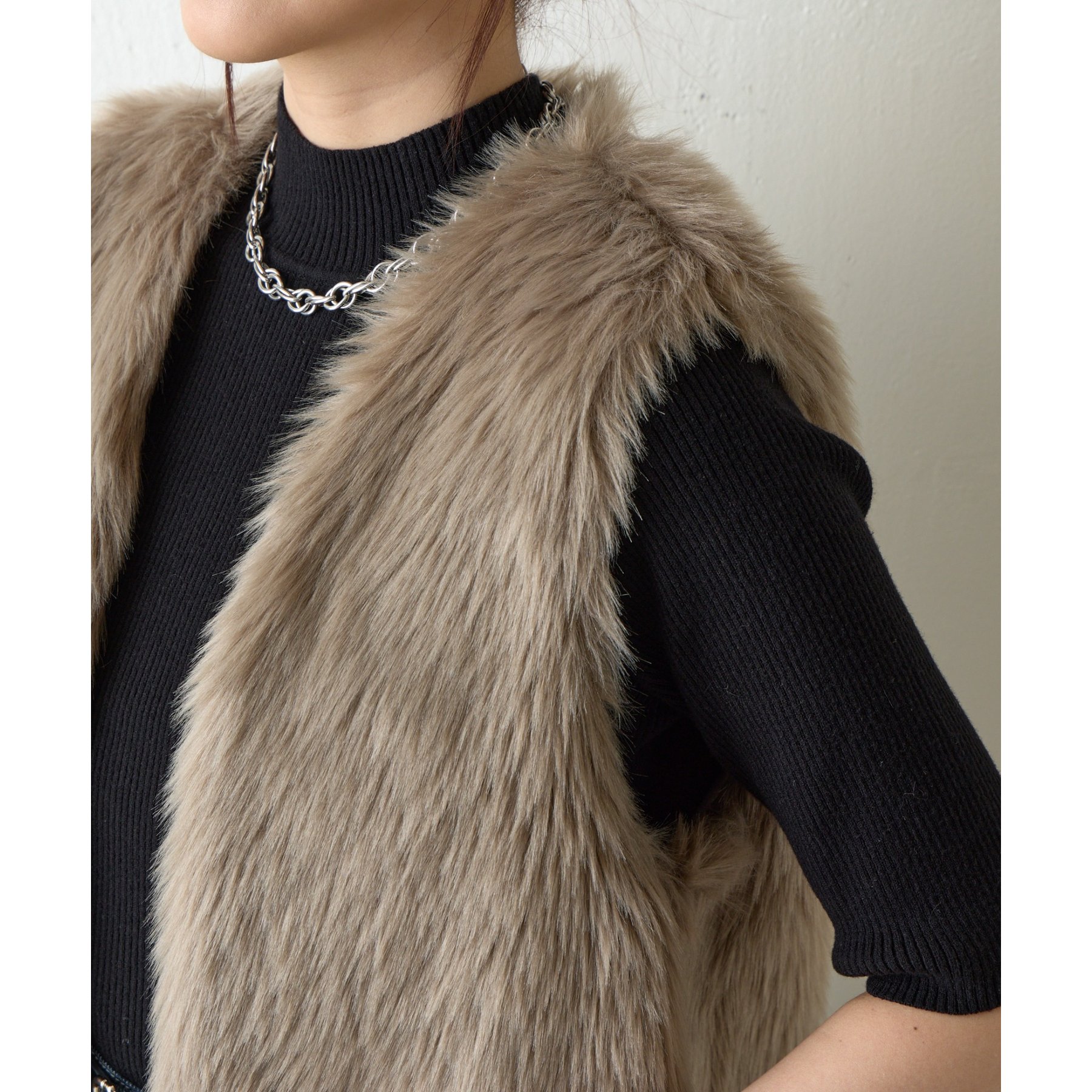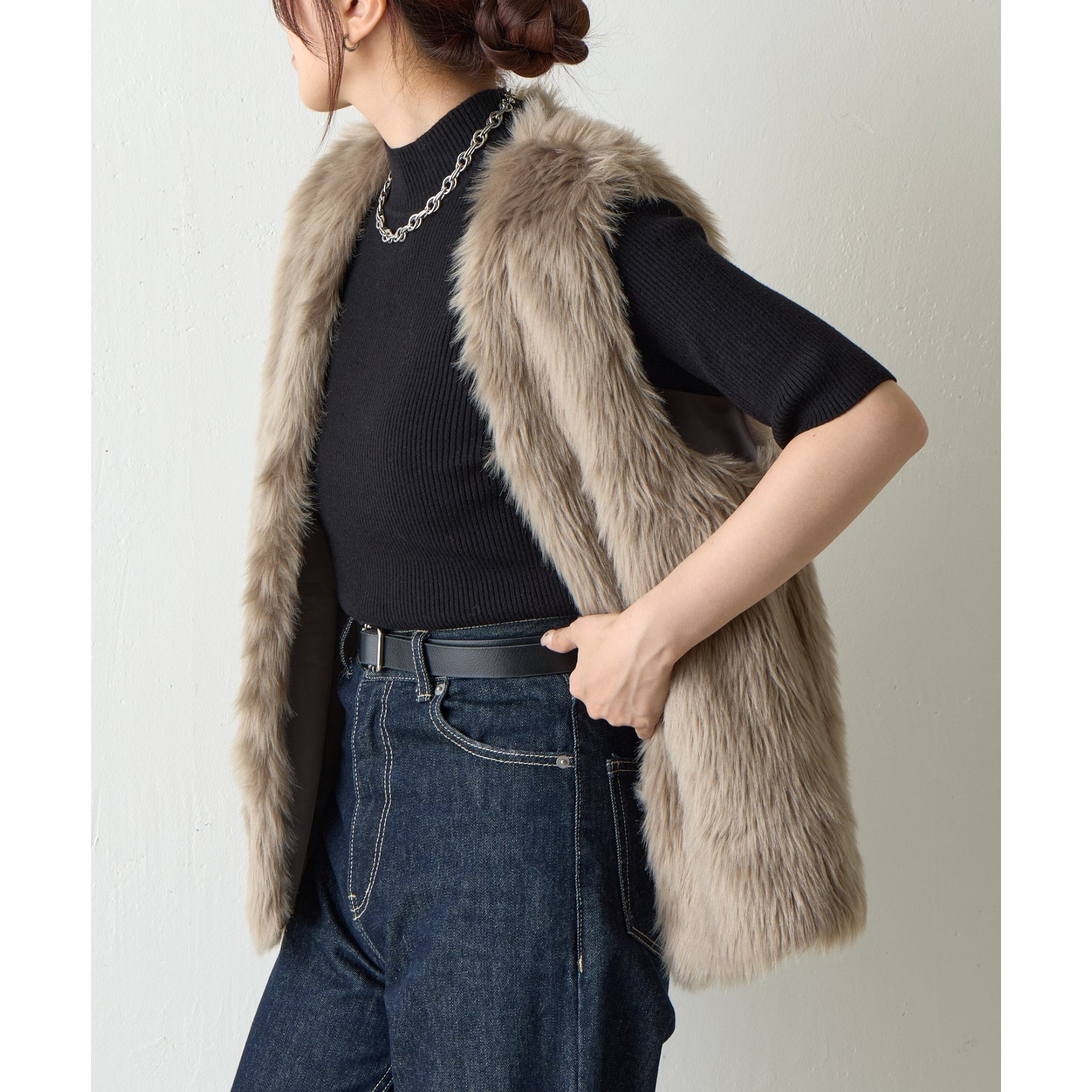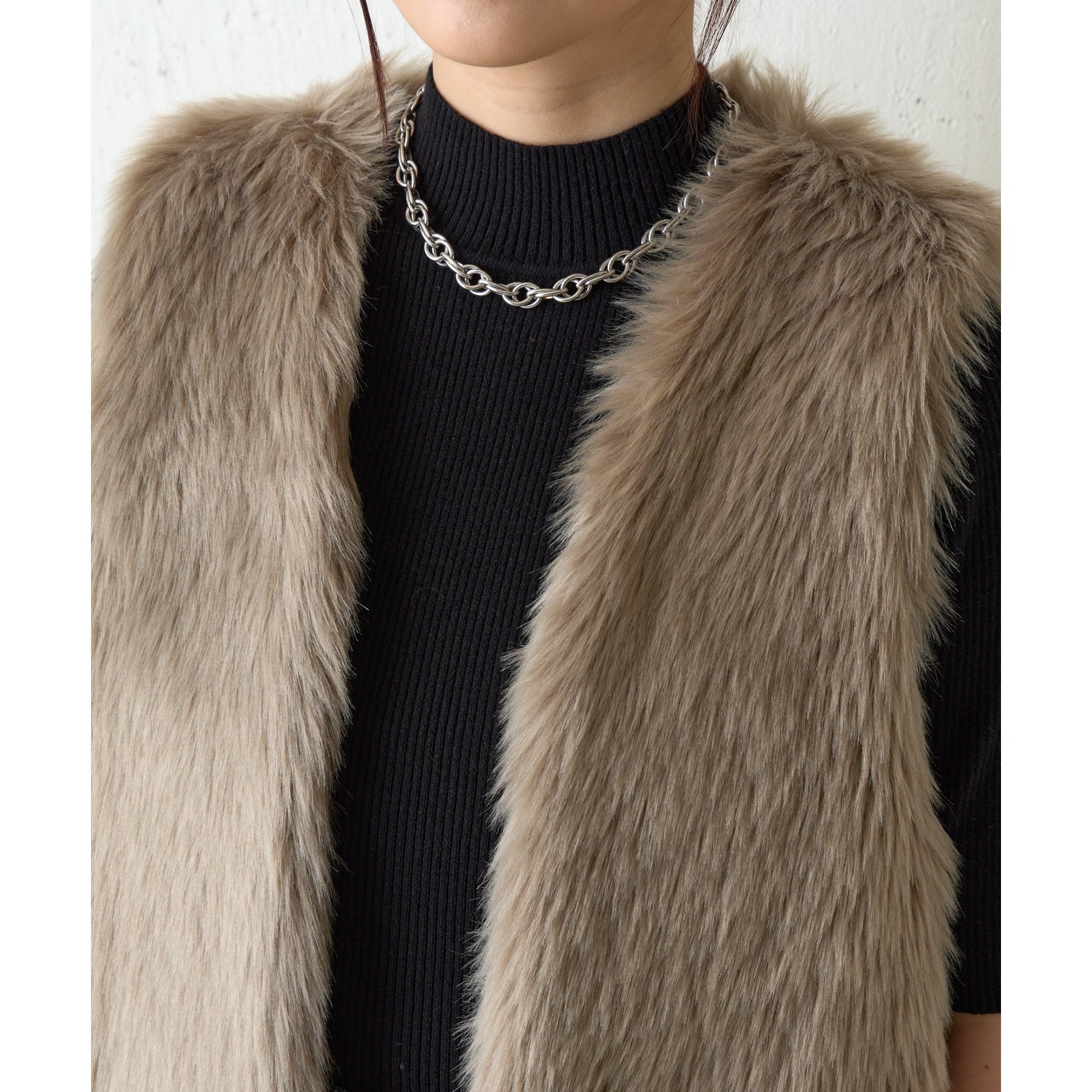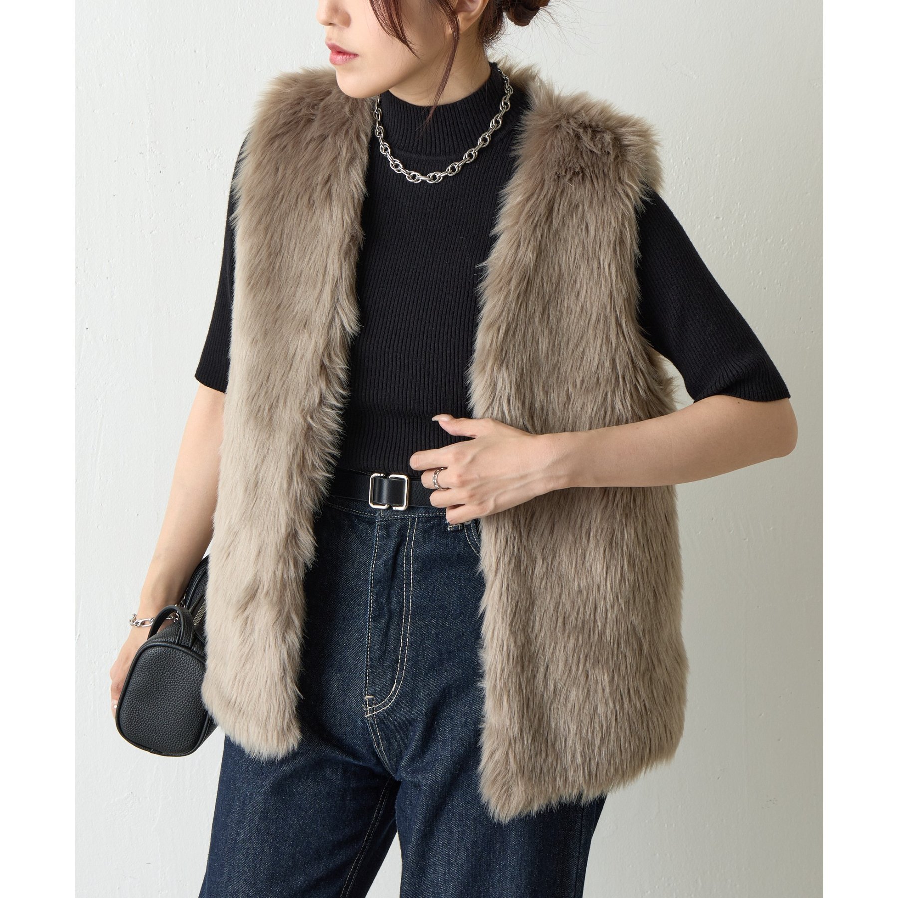 ふわふわとした柔らかい肌触りと、ラグジュアリーな見た目が魅力のロングフェイクファーベストです。