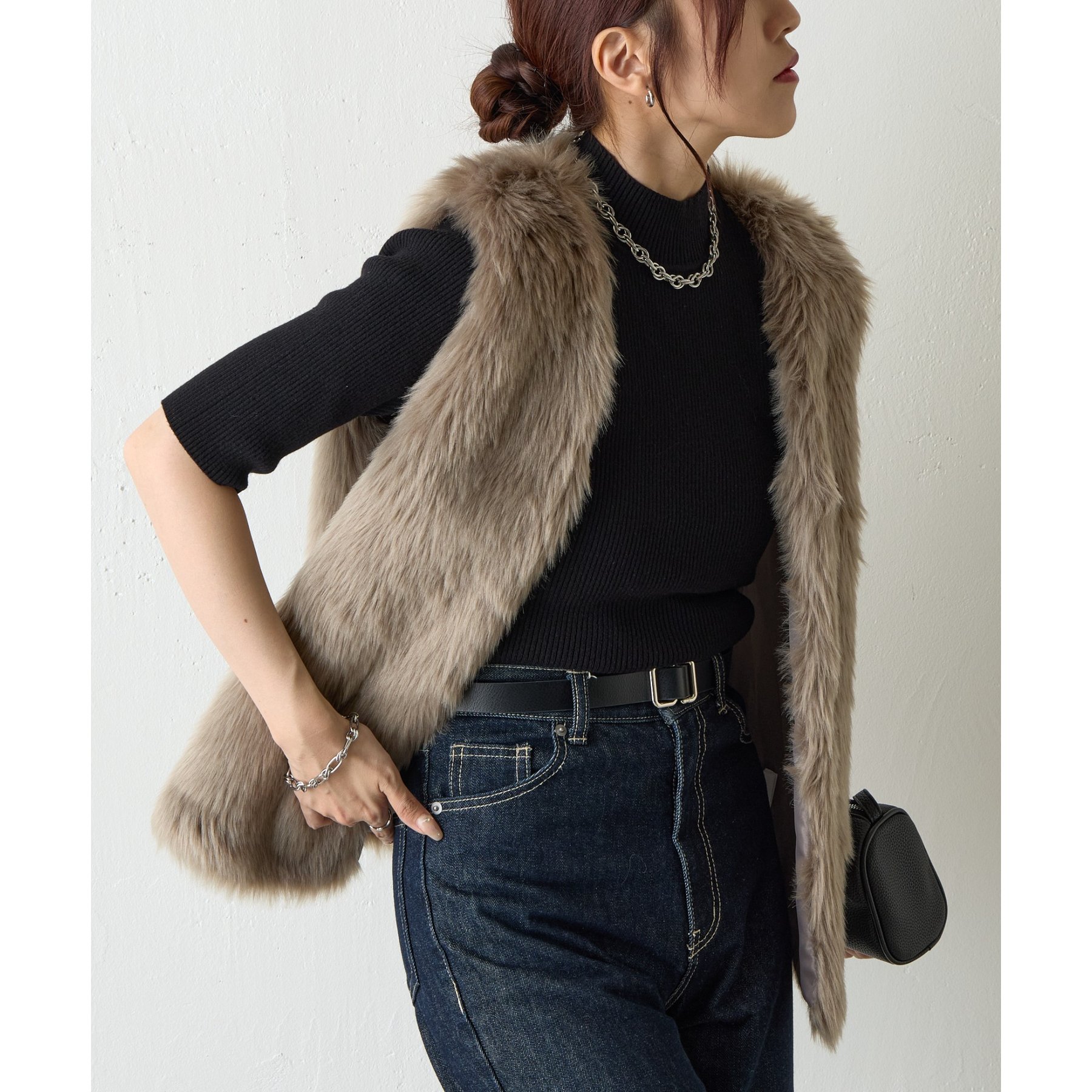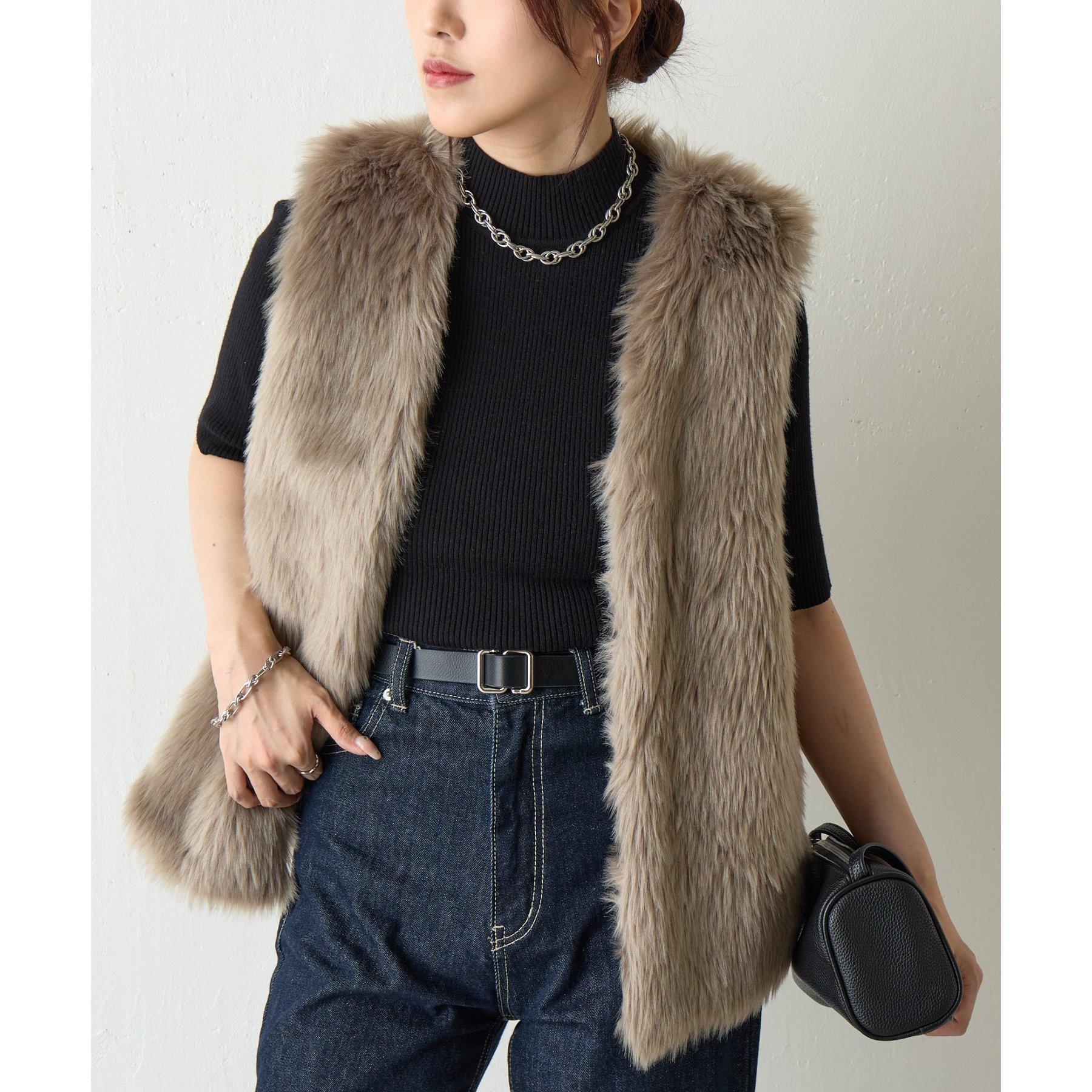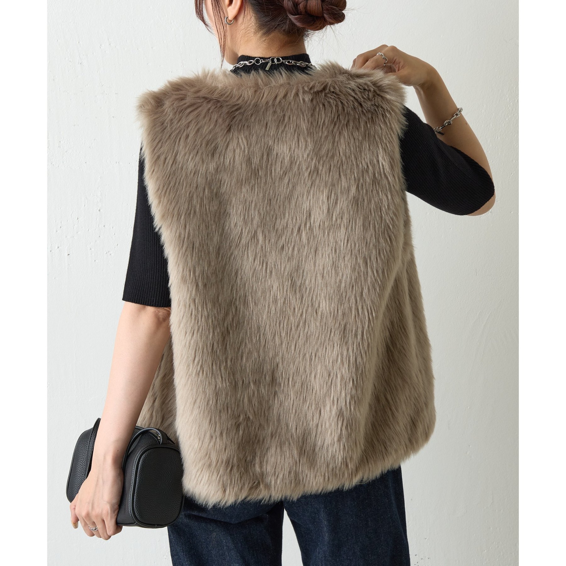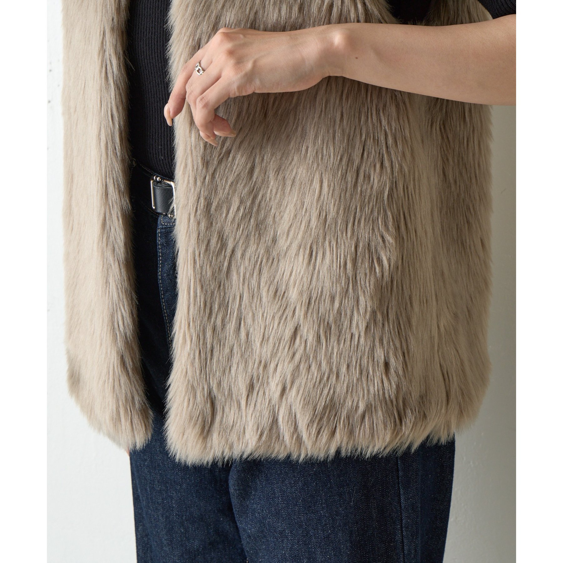 ふわふわとした柔らかい肌触りと、ラグジュアリーな見た目が魅力のロングフェイクファーベストです。