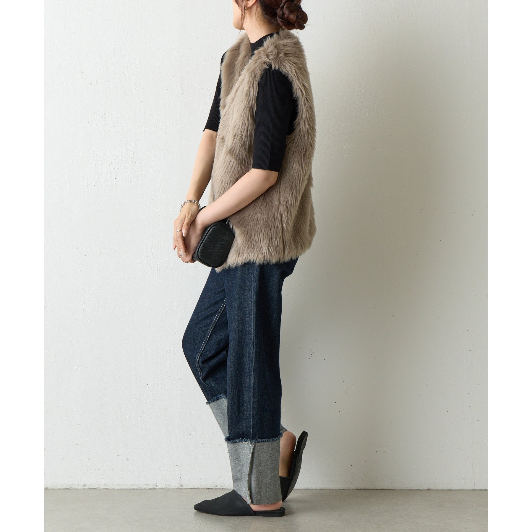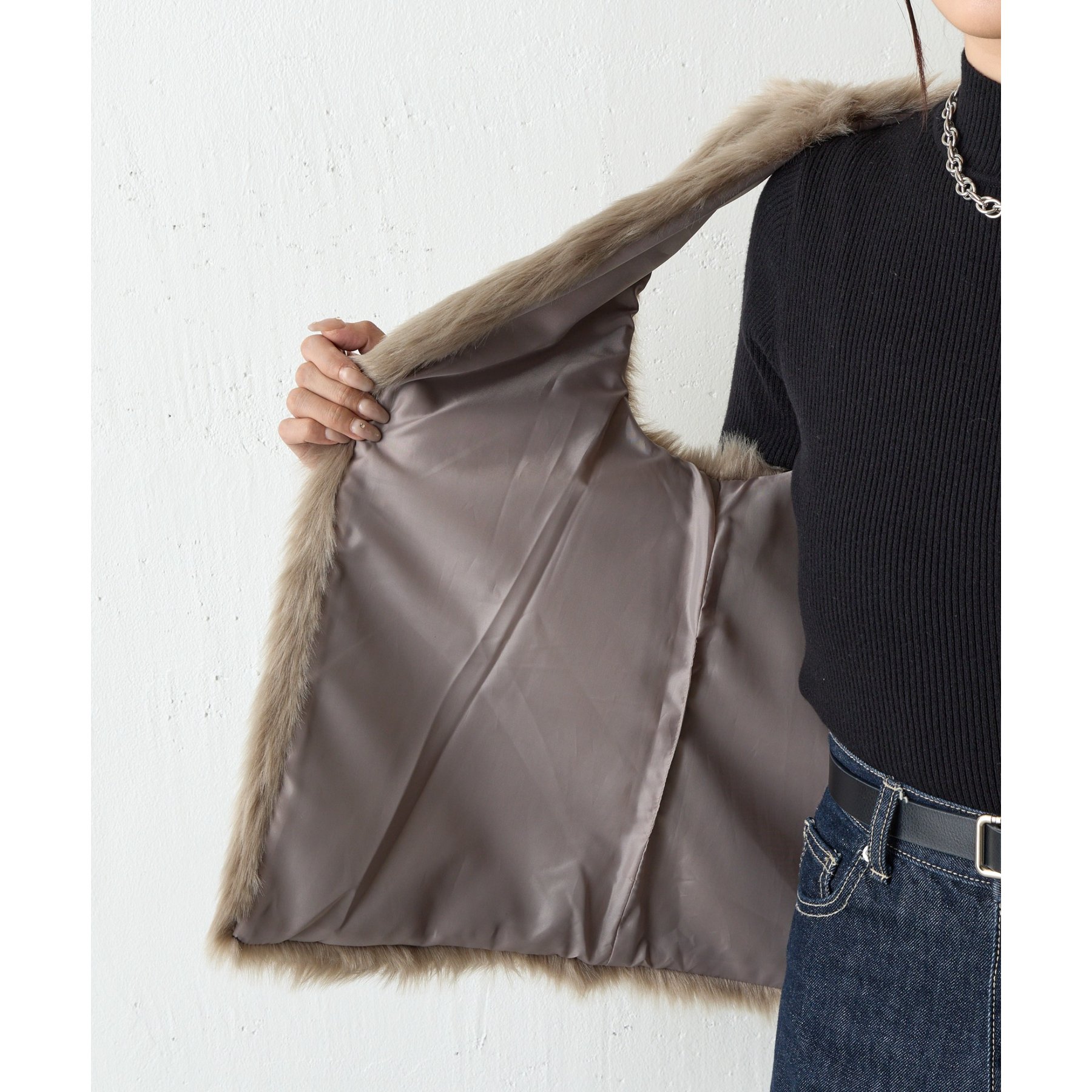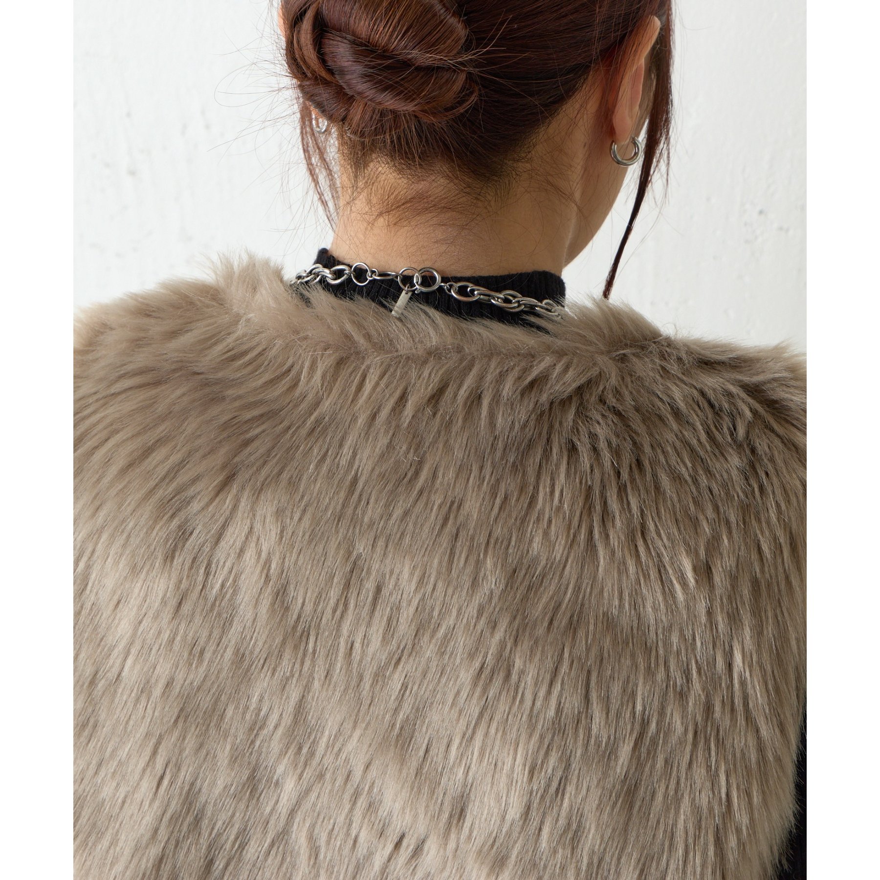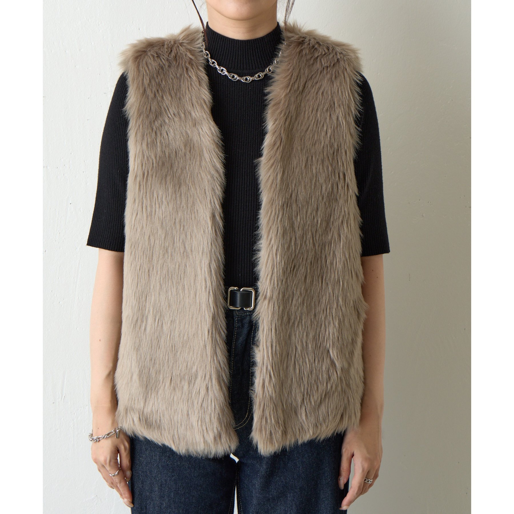ふわふわとした柔らかい肌触りと、ラグジュアリーな見た目が魅力のロングフェイクファーベストです。