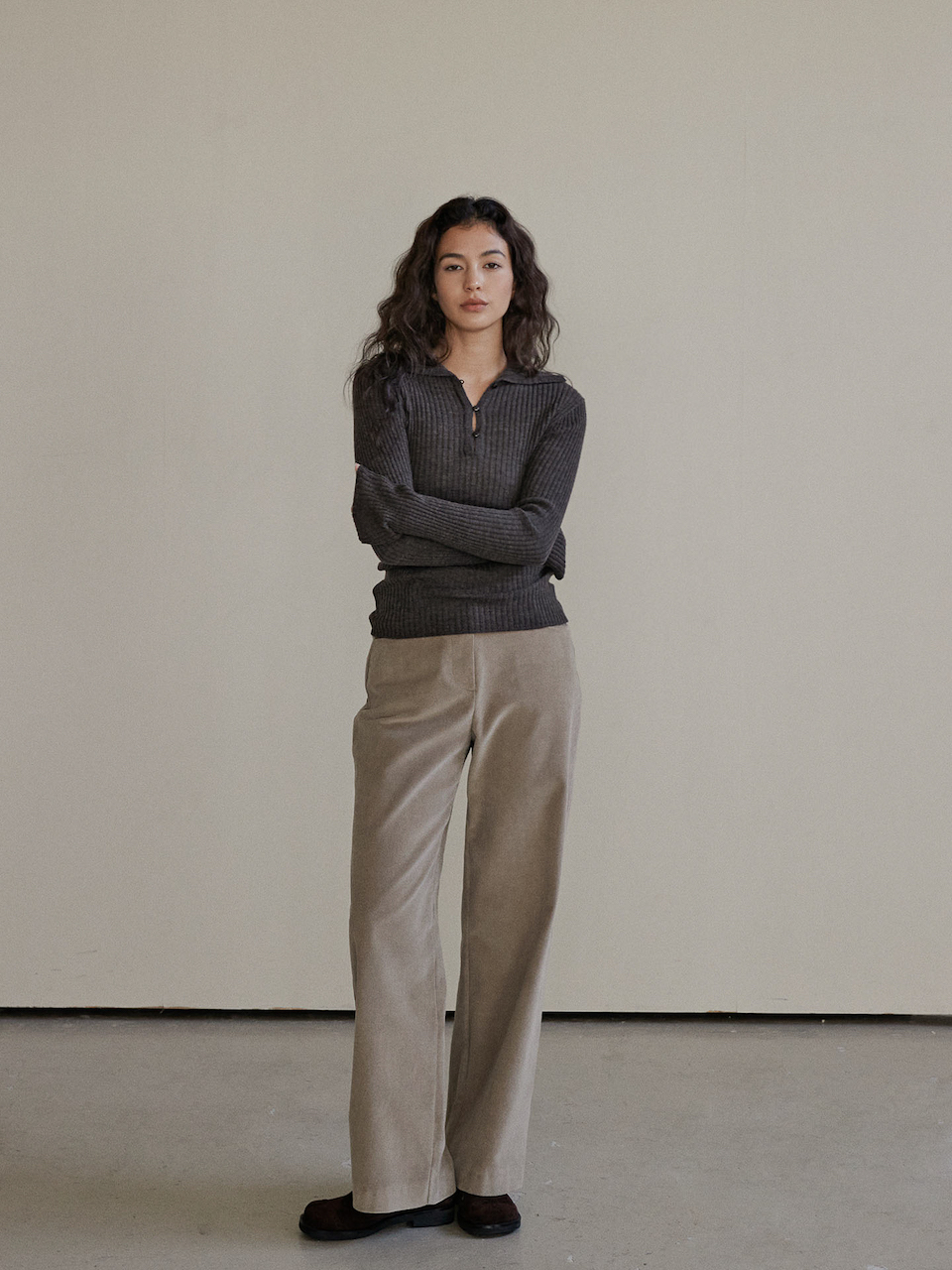 CORDUROY SNAP PANTS_BEIGE