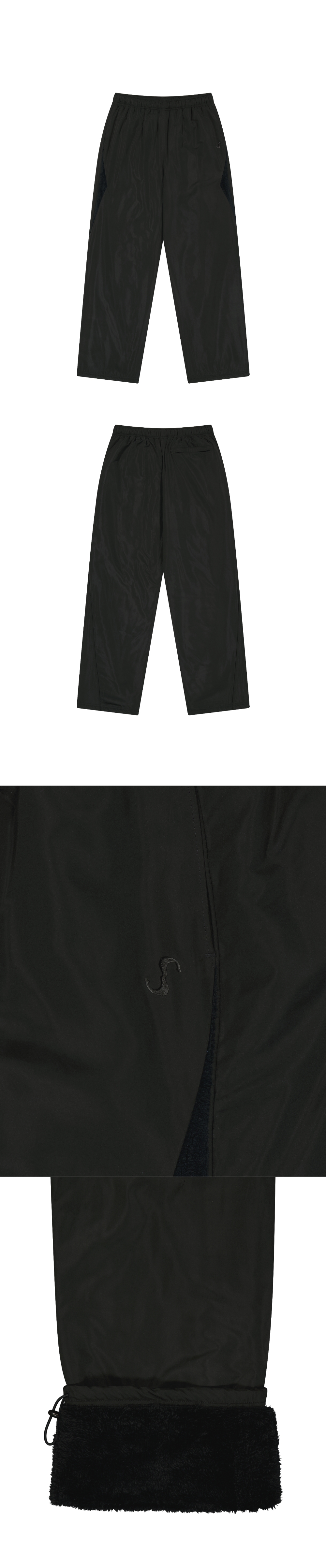 Fleece Lined Nylon Pants / Black