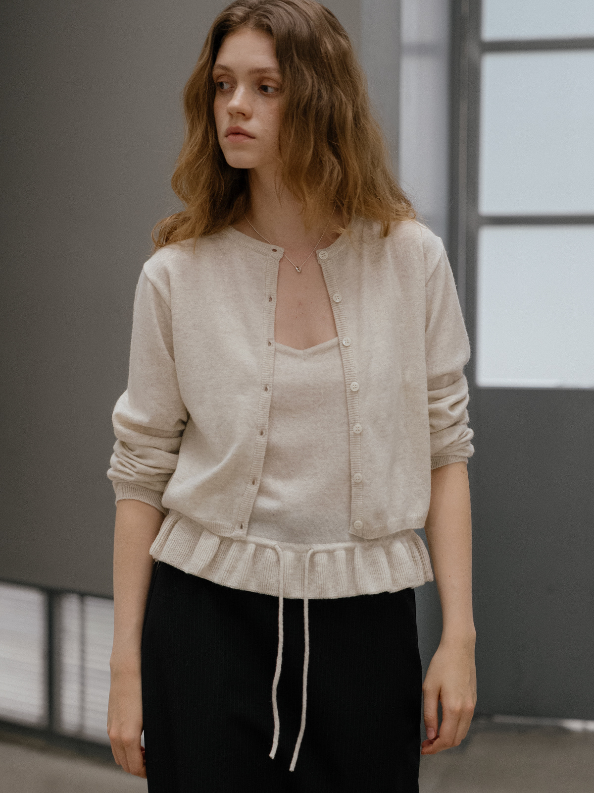 Frill sleeveless cardigan set FRFA01CD04_Oatmeal