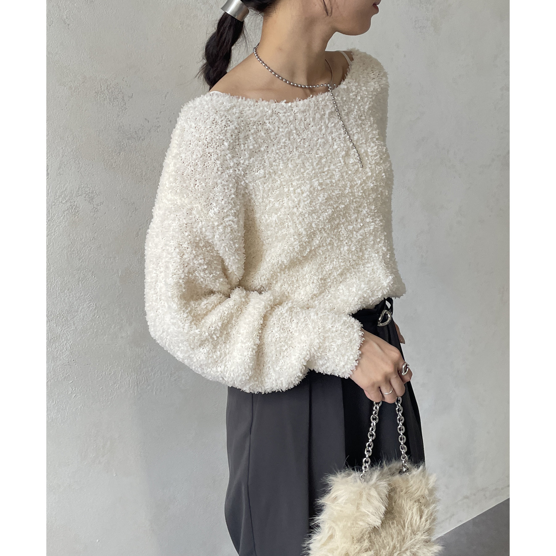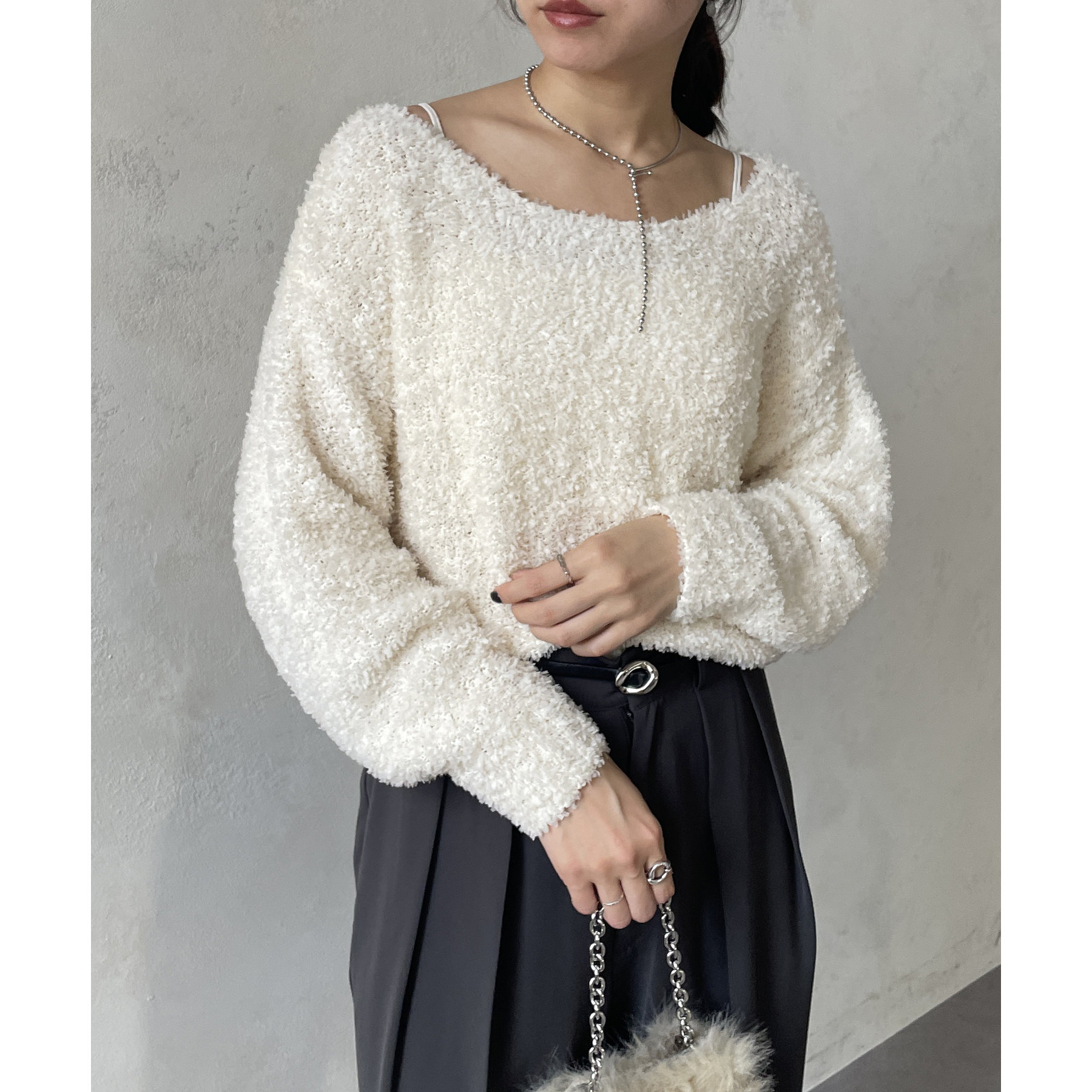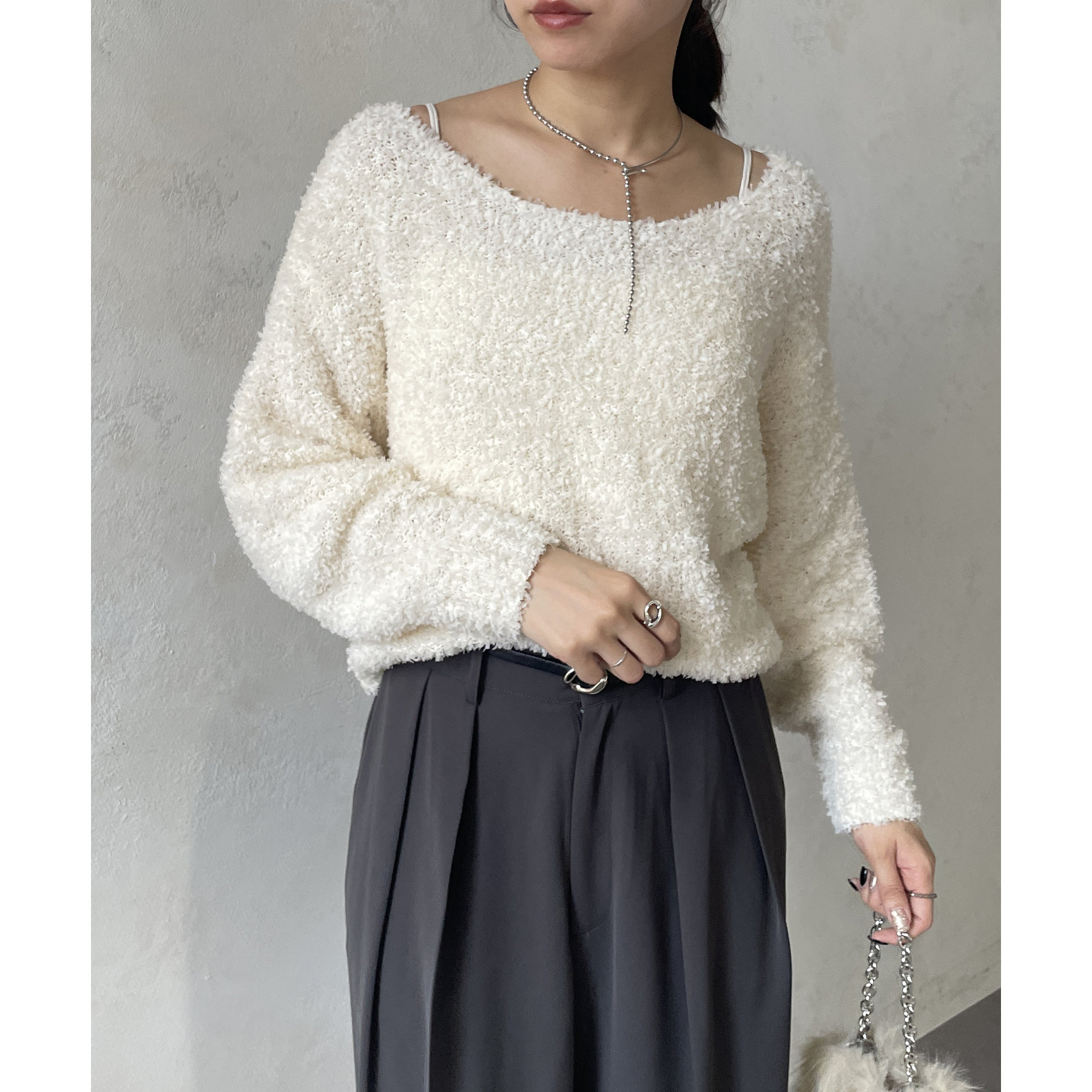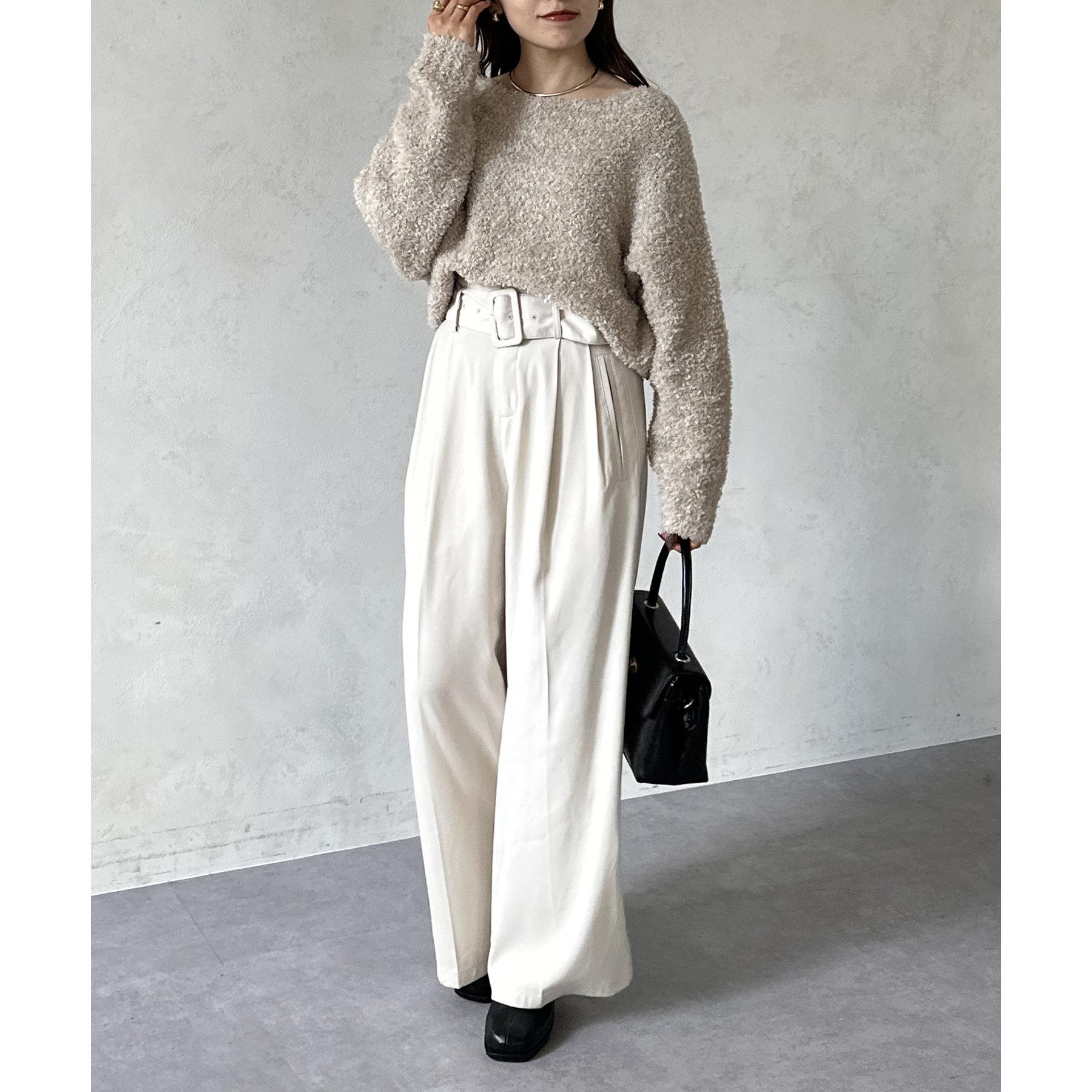 幅広いスタイルに合う万能ニットです。