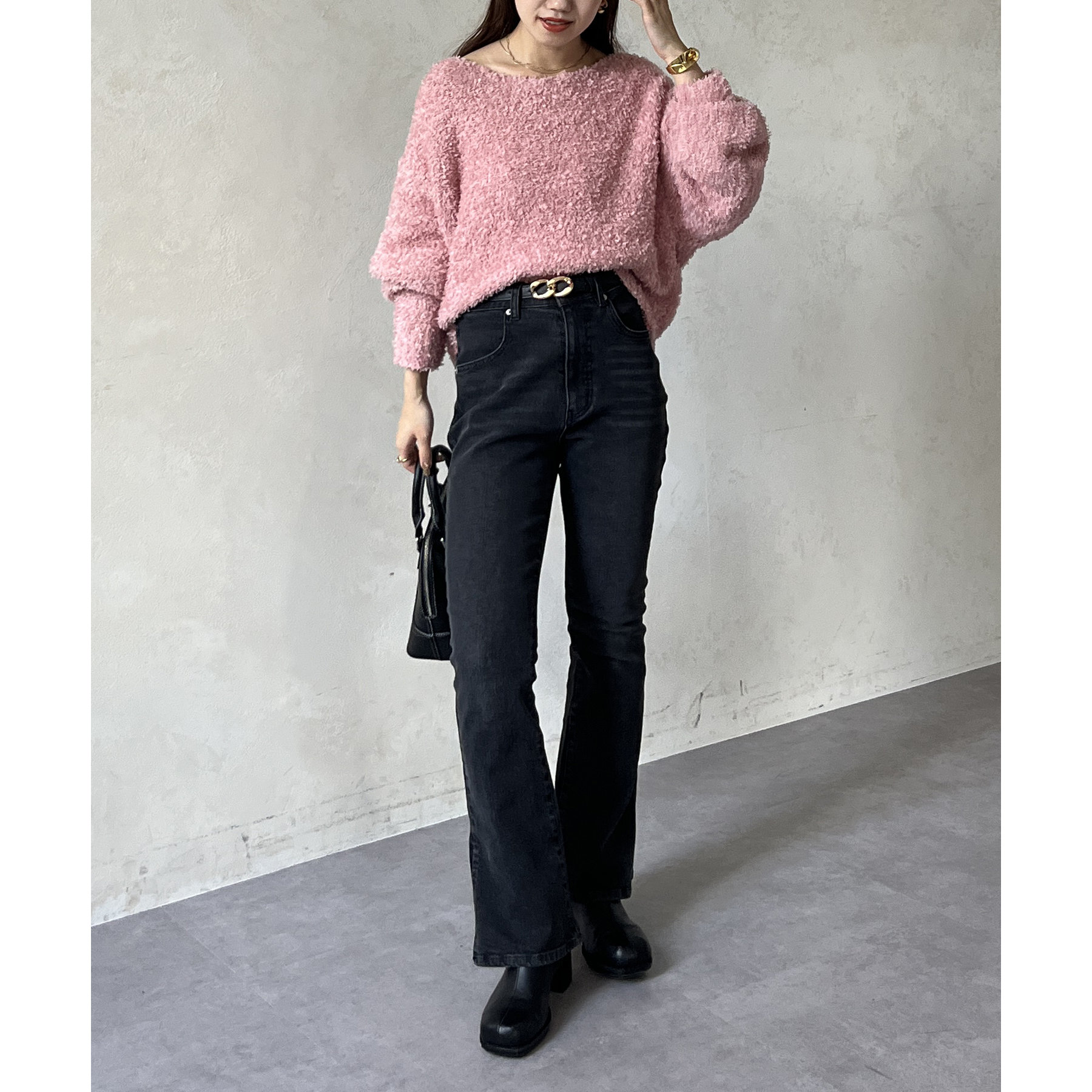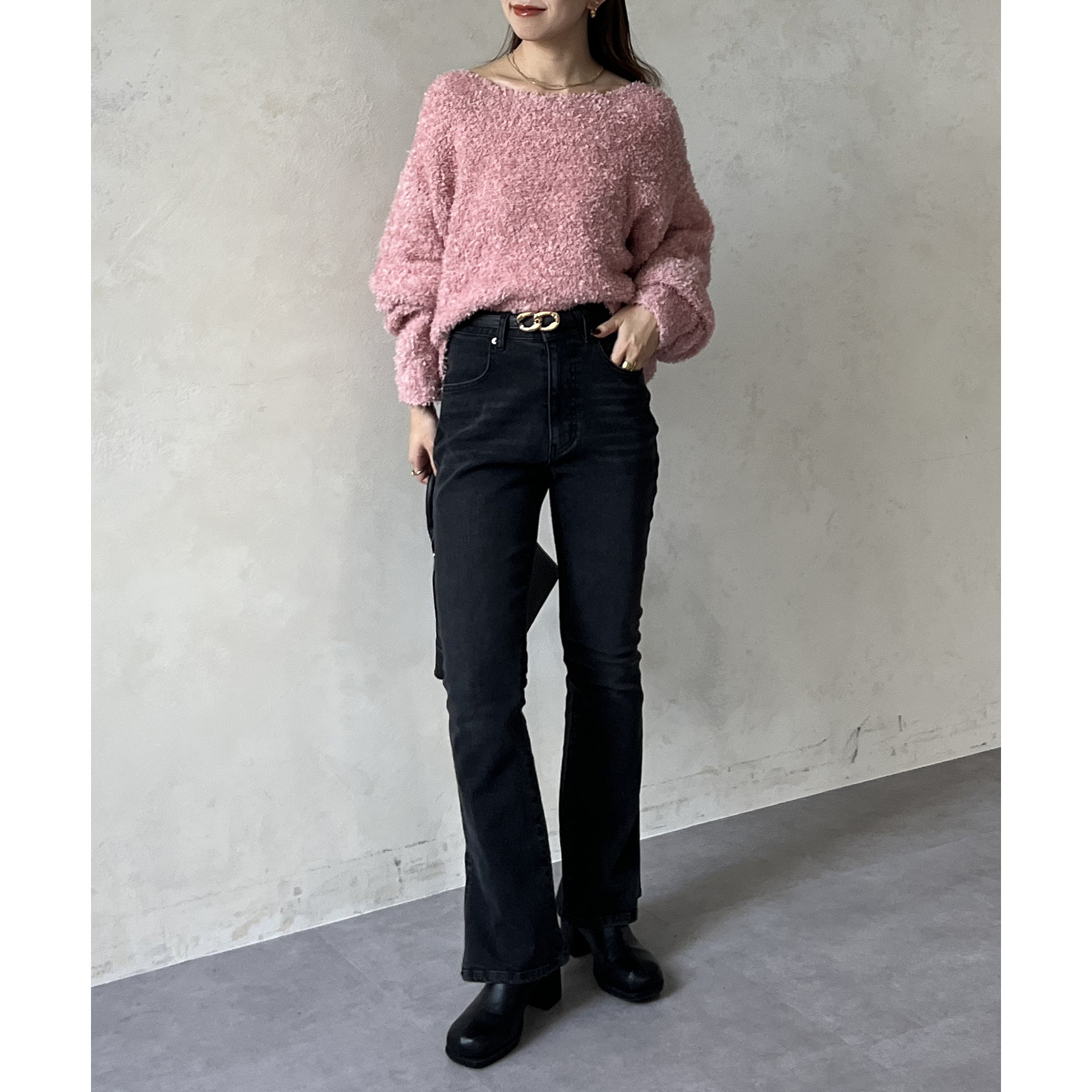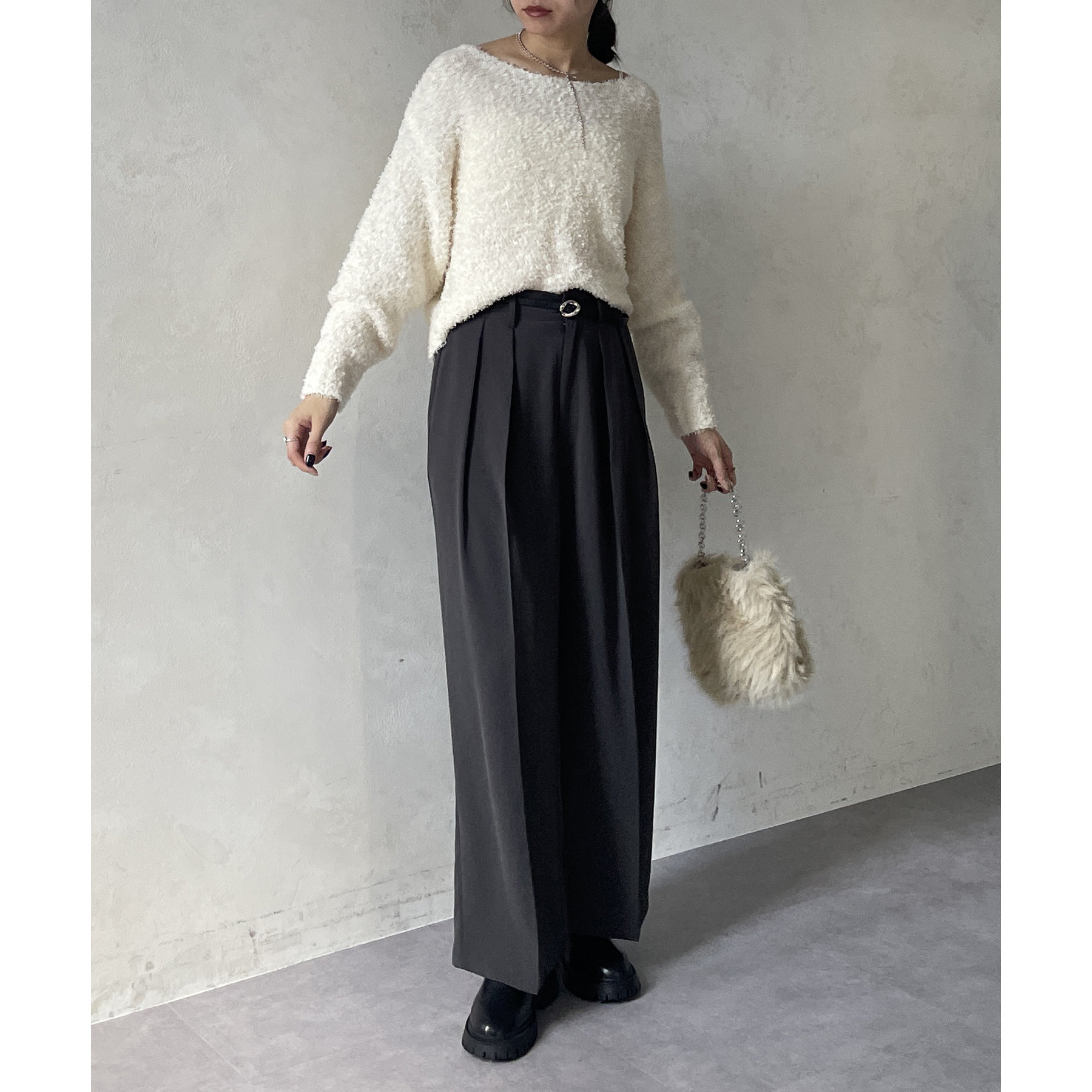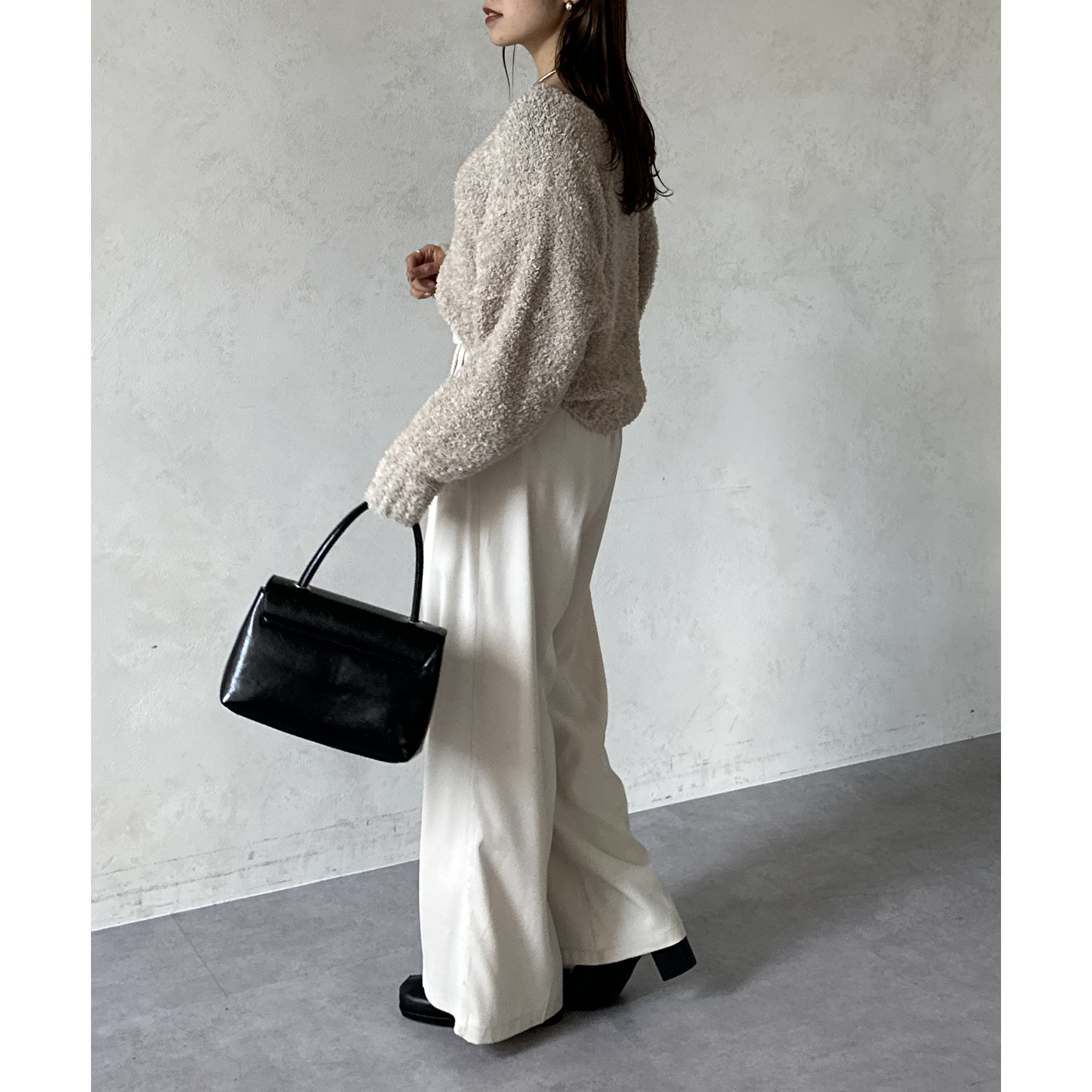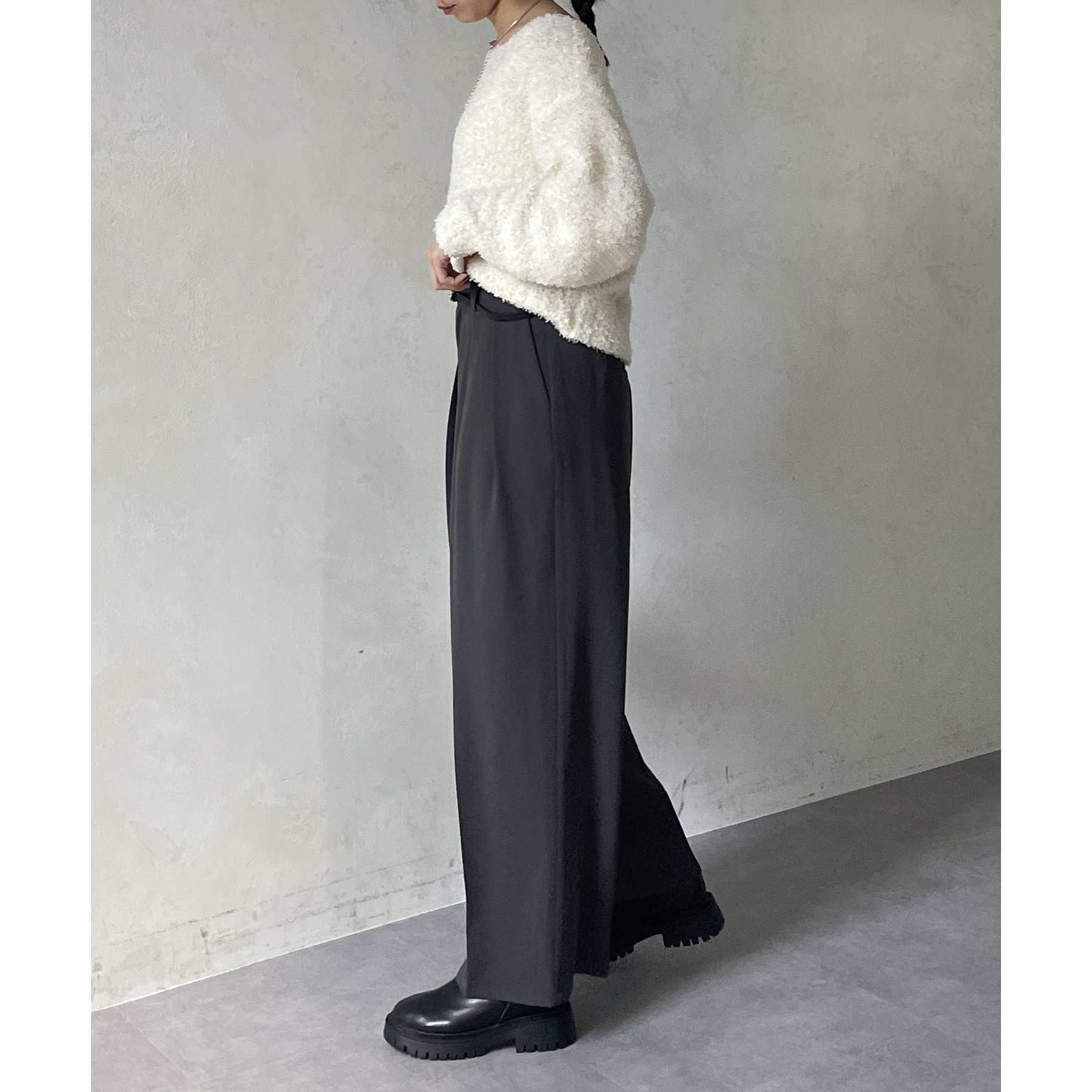 ・ショート丈なので、ハイウエストのボトムスと合わせると