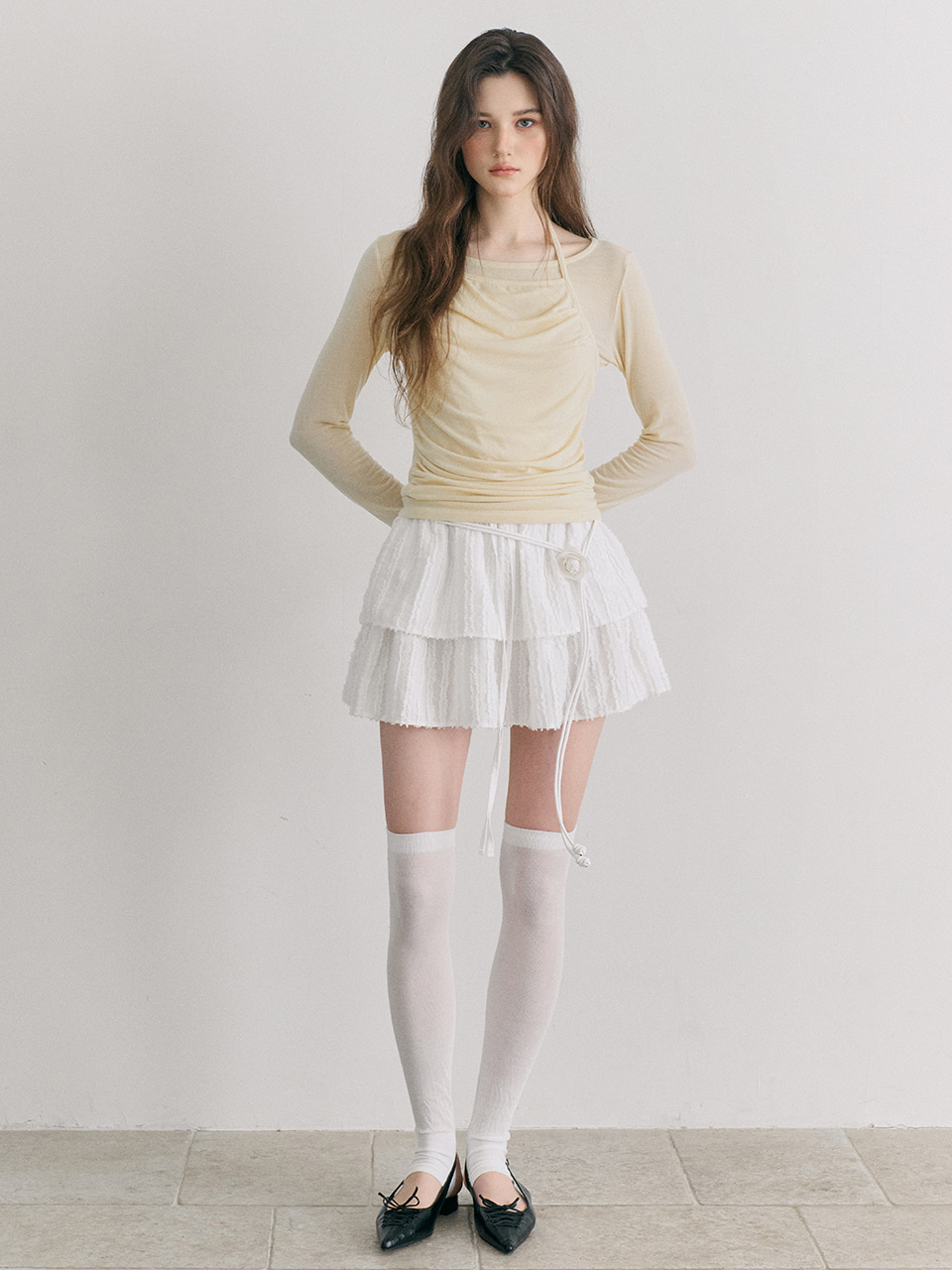 Texture Tiered Mini Skirt, White