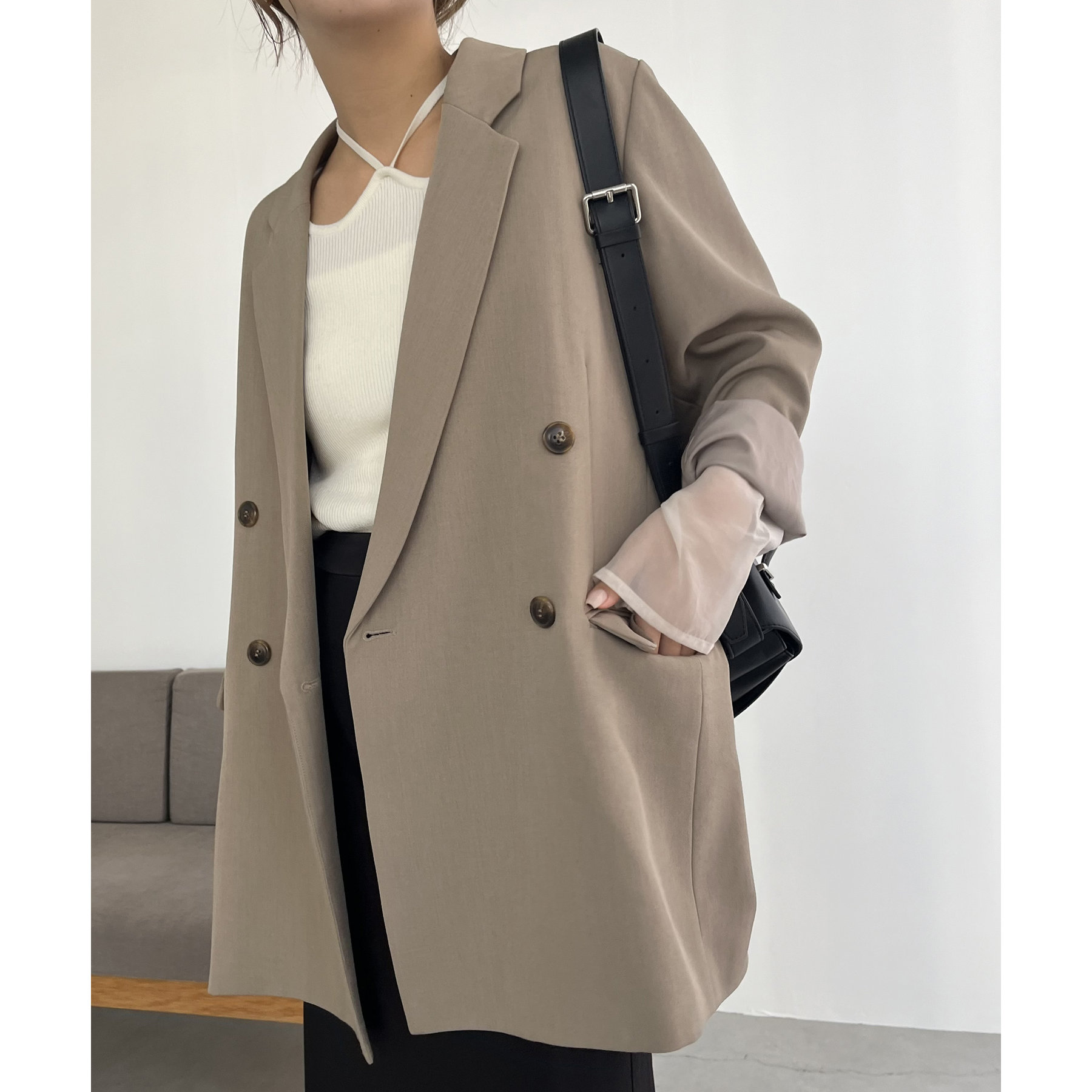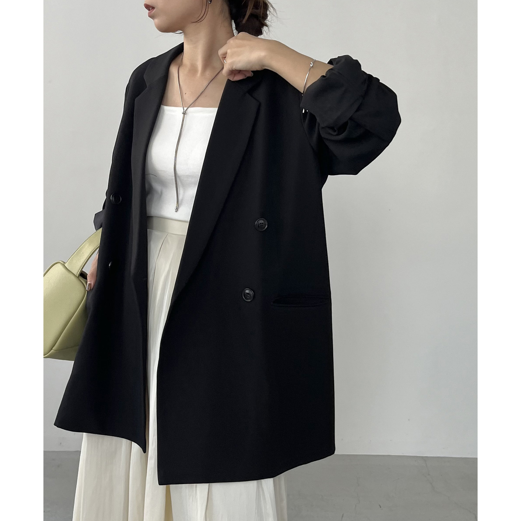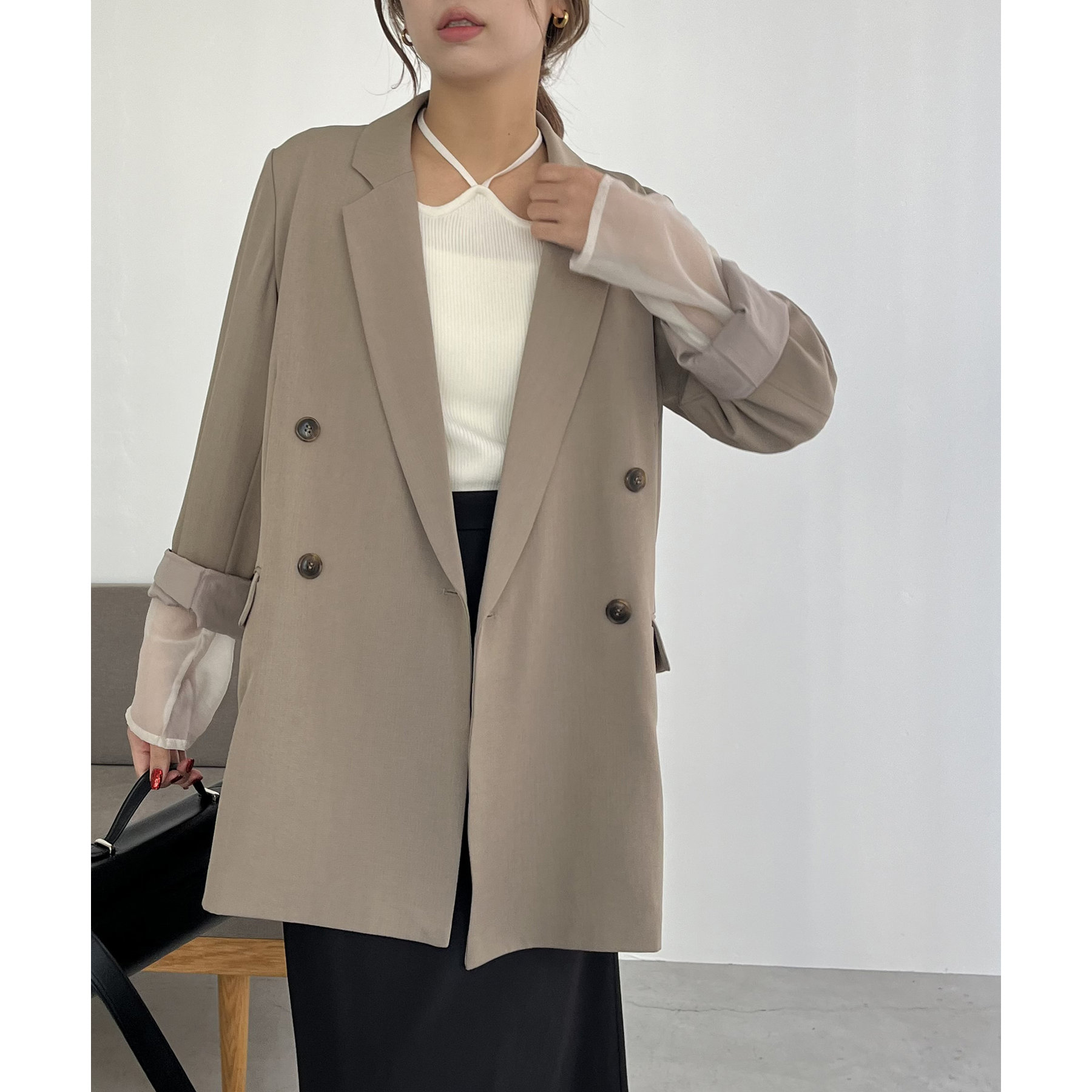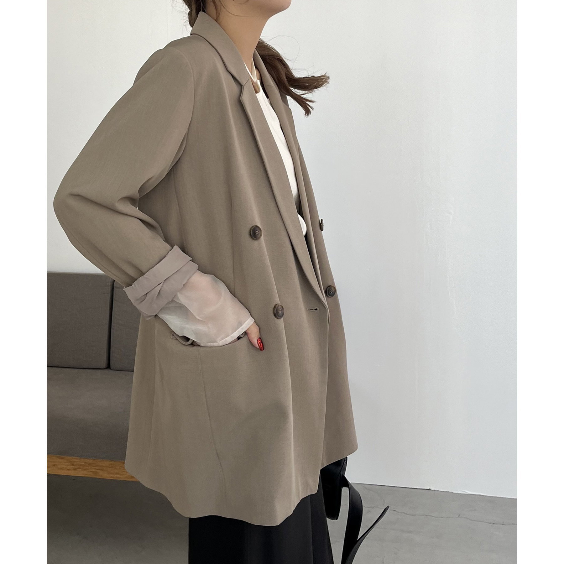 ・ダブルボタンで洗練された大人な印象に