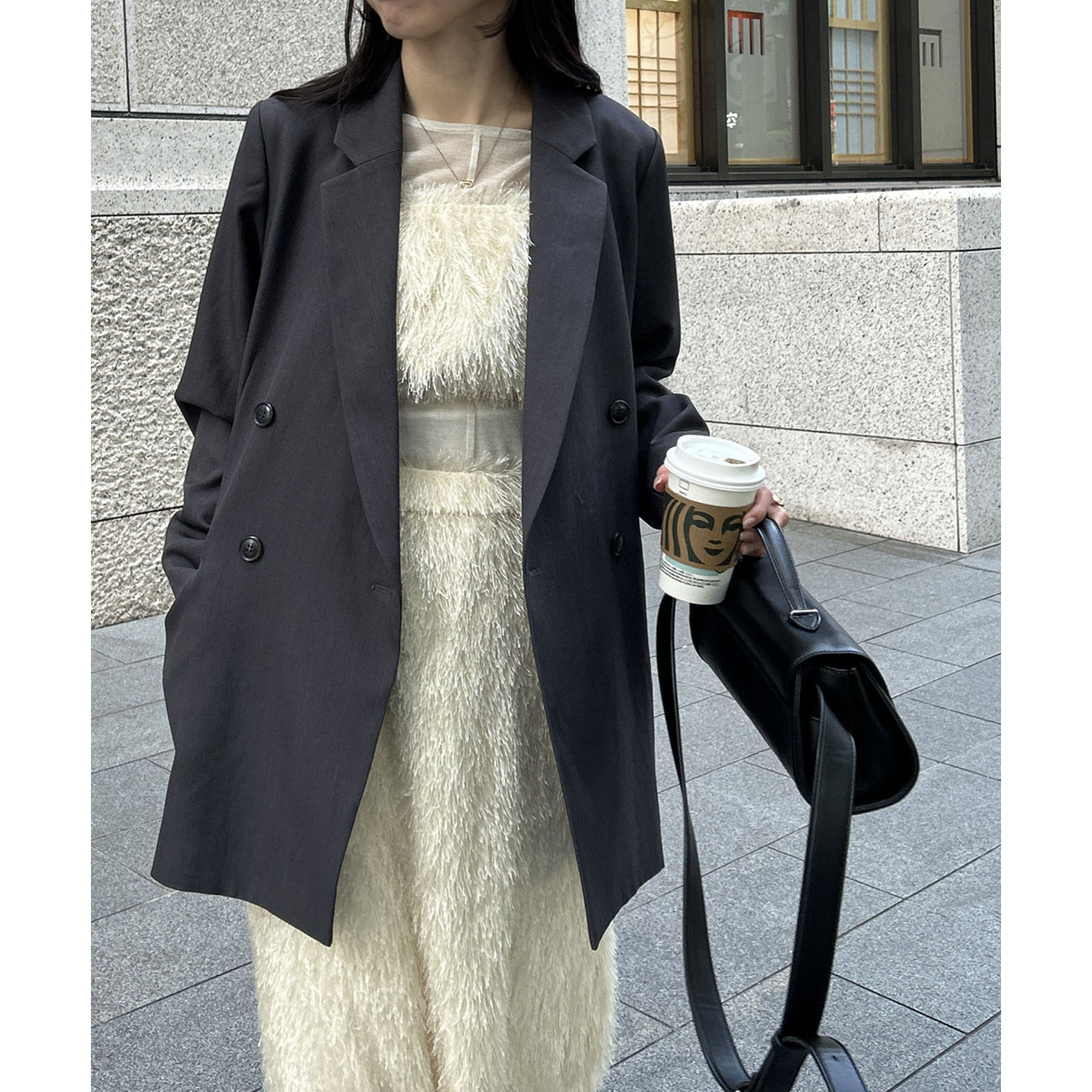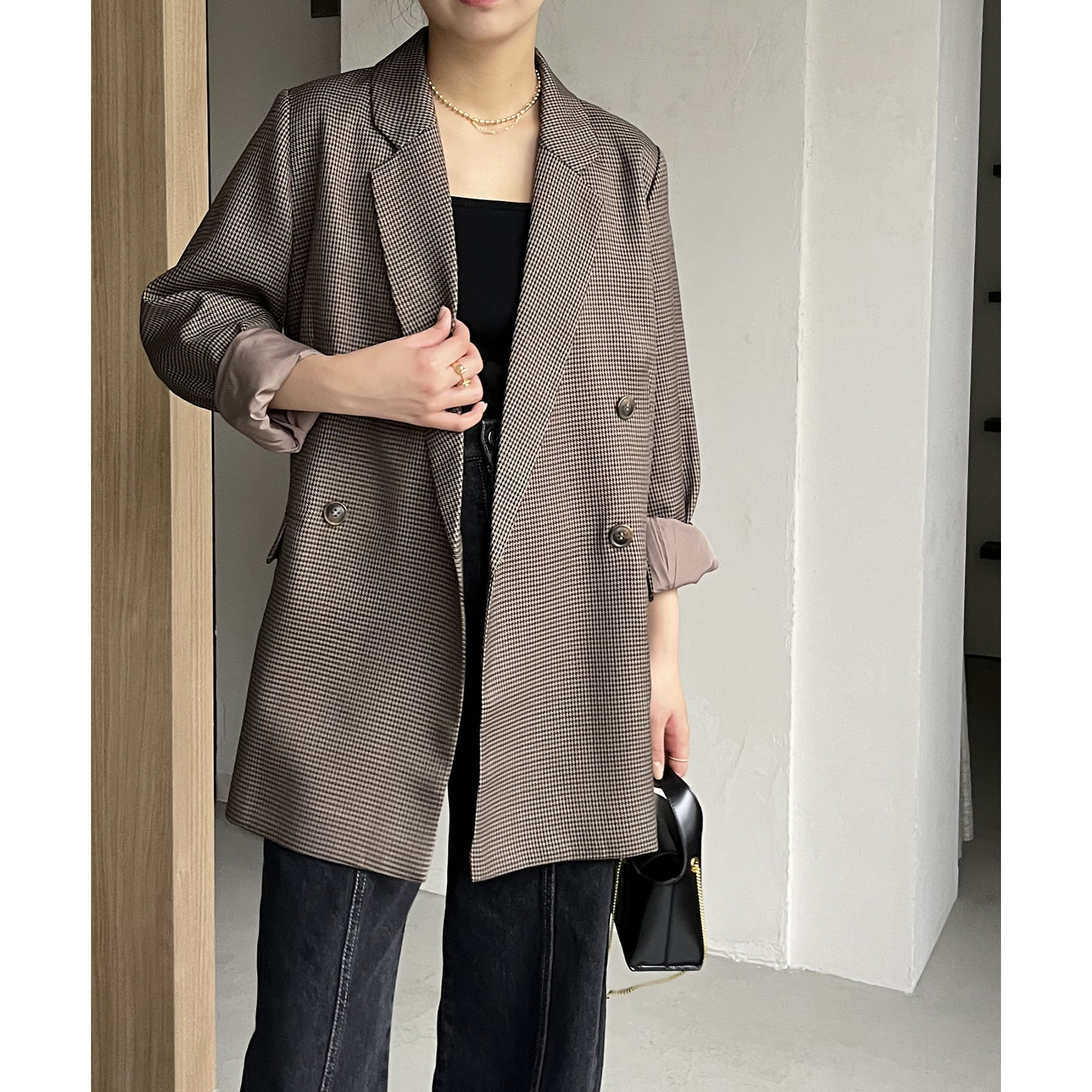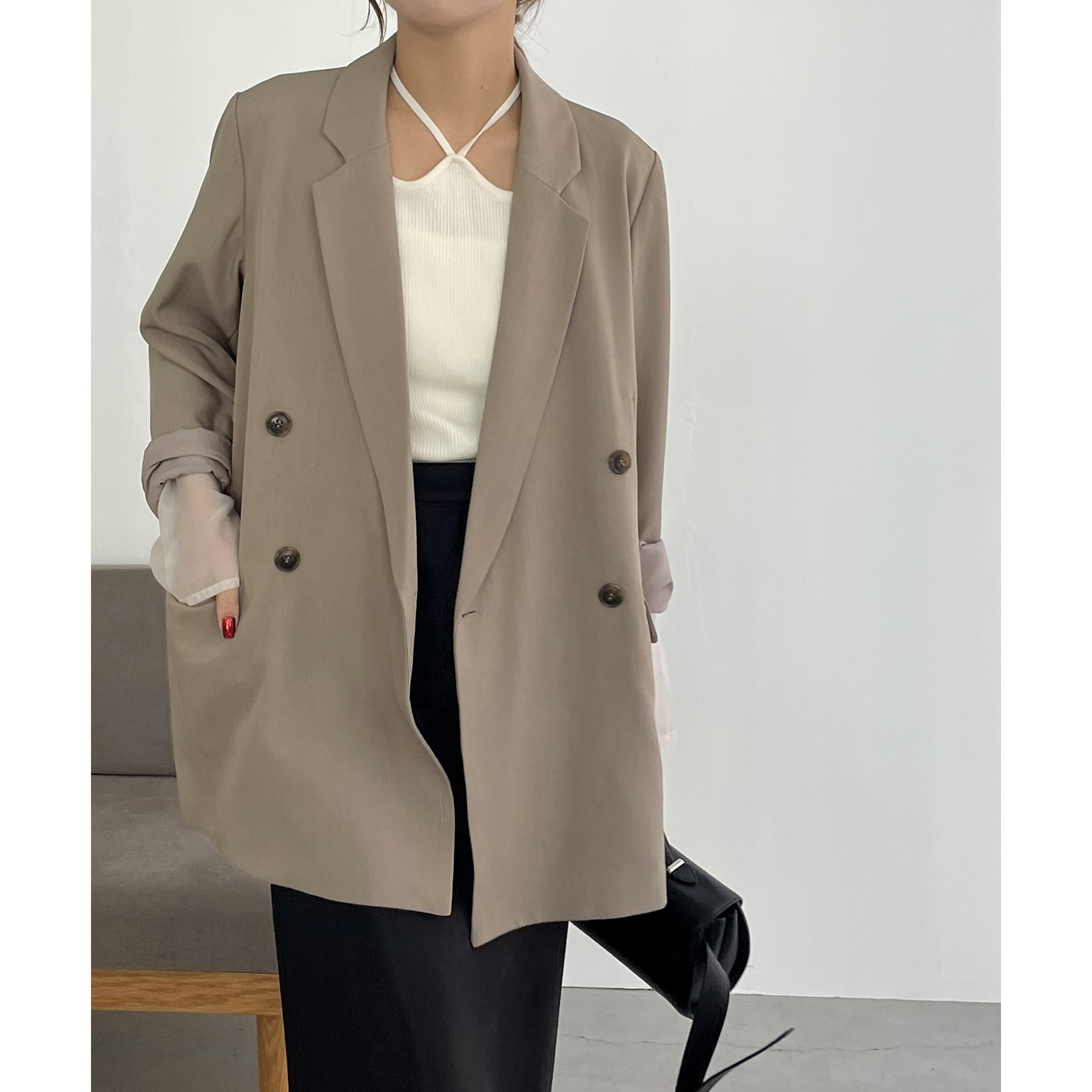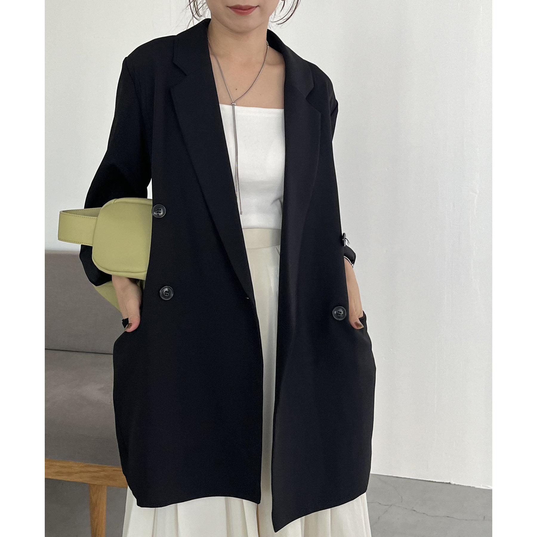 ・ダブルボタンで洗練された大人な印象に