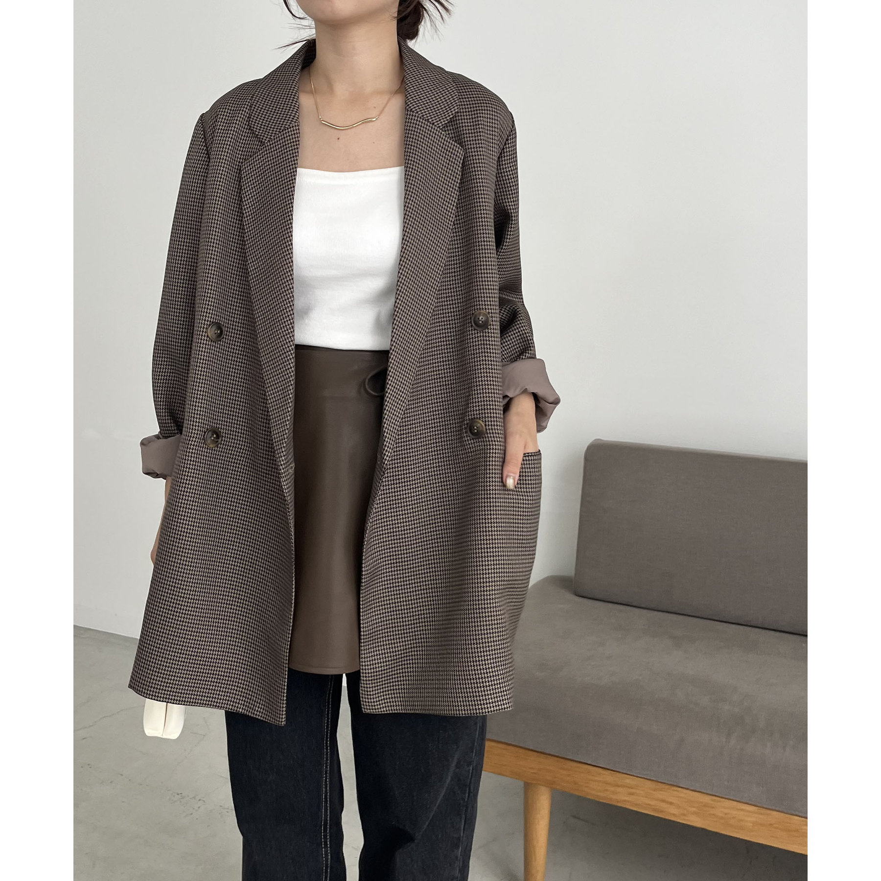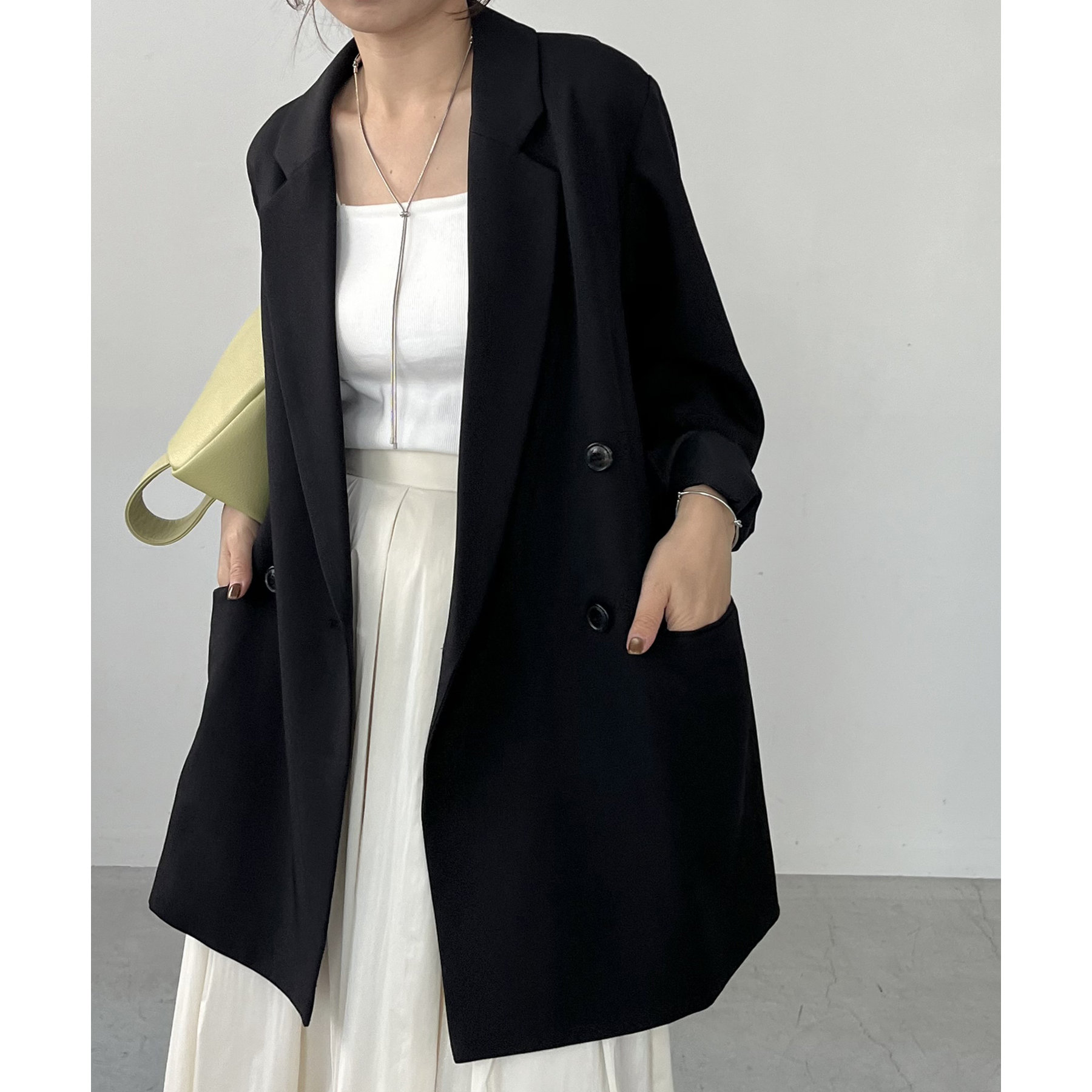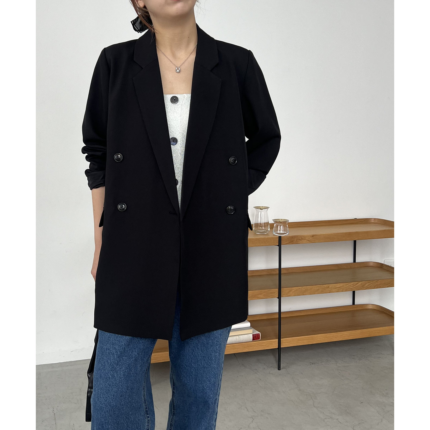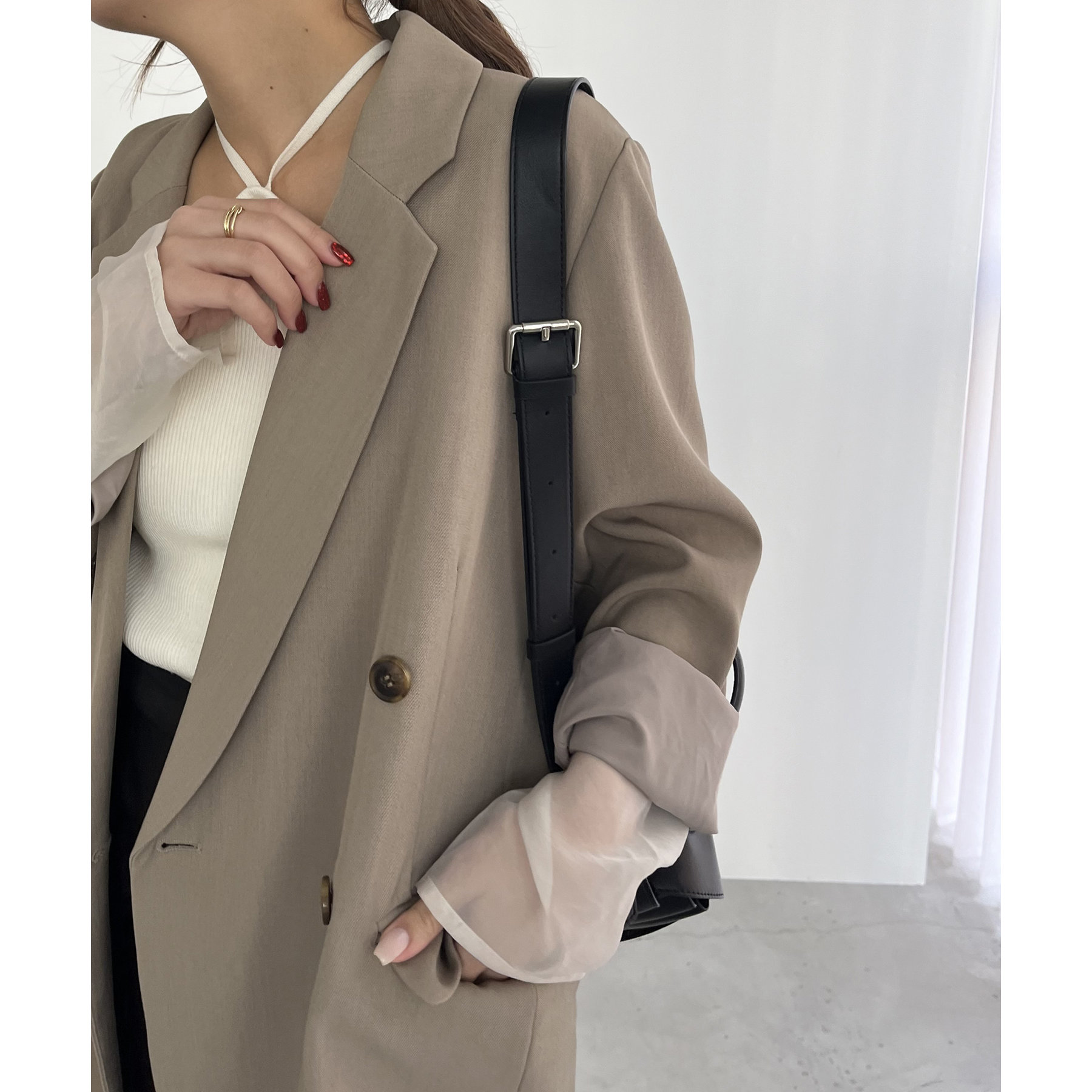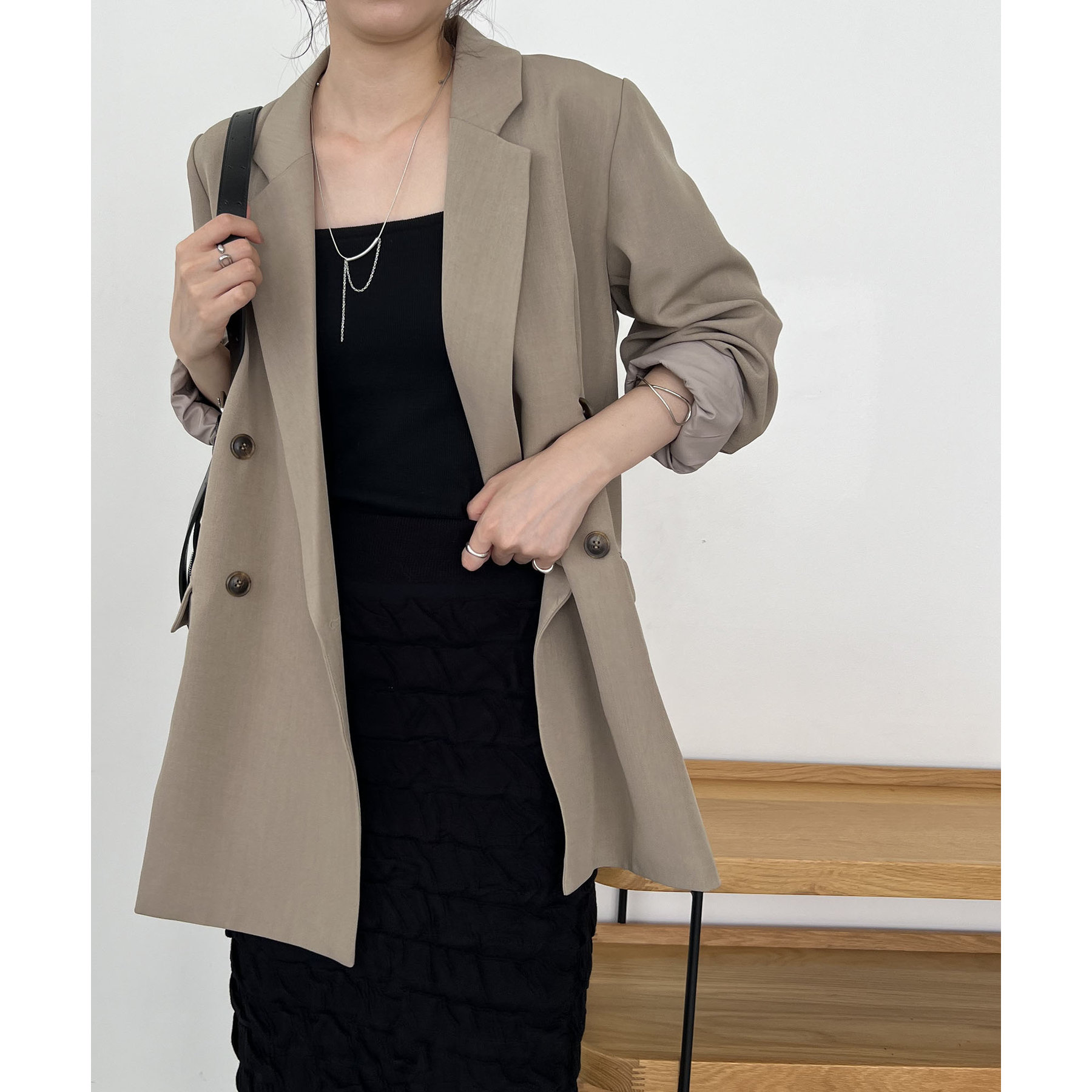 ・ダブルボタンで洗練された大人な印象に