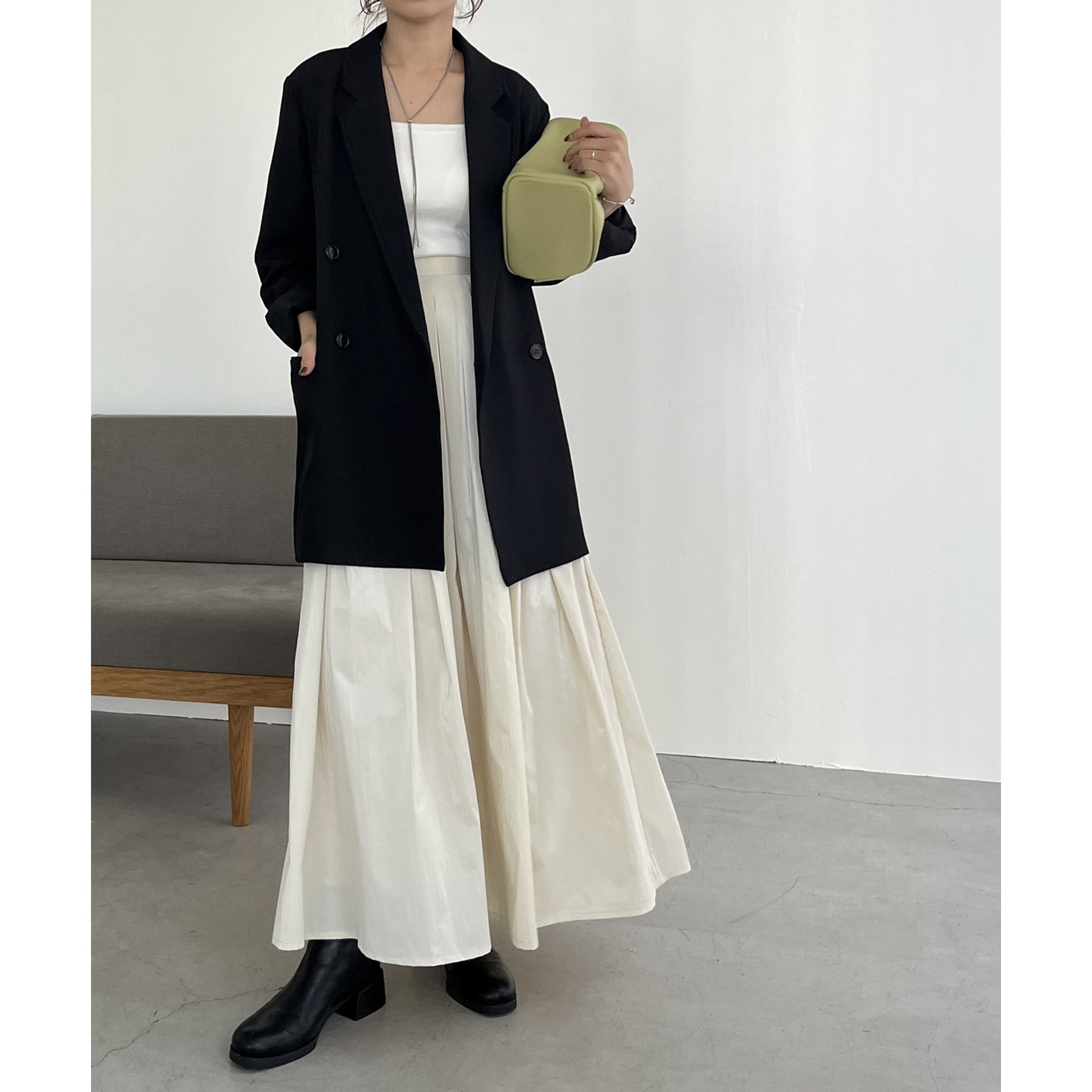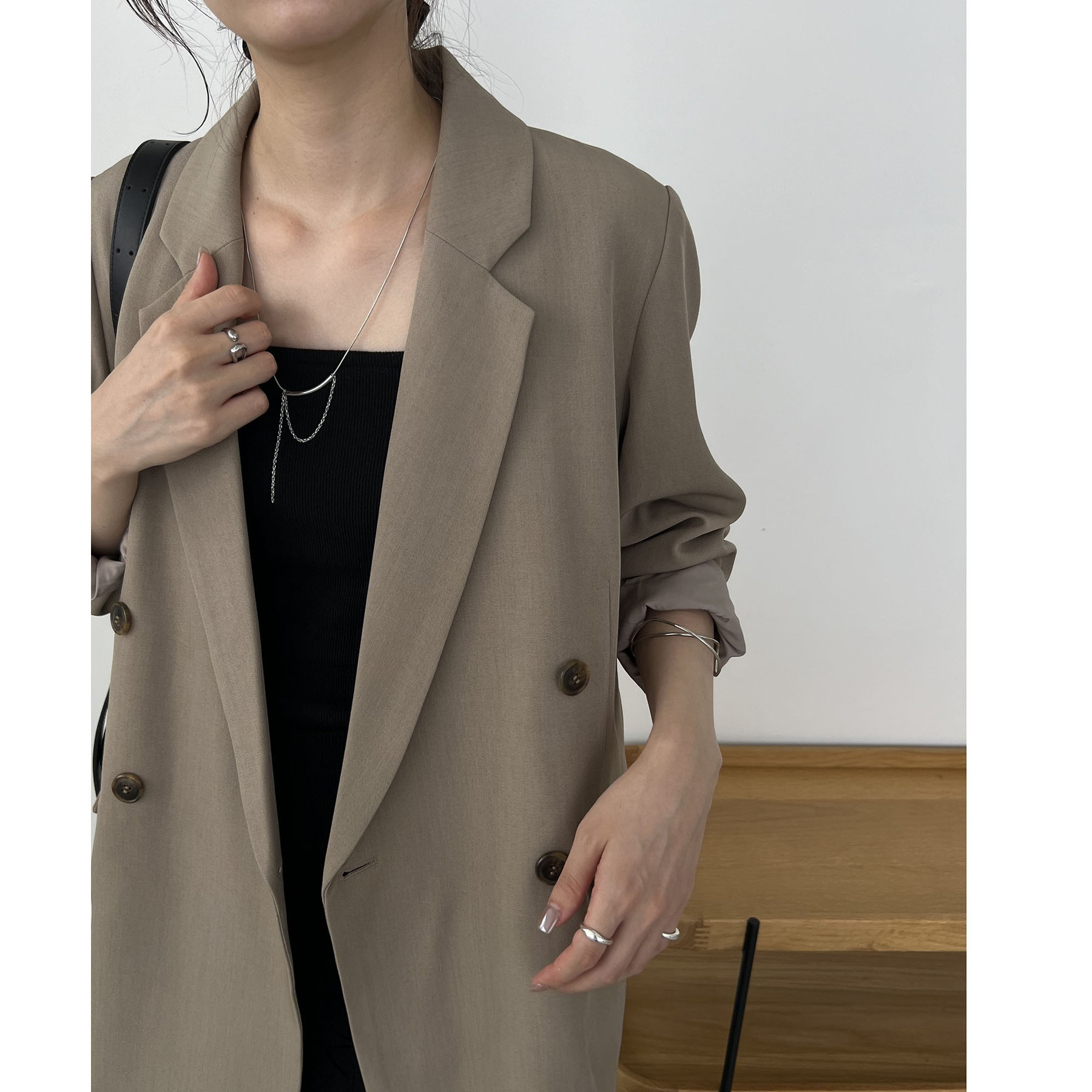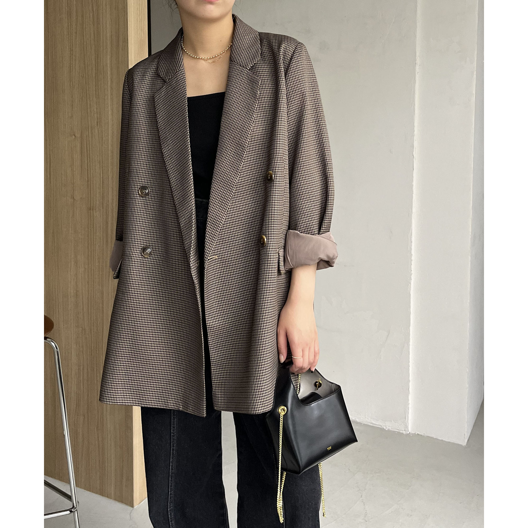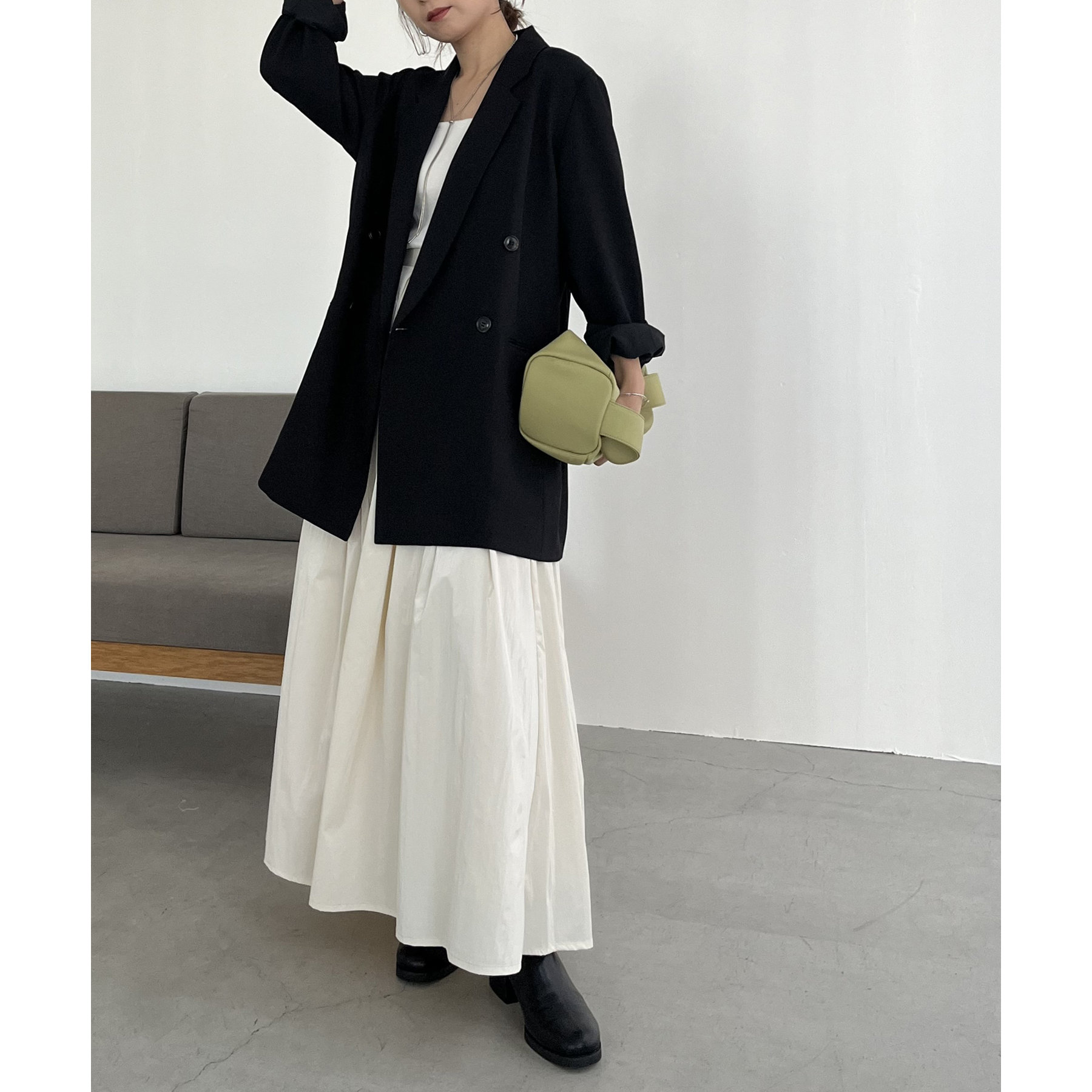 ・ダブルボタンで洗練された大人な印象に