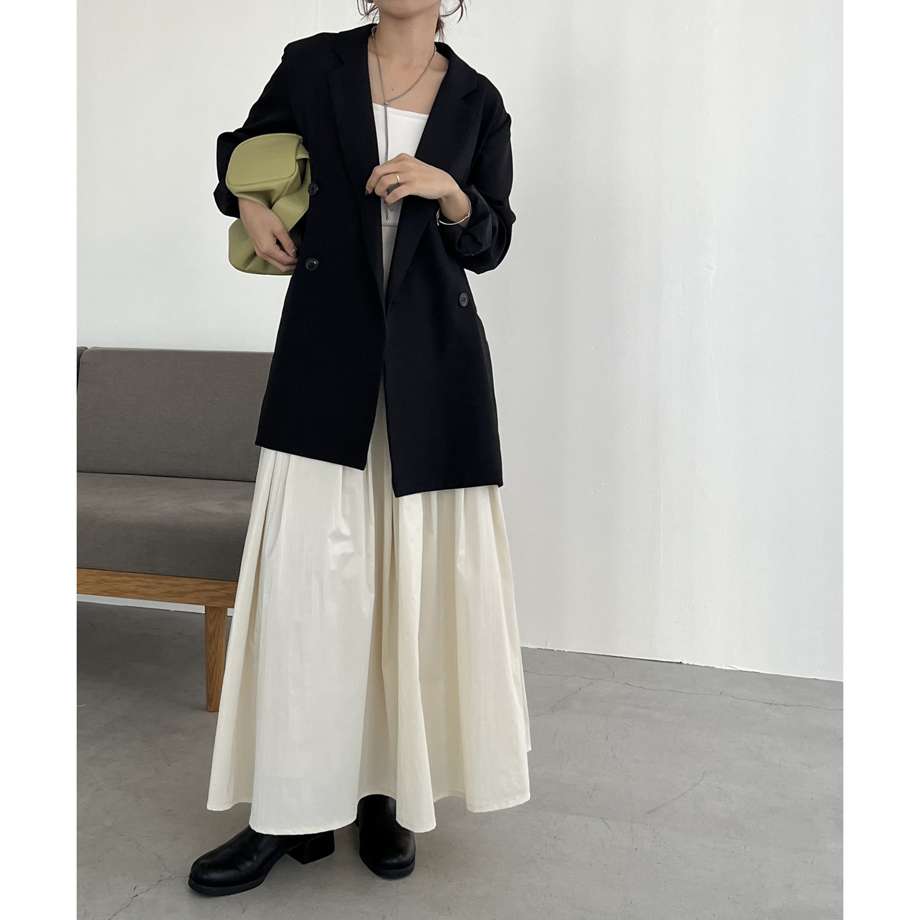 【ブラック着用アイテム①】チンツタックフレアスカート