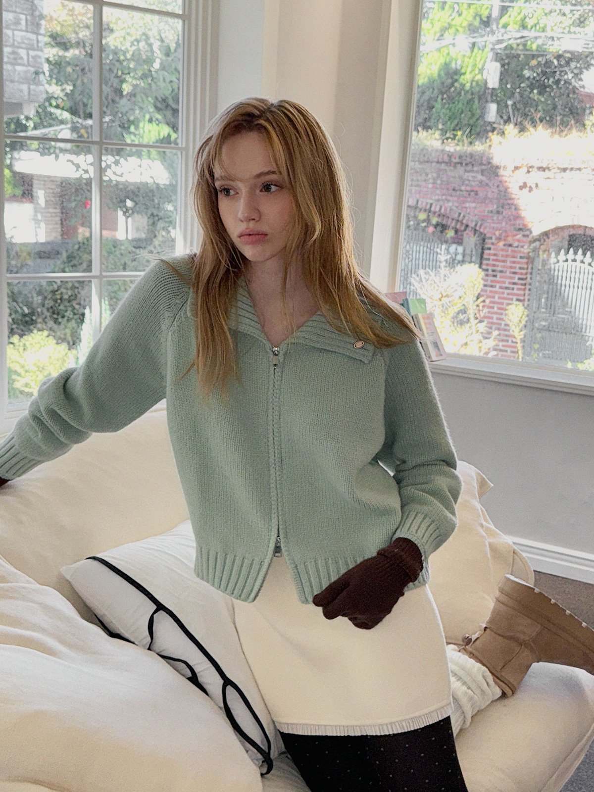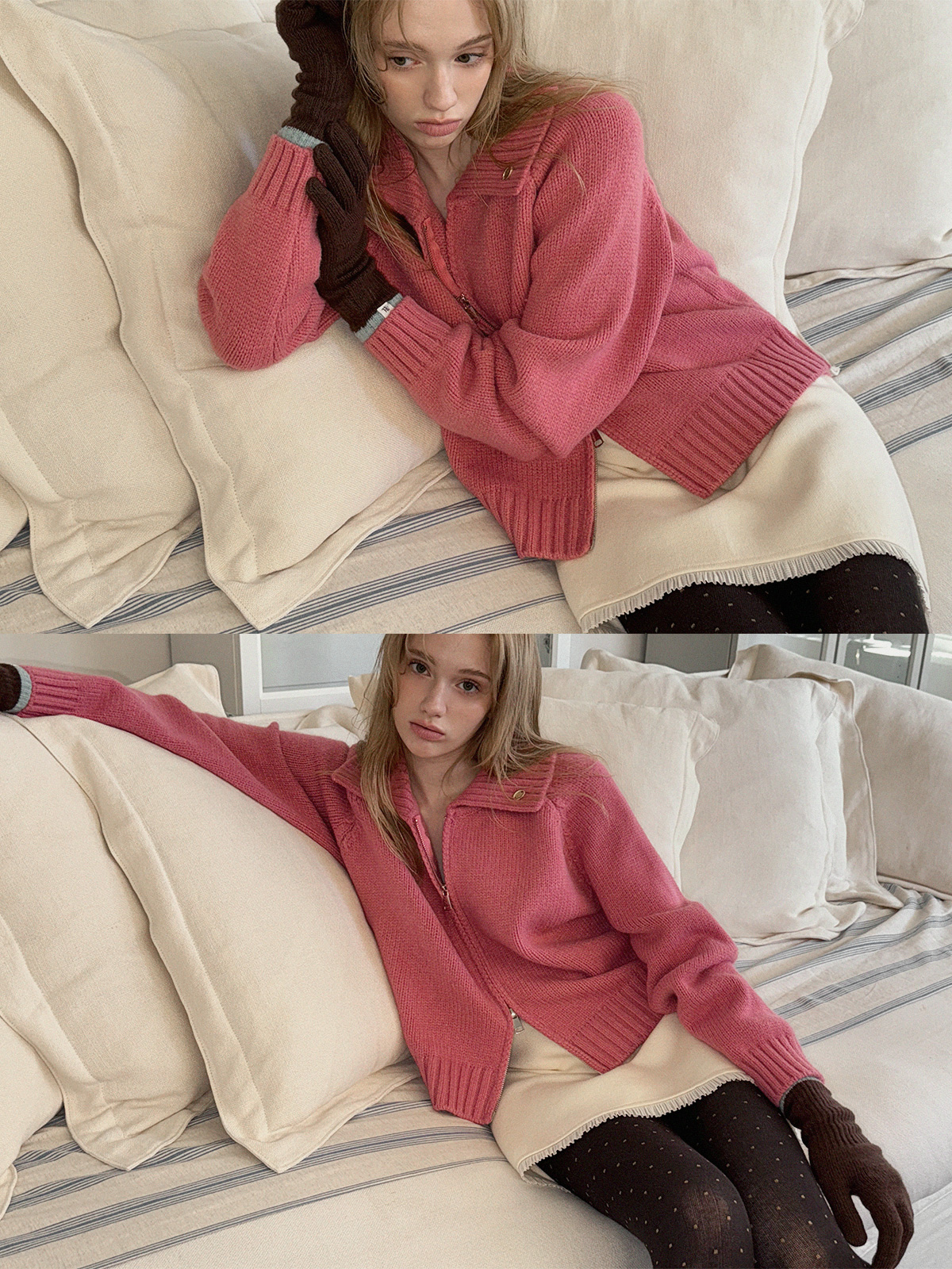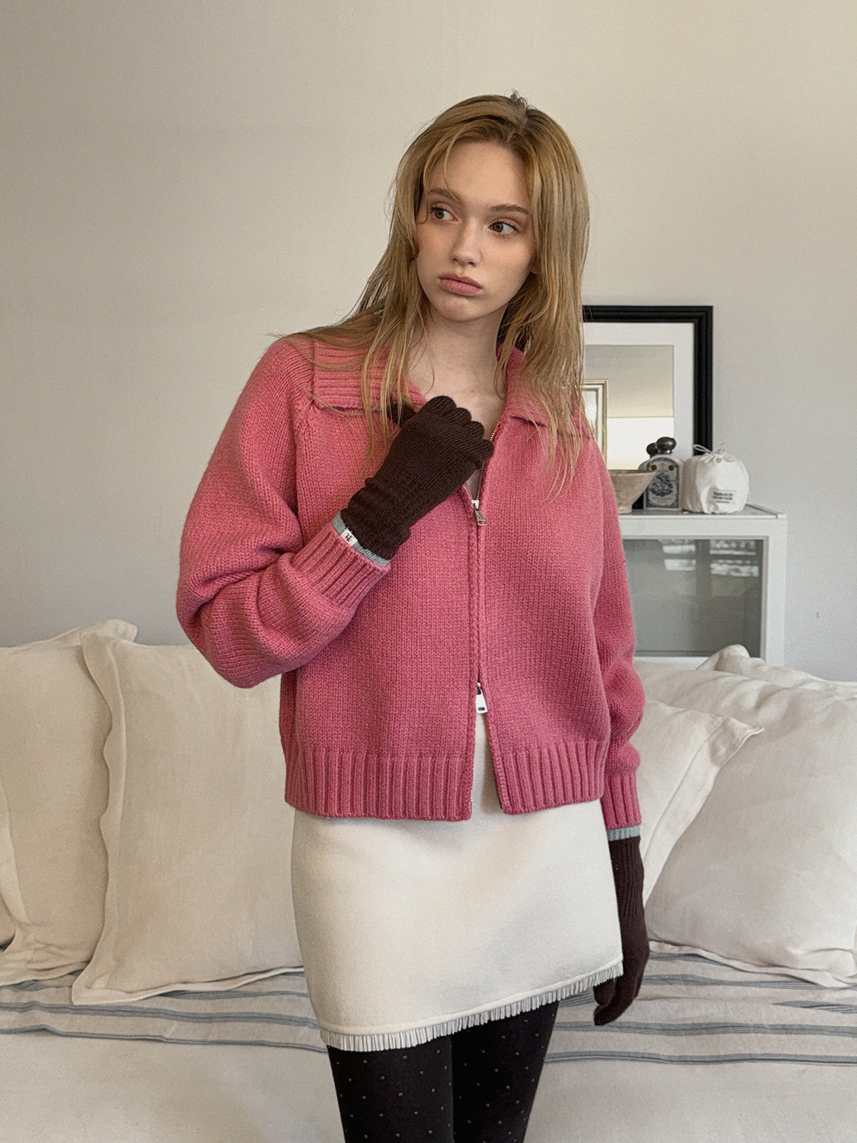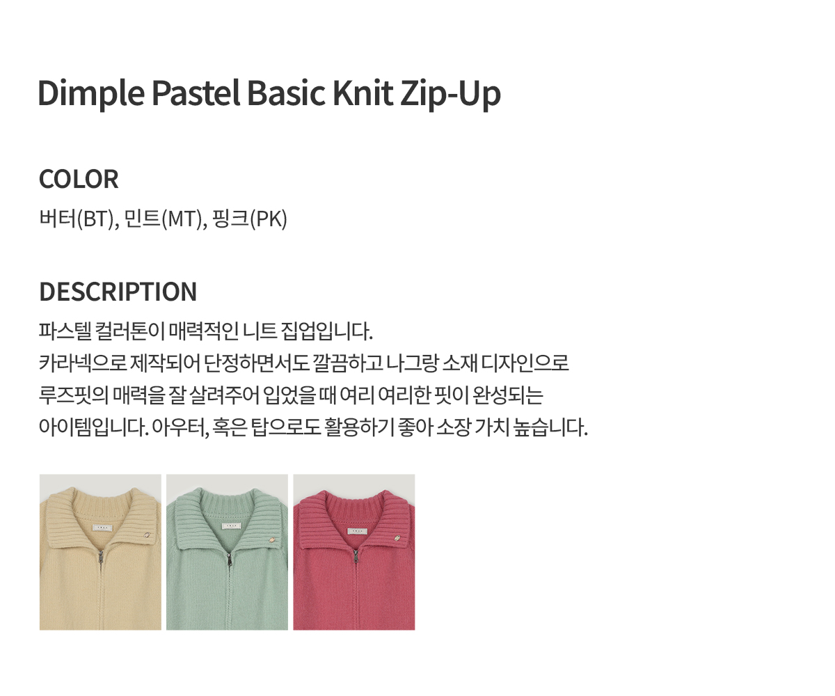 Dimple Pastel Basic Knit Zip-Up