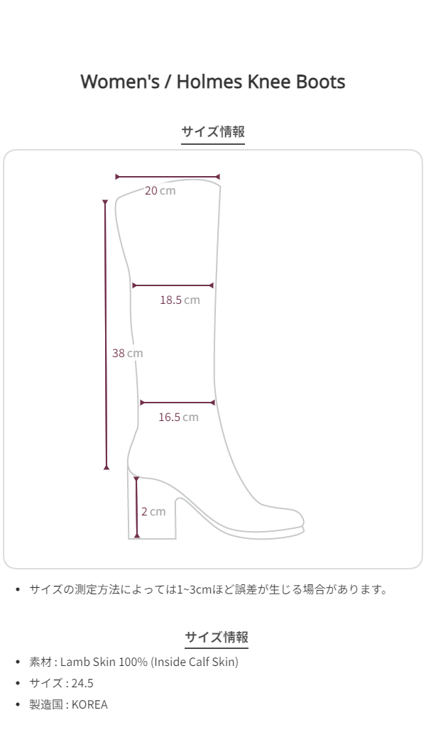 これらはホームズの膝ブーツで、四季を問わず自由で官能的なルックを完成させます。このブーツは、マットブラックの独特なミニマリストな魅力を最大限に活かし、スエードレザーとは異なる無地でモダンなマットブラックカラーで仕上げています。南イタリア産の子牛革で繊細に作られており、しっかりとした柔らかいフィット感を持ち、普通の革よりもシワが少ないため、長期間にわたりクリーンなスタイルを保てます。ラウンドトゥと幅広のデザインがカジュアルな魅力を際立たせています。タイトなブーツではないため、より官能的で快適にスタイリングでき、履き心地も良く、脚のラインも細く見えます。靴底には小さな縁があり、滑らかなシンボルロゴペンダントが入っています。色は黒でマットな質感があり、一見すると非常にモダンなラバーブーツを履いている印象を与えます。黒色でマットな質感を持ち、光や質感がなく、非常にモダンなラバーブーツを履いている印象を与えません。イタリアレザーの優れた品質と、ホームズニーブーツのクラシックでラフなムードをお楽しみください。外側のカーフスキン(イタリア産)内側のカーフスキン快適なウッドアウトソール底部には滑らかな滑らかなロゴペンダントがあります。ホームズニーブーツのリラックスしたフィット感とフィット感を感じたいなら、ワンサイズ上をおすすめします。カーフレザーはマットな光沢としっかりした形を持ち、履くほど自然に感じられます。しわや傷が発生することもあります。本革の性質上、しわ、シミ、わずかな傷、色の違い、グレインマーク、腱、革の内側や仕上げの剥がれ、粉末、汚染に見えるわずかなシミなどがあります。汚染や中耳炎のリスクがあるため、湿気(目や雨に注意)を注意して大切に扱う必要があります。製品の性質上、靴のかかとやアウトソールに傷やシミがつくことがあるため、*1:1 この製品は注文ごとに商品をキャンセル・交換・返品・返金できません。カスタム生産期間は10〜14営業日かかります