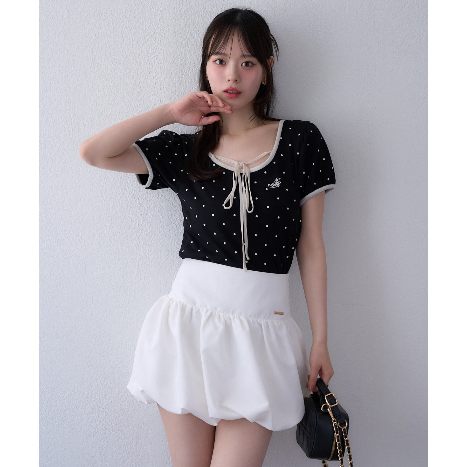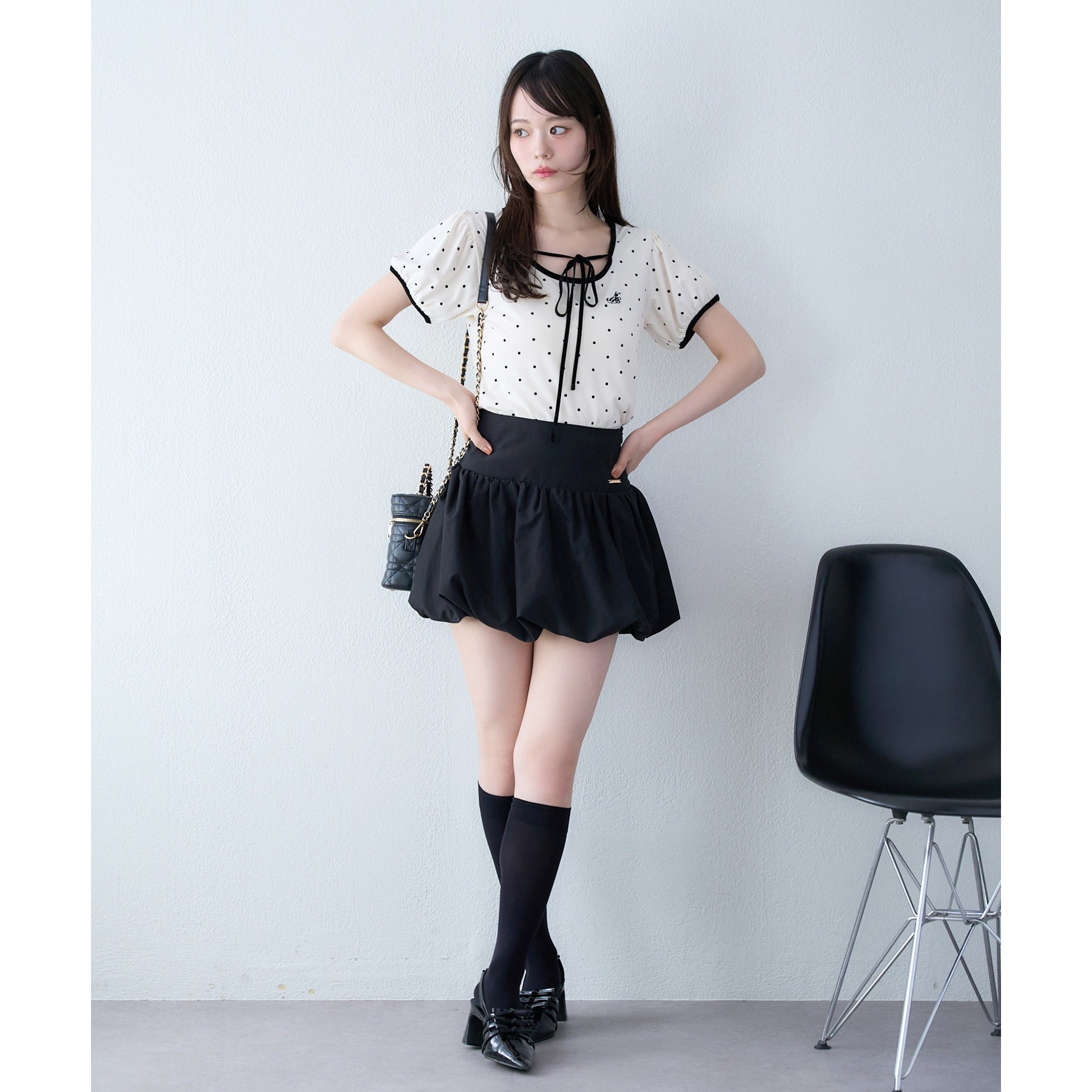 パフスリーブのシルエットが女の子らしさを引き立て、フェミニンな印象に仕上がります。