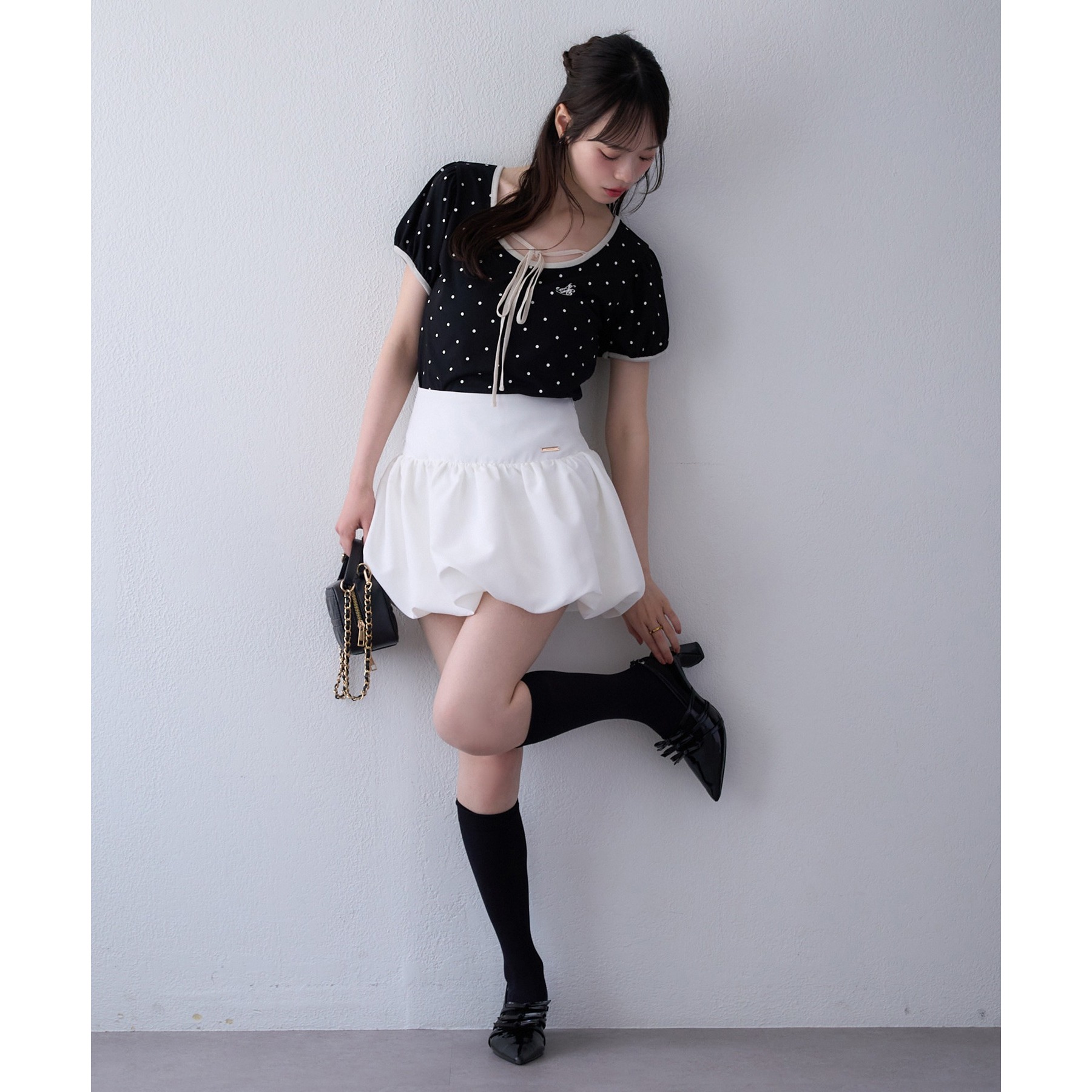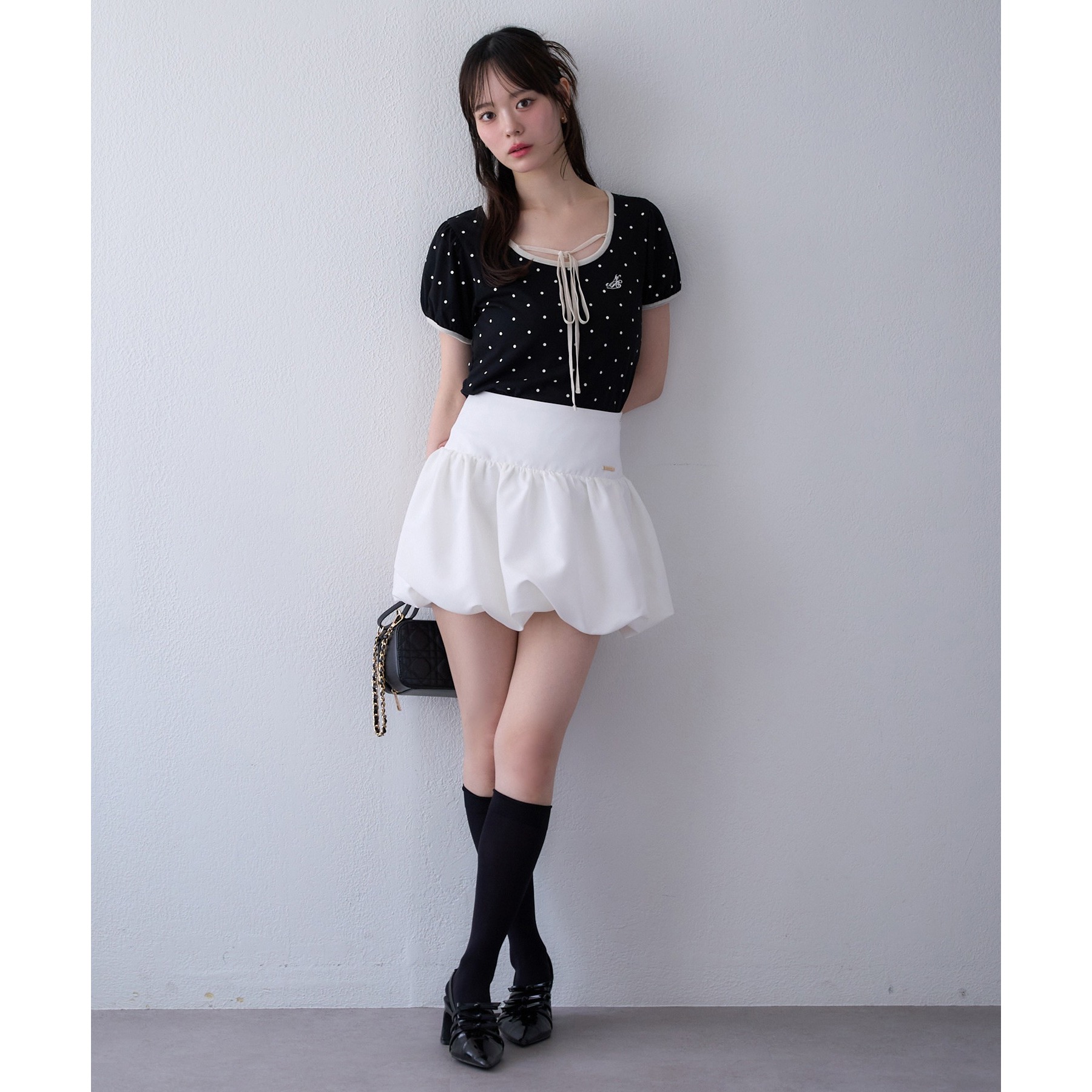 ボリュームのあるスカートと合わせて甘めにまとめるのもおすすめ。