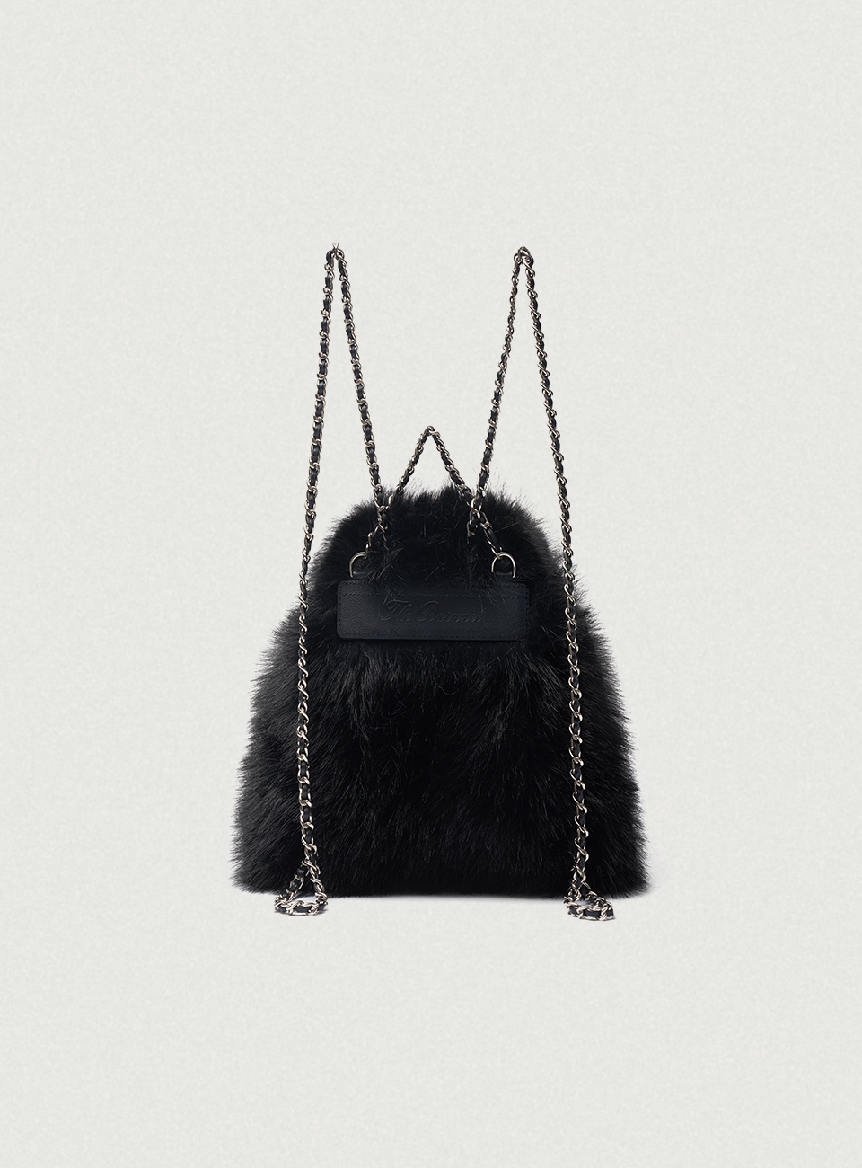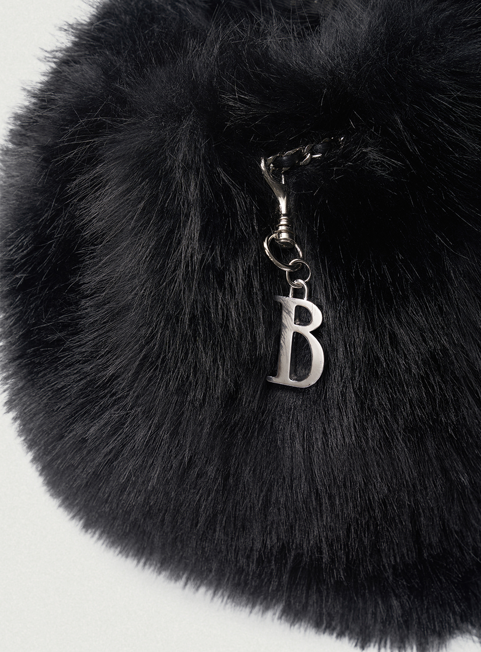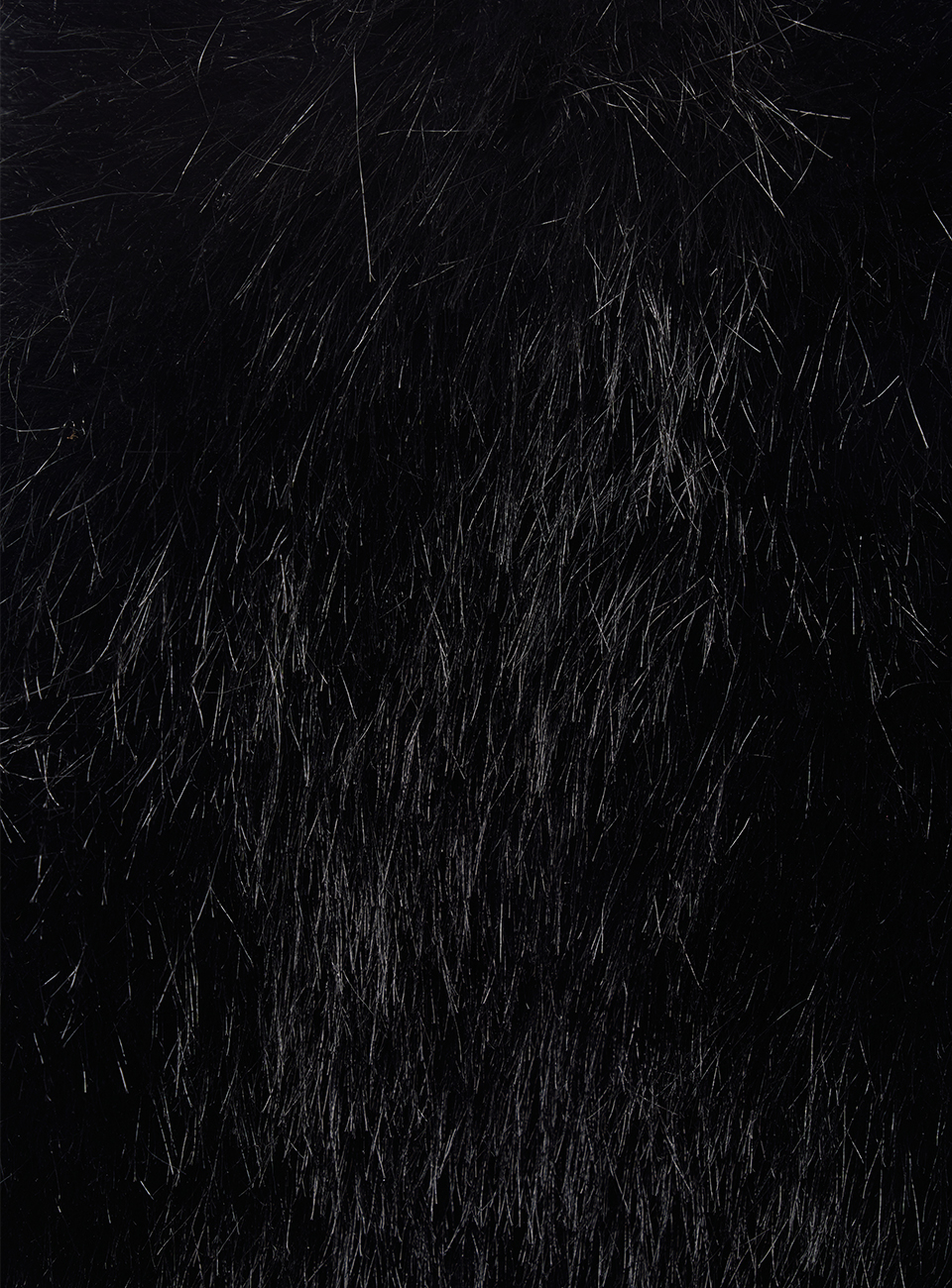 ブラックカラーで、柔らかくヘアリーな質感が特徴のポリエステルパー。