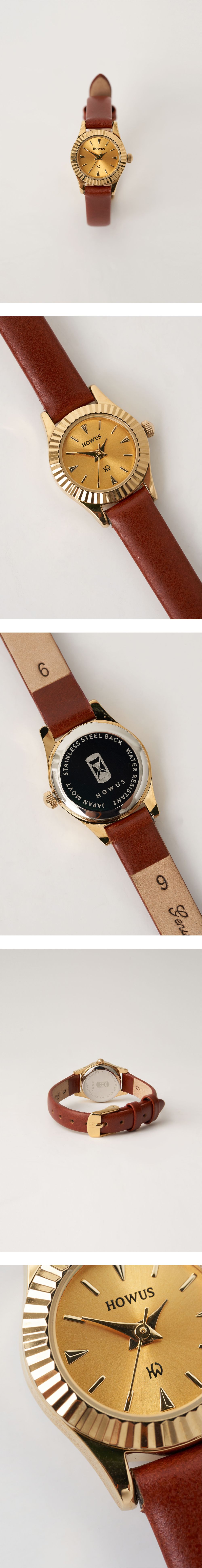 ストラップ、ダイヤル、ケース、スチールバックに至るまで、すべての要素をHOWUSならではのディテールで解釈した時計として、過度な装飾はできる限りそぎ落としつつ、温かみのあるカラーのストラップでヴィンテージかつクラシックなムードをプラスしました。