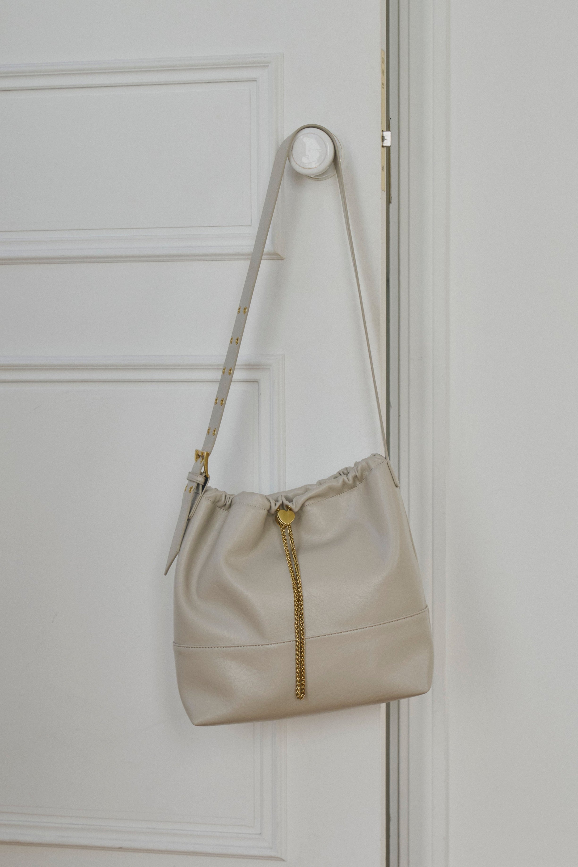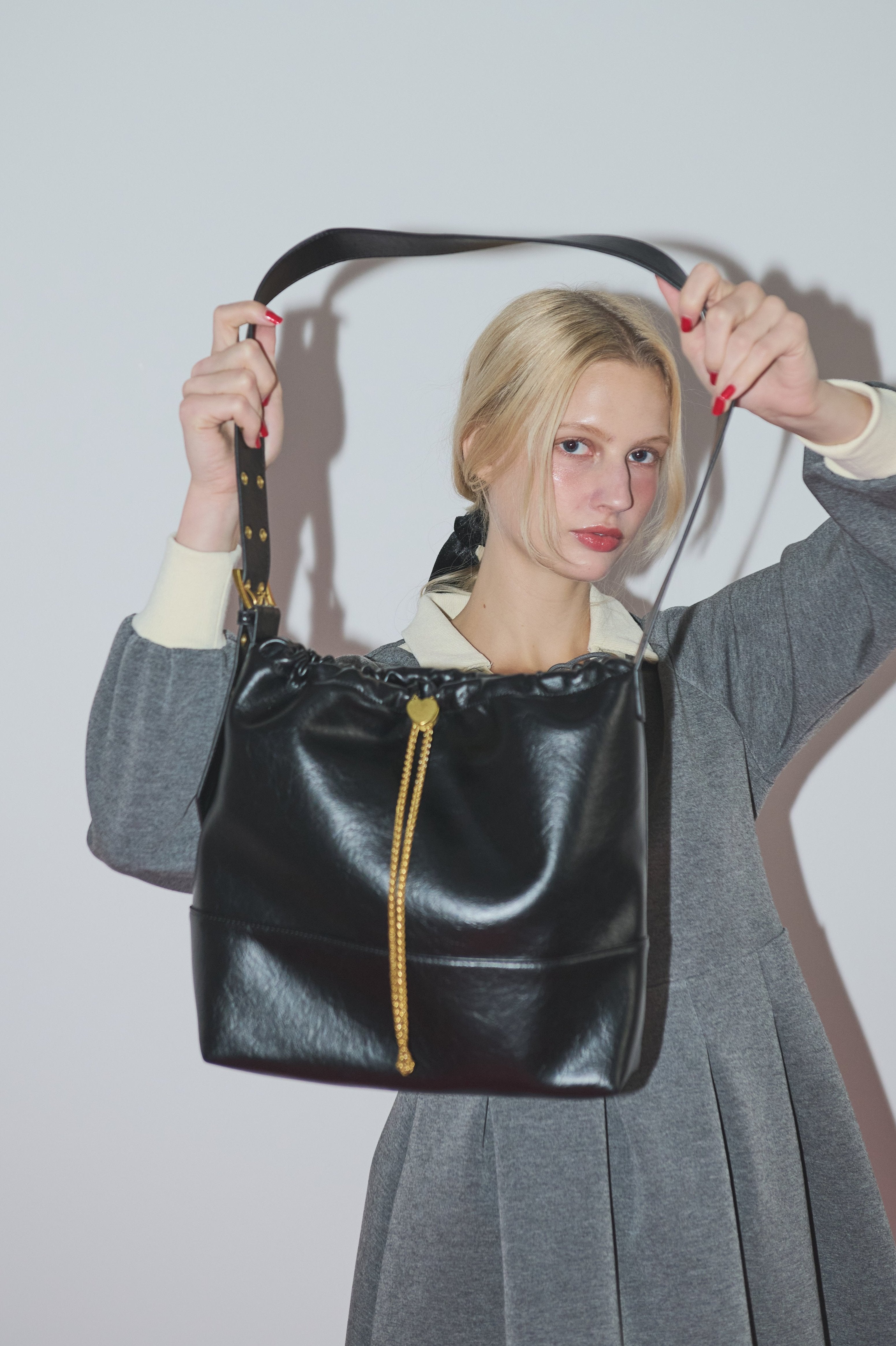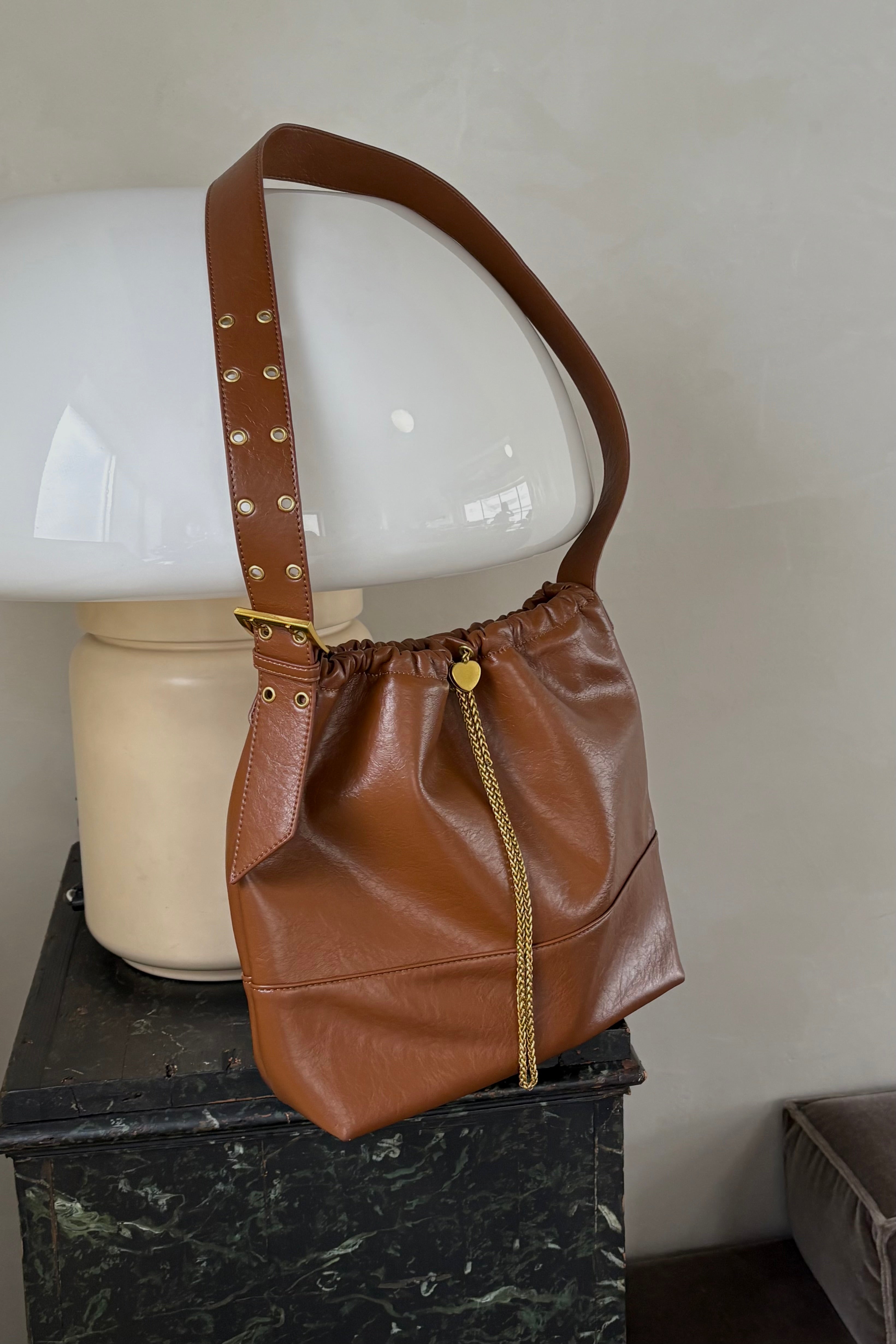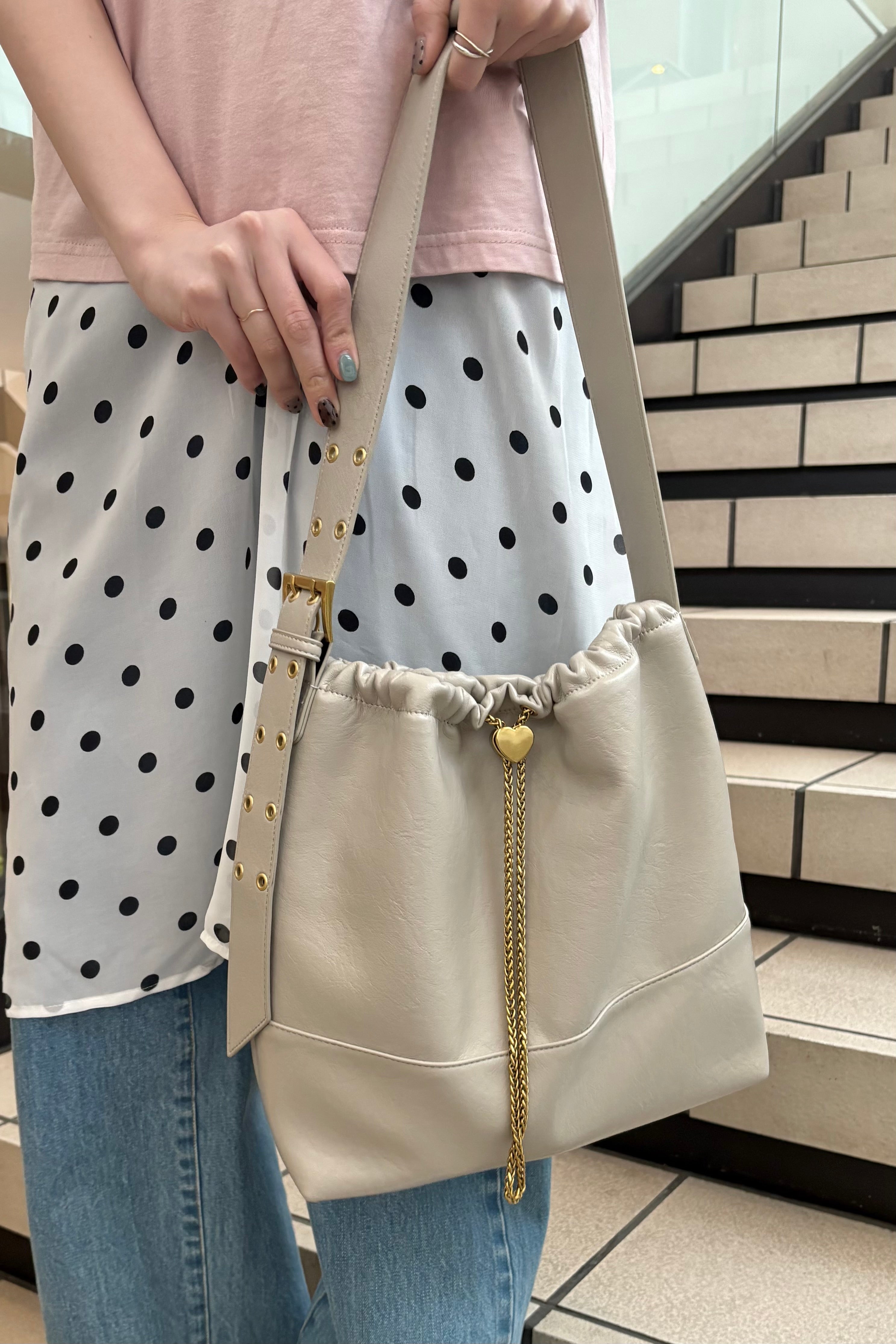 ハート型のドロストストッパーがポイントのショルダーバッグ