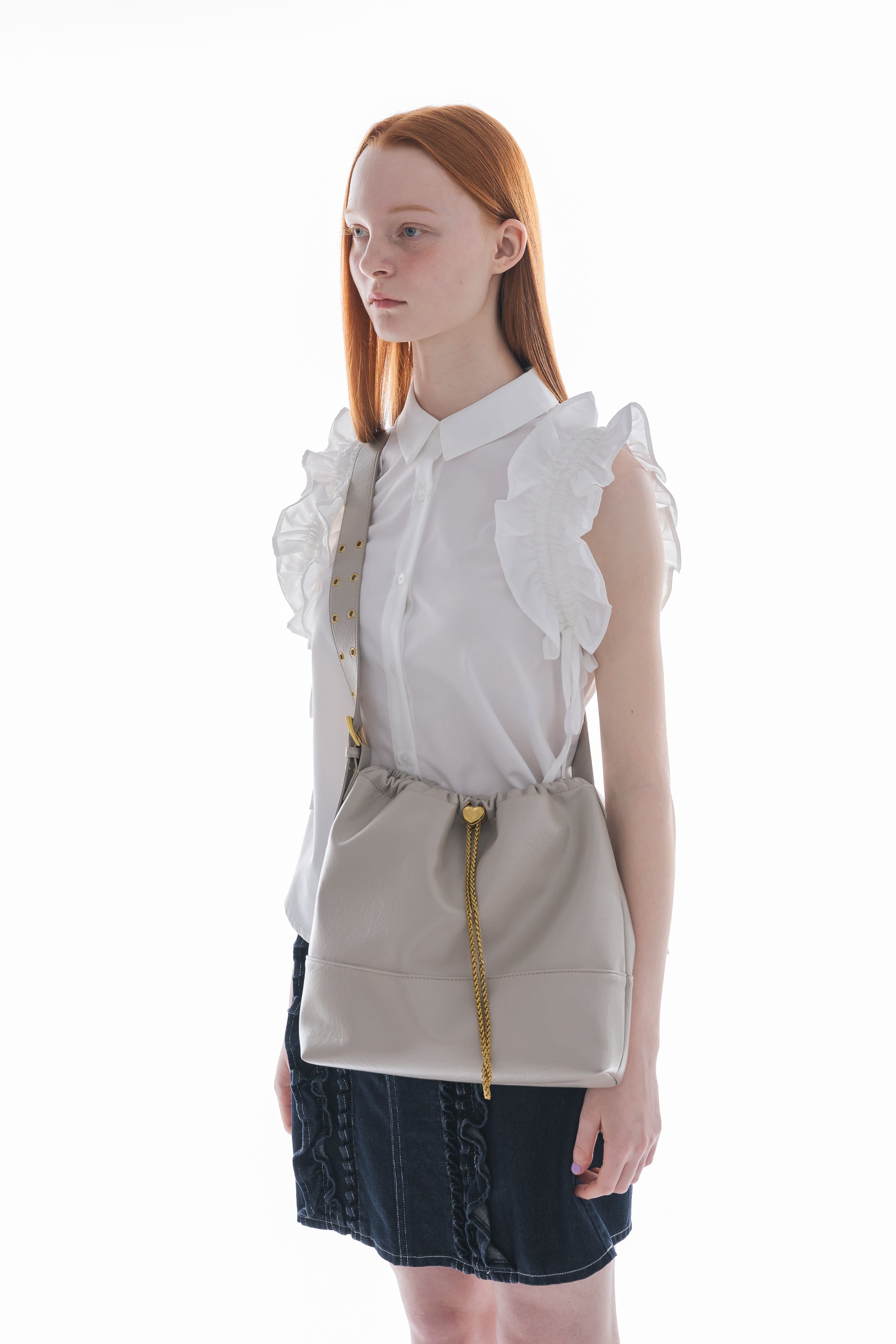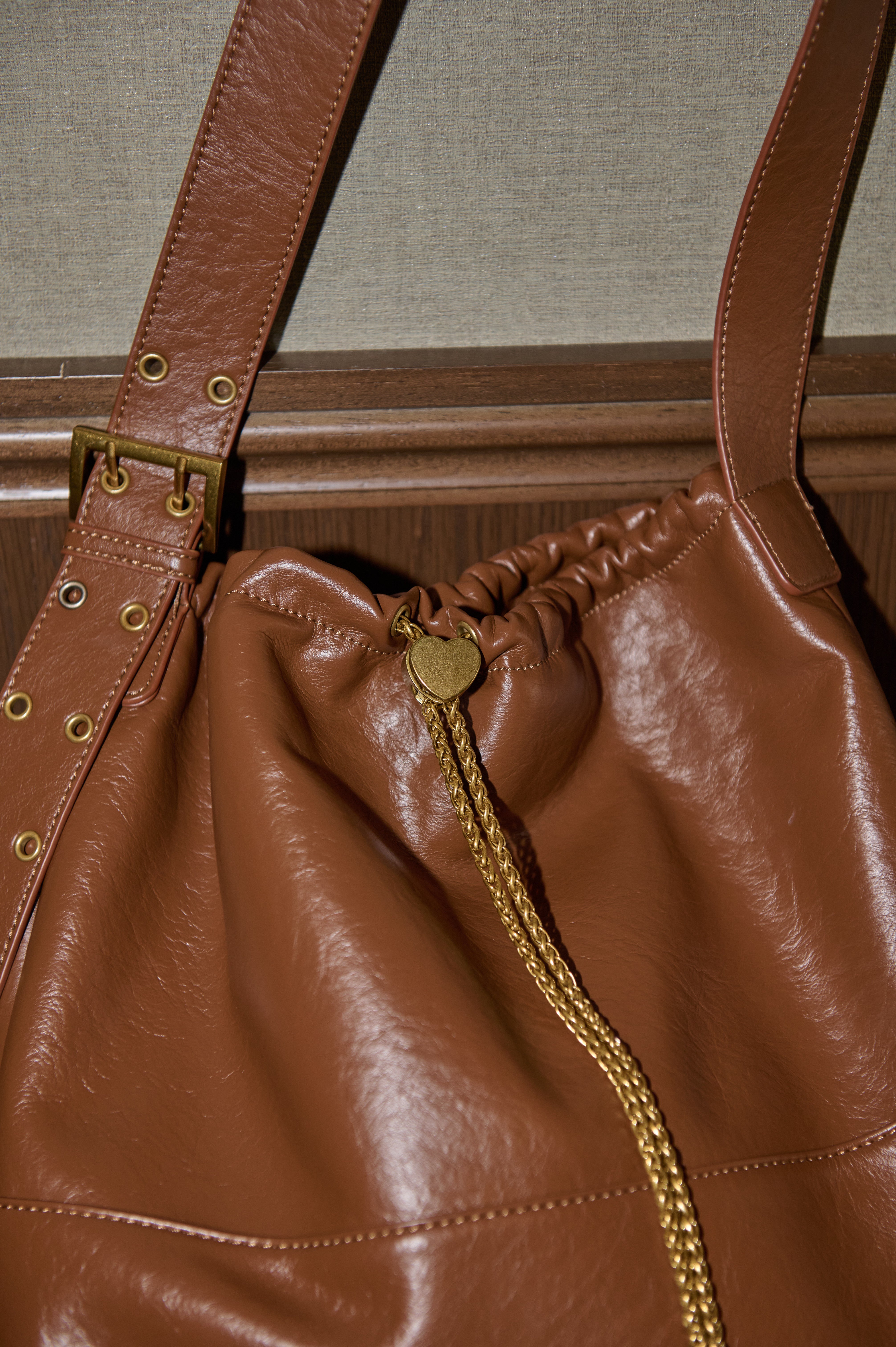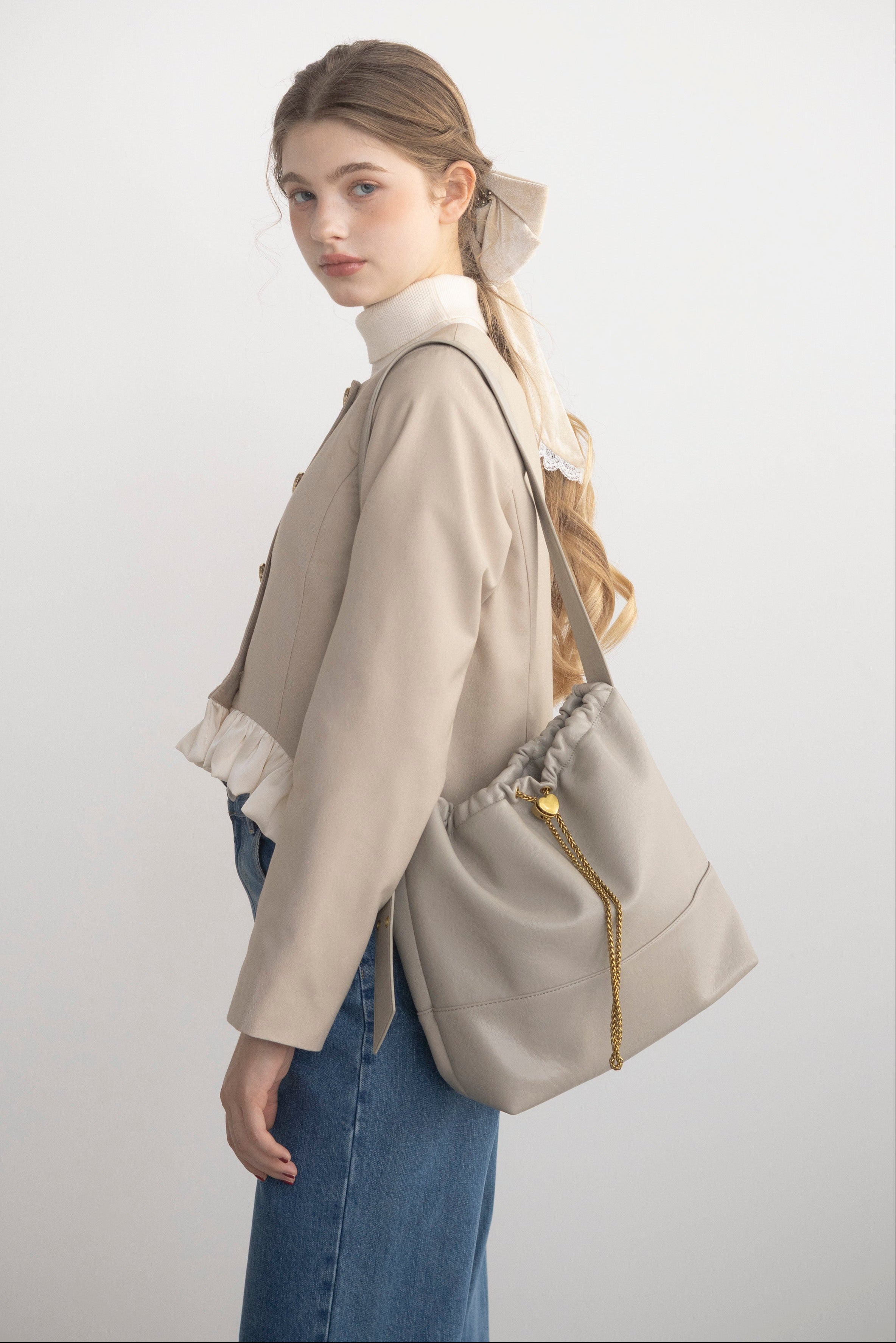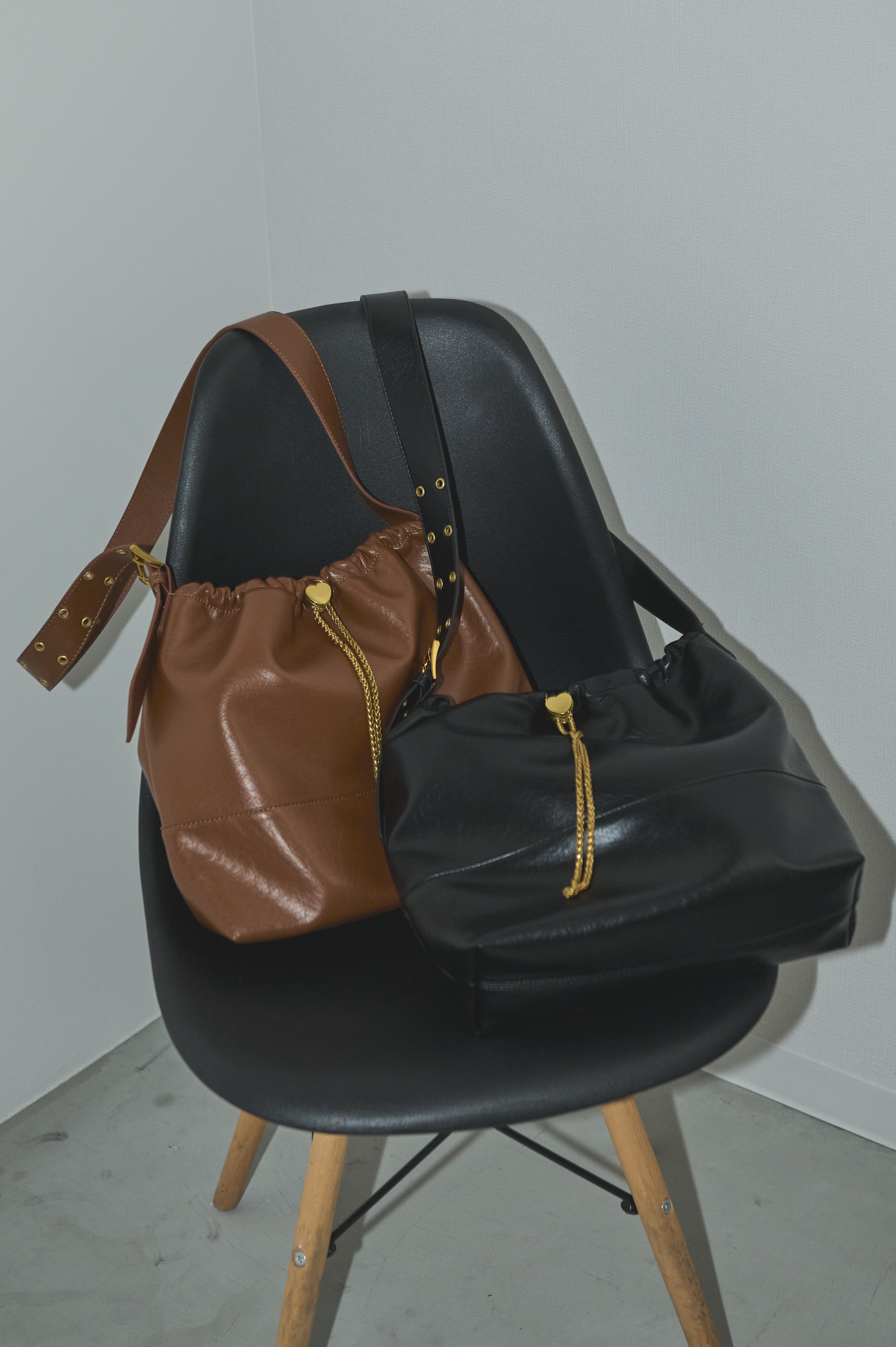 ハート型のドロストストッパーがポイントのショルダーバッグ