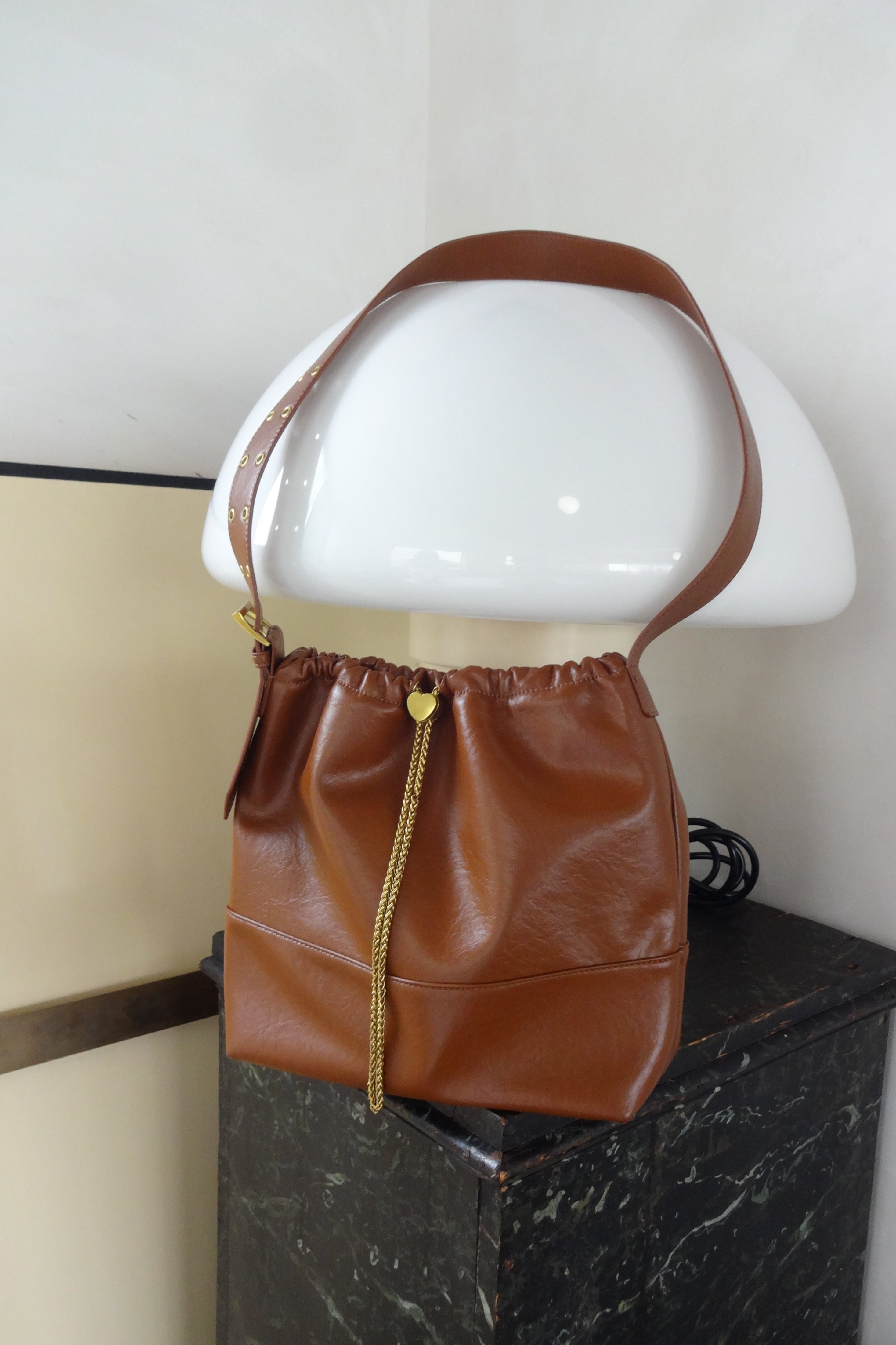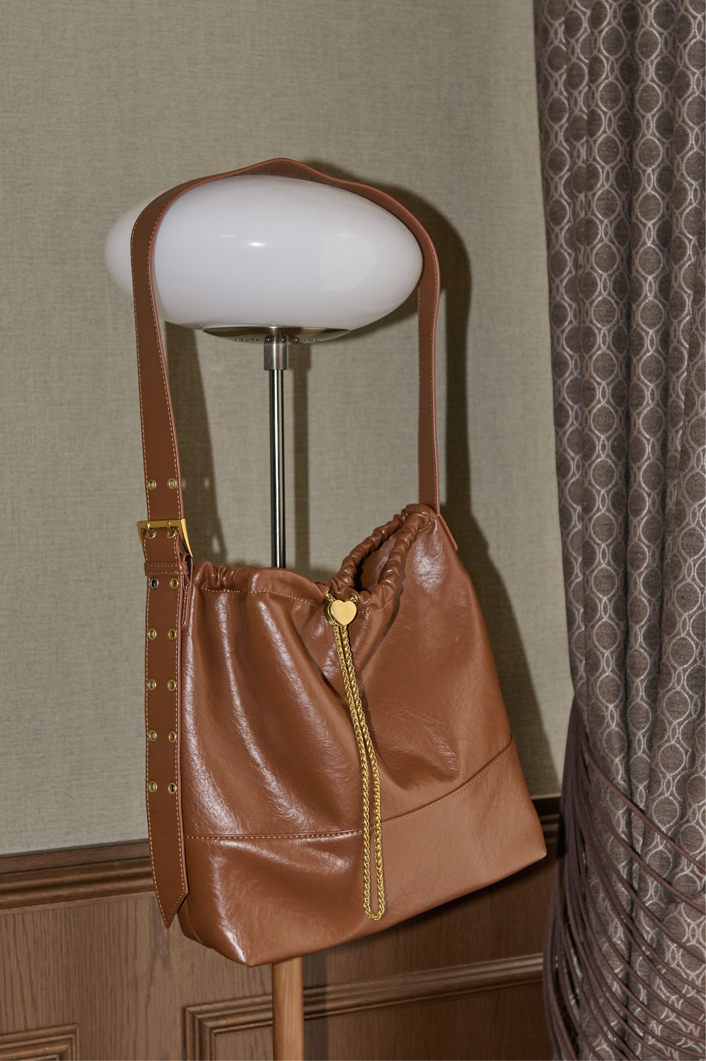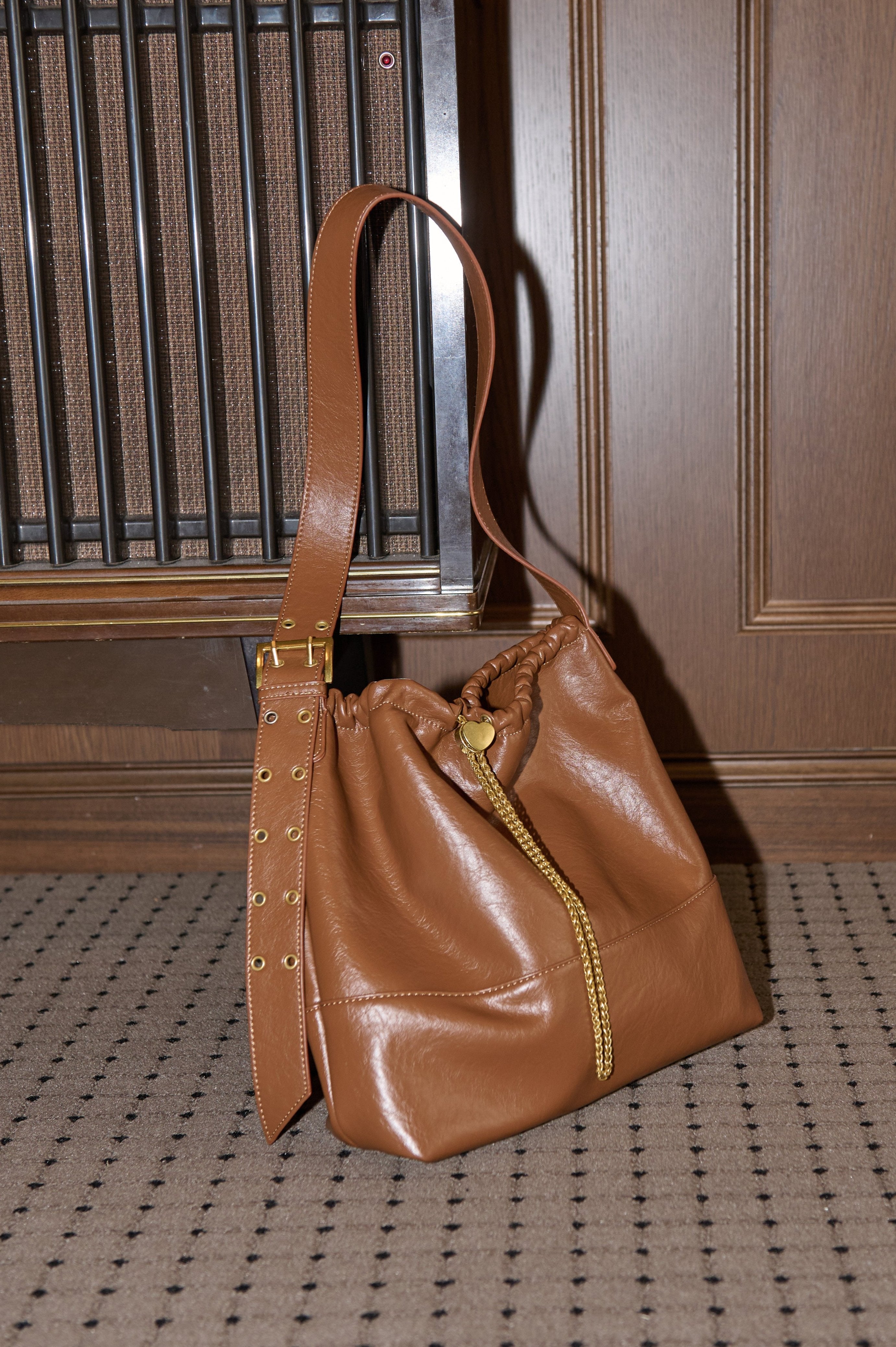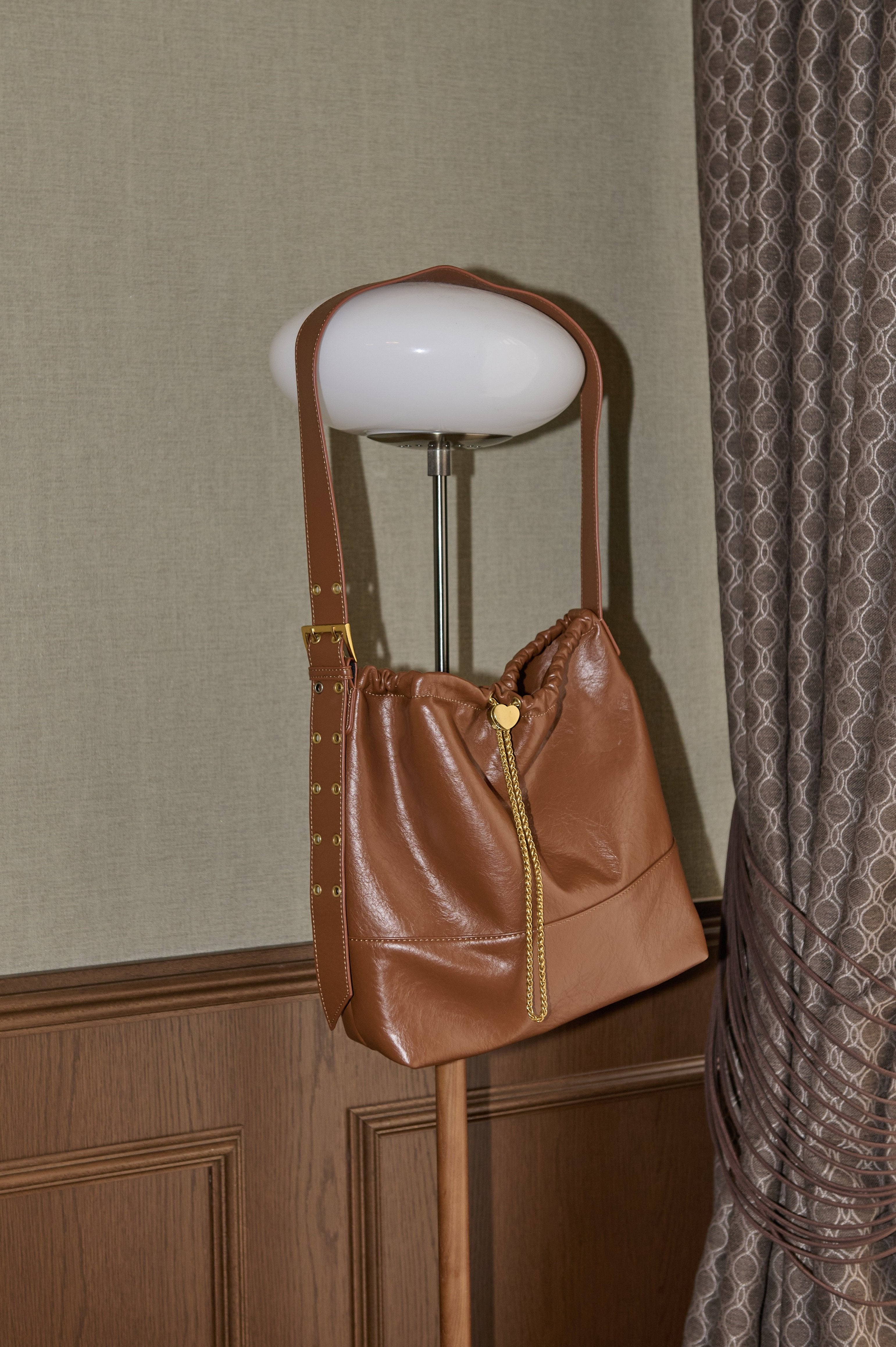ハート型のドロストストッパーがポイントのショルダーバッグ