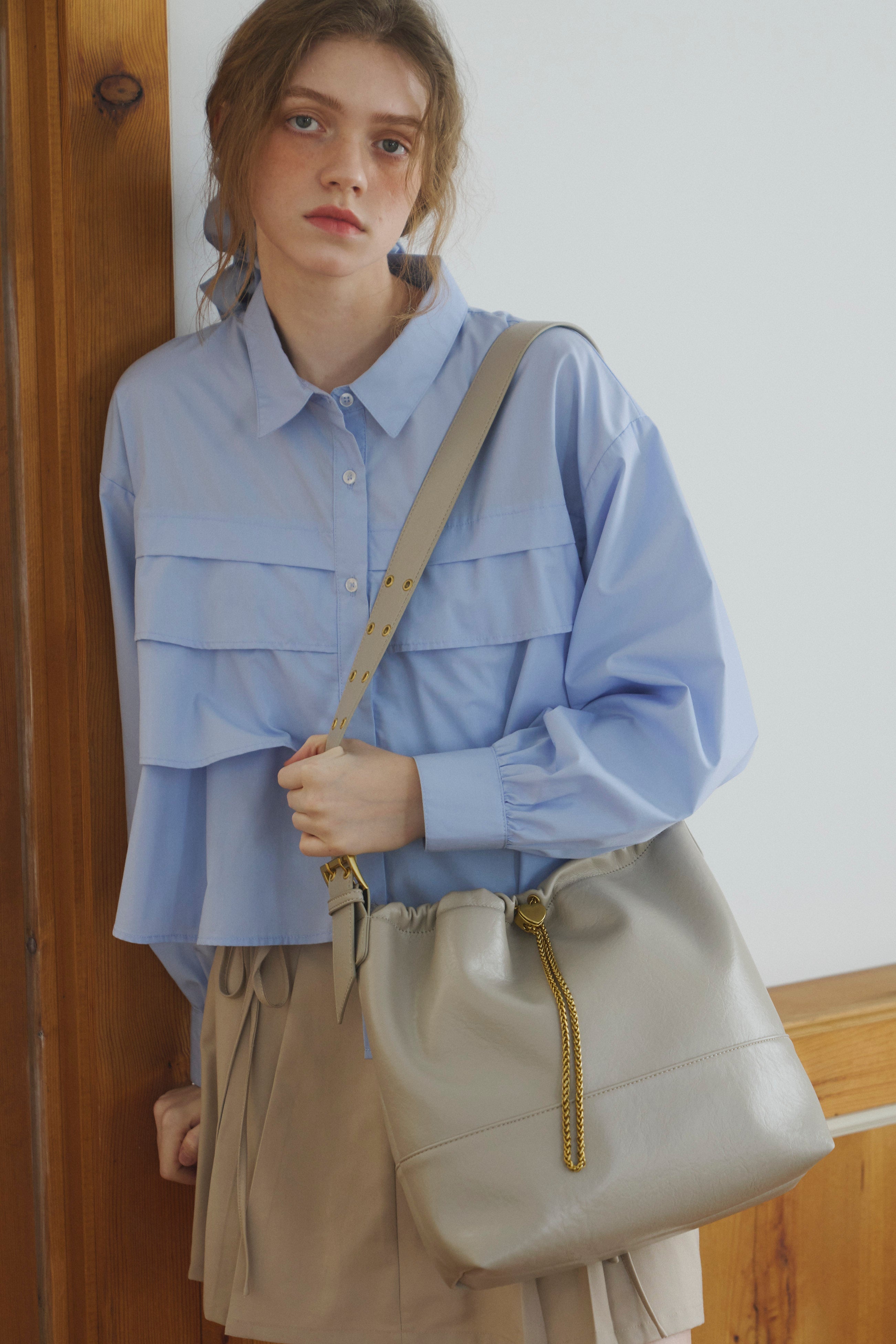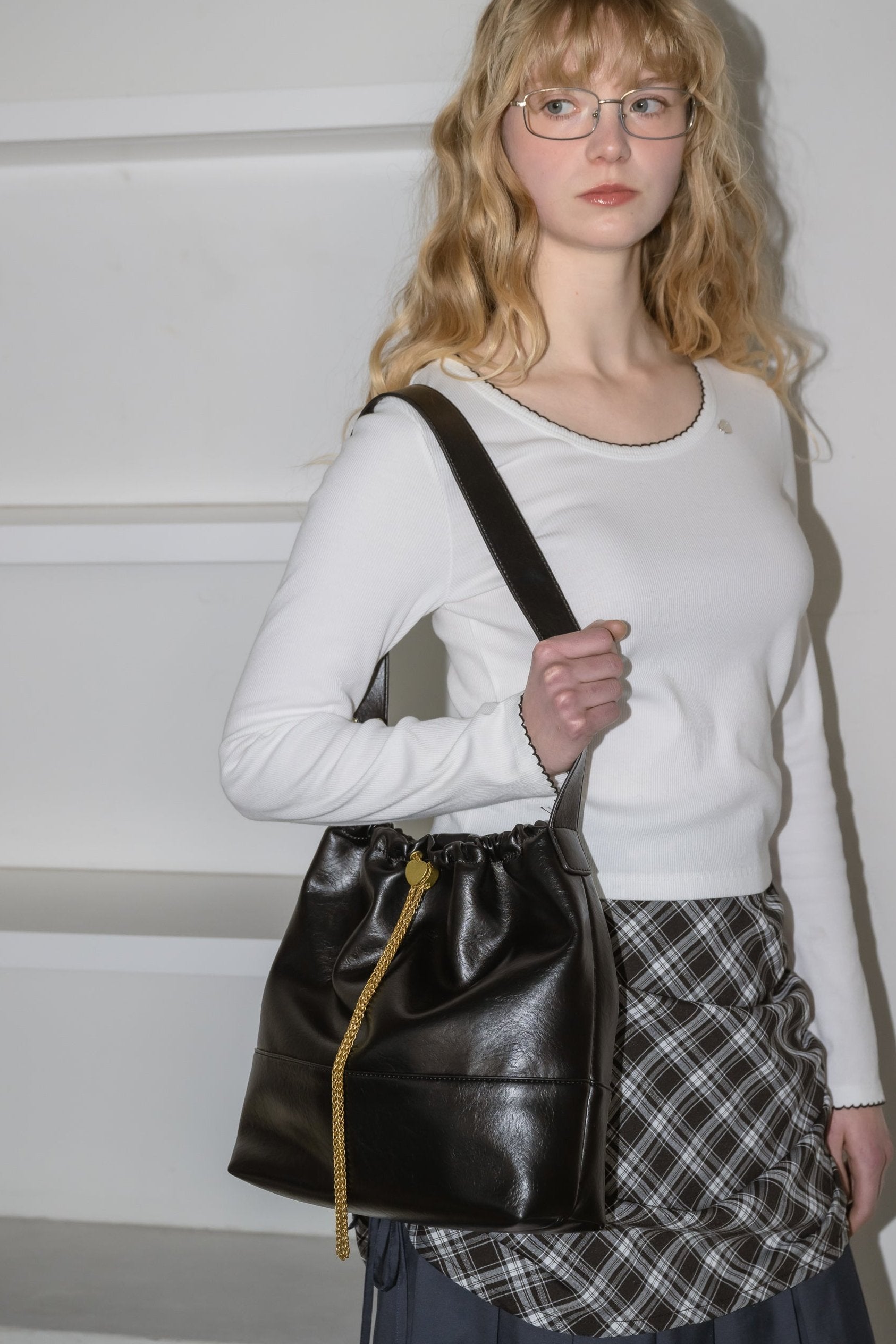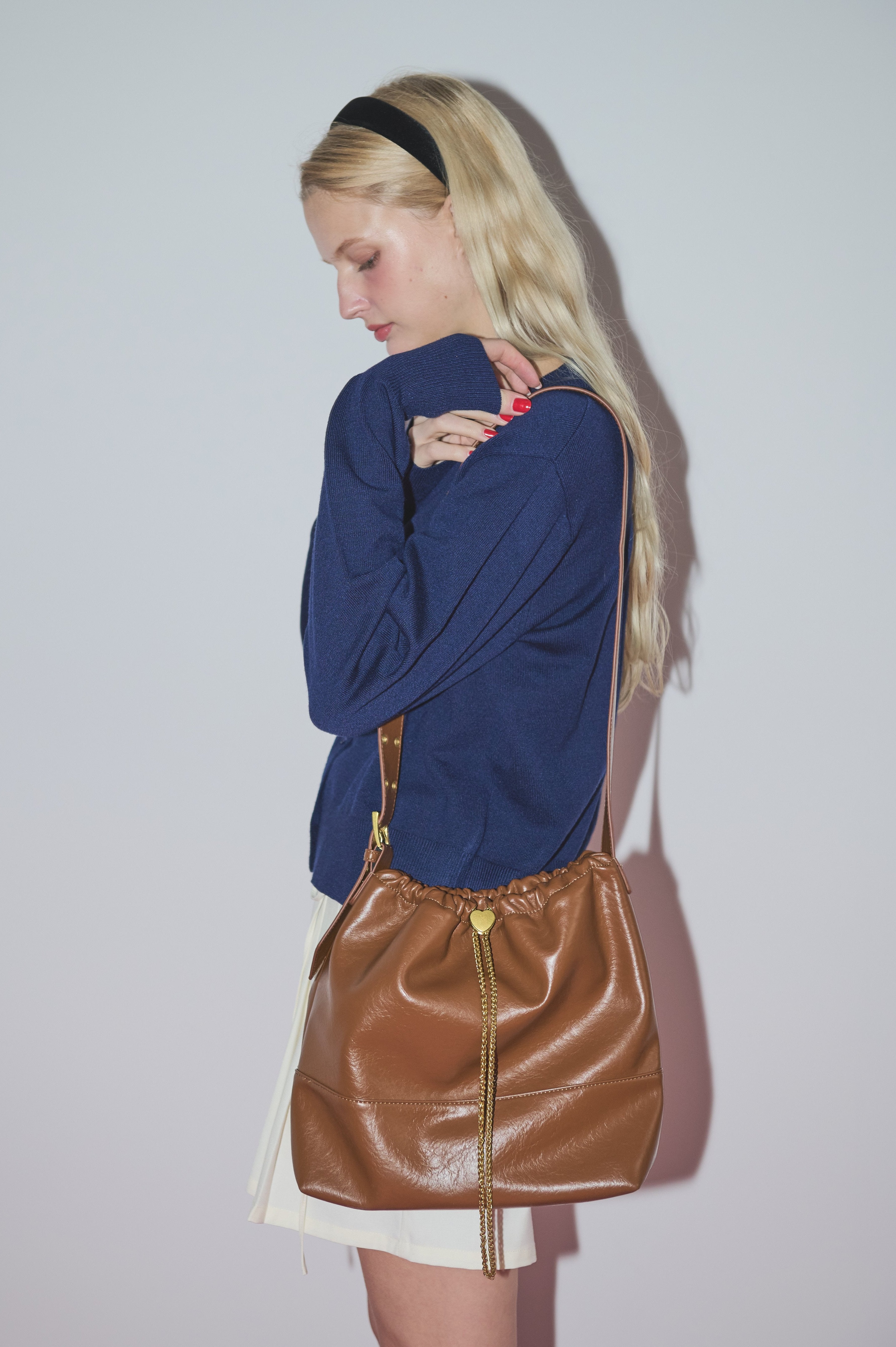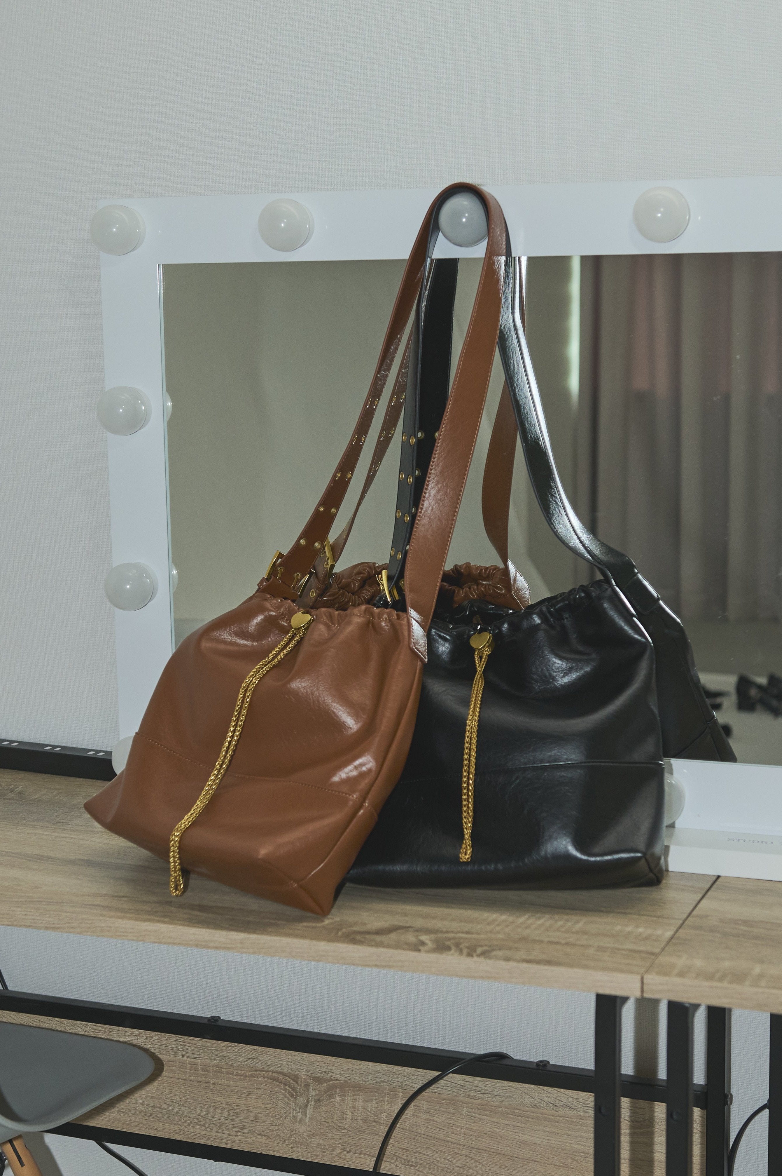 ハート型のドロストストッパーがポイントのショルダーバッグ