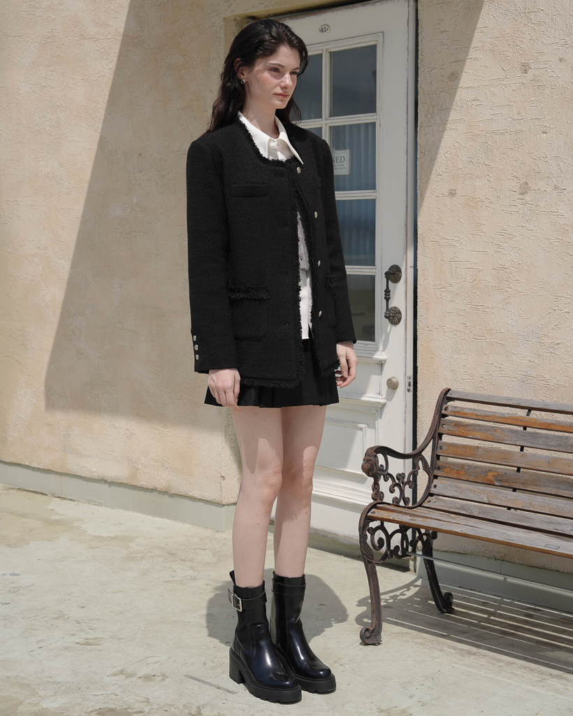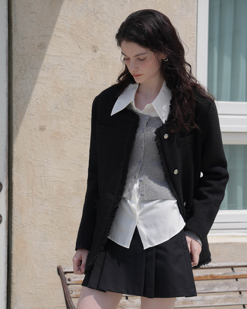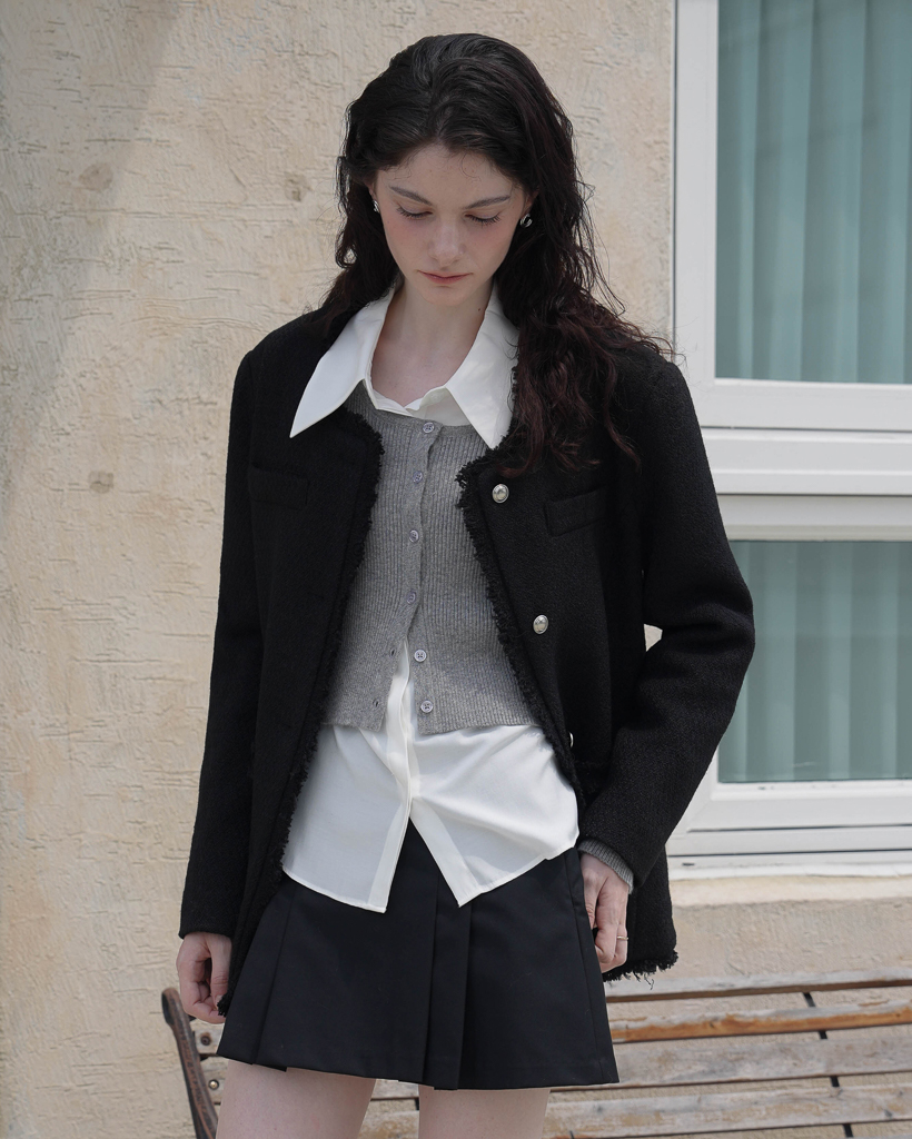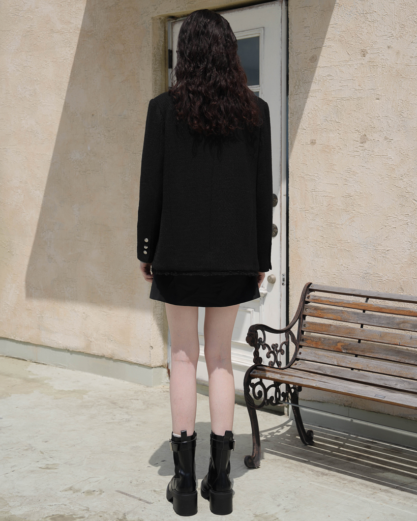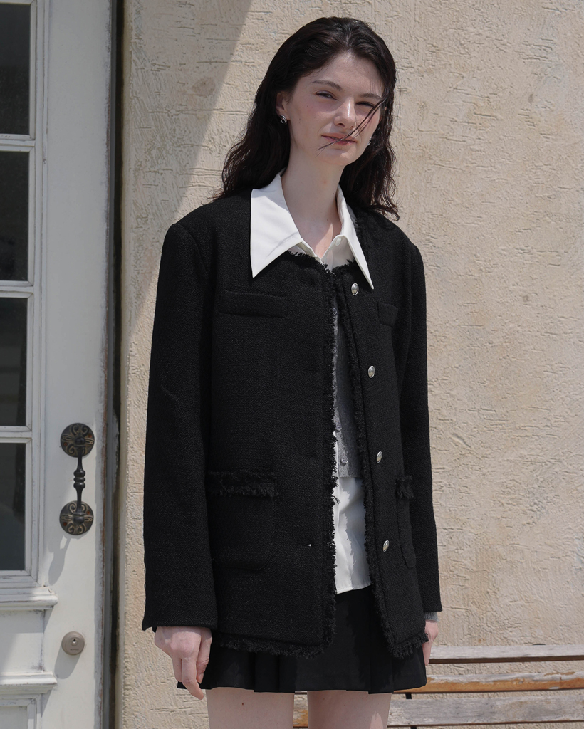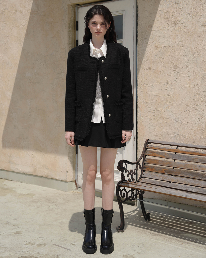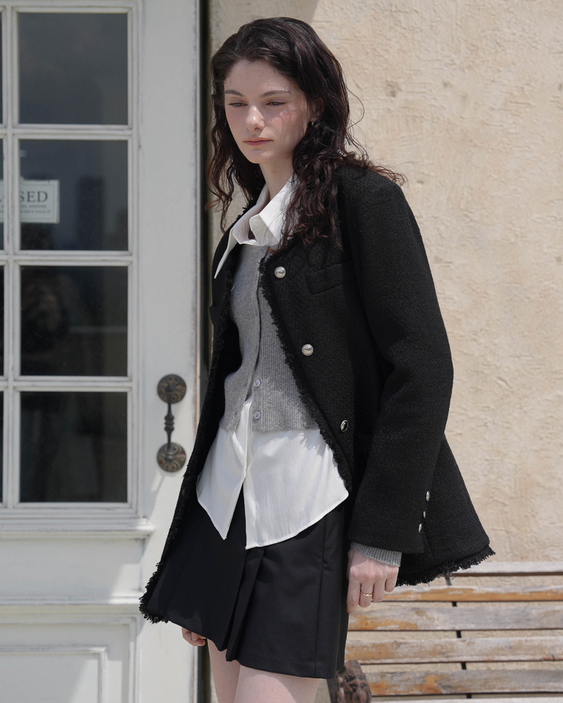 Fringe Tweed Half Jacket [Black]