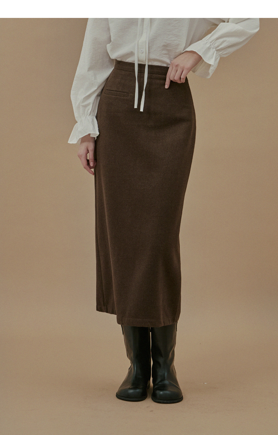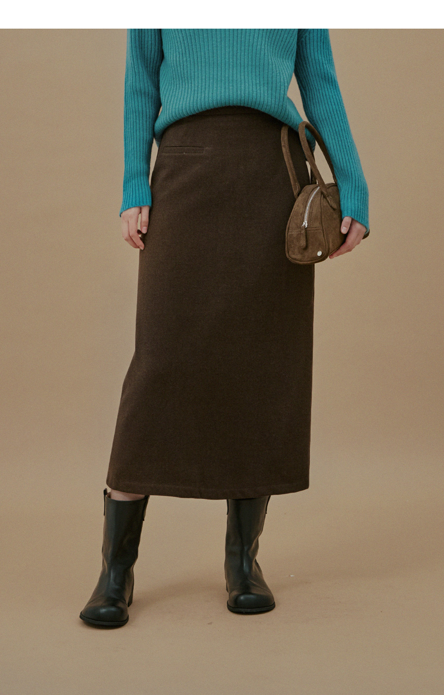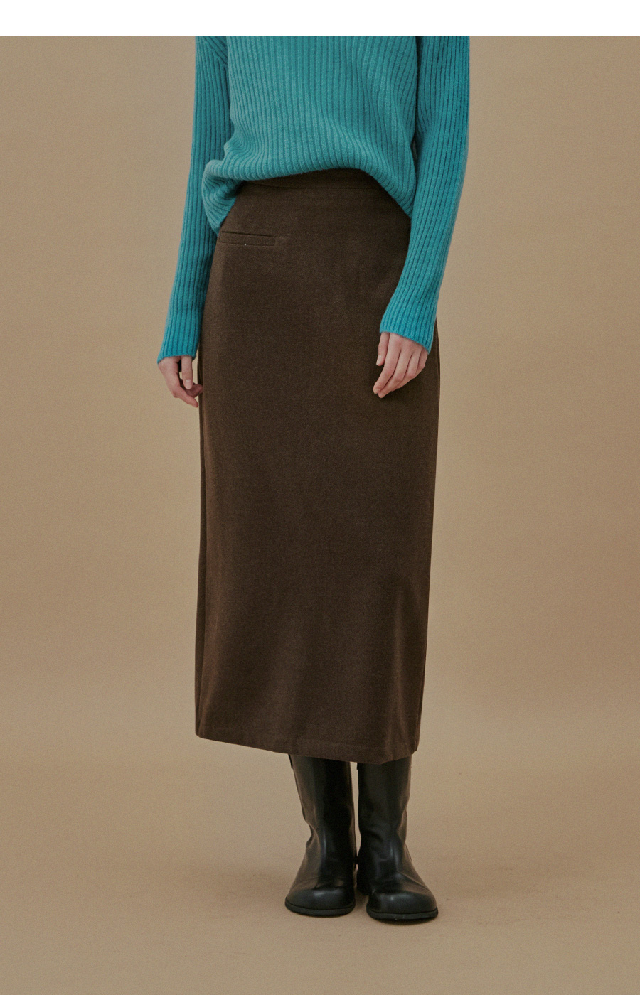 Yuta Rib Pocket Woolen fabric Long Skirt