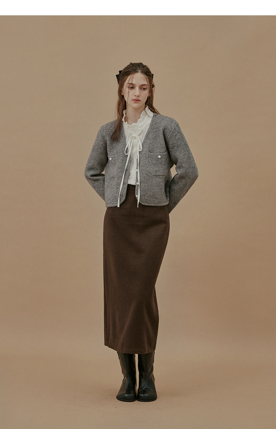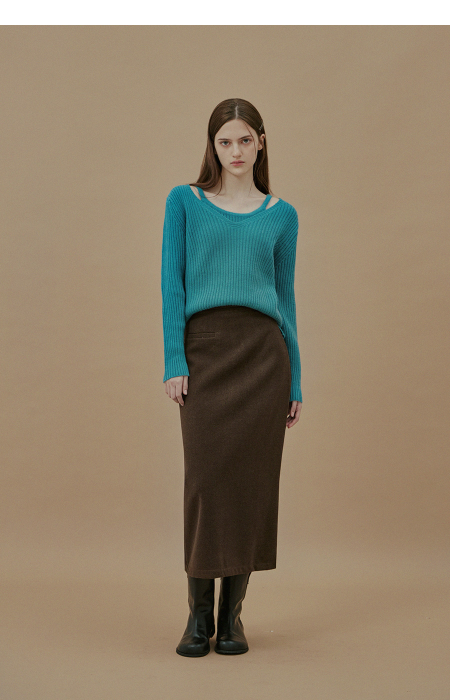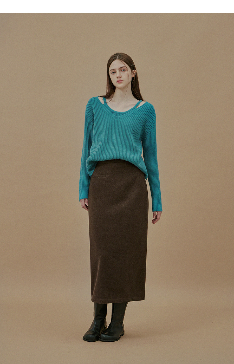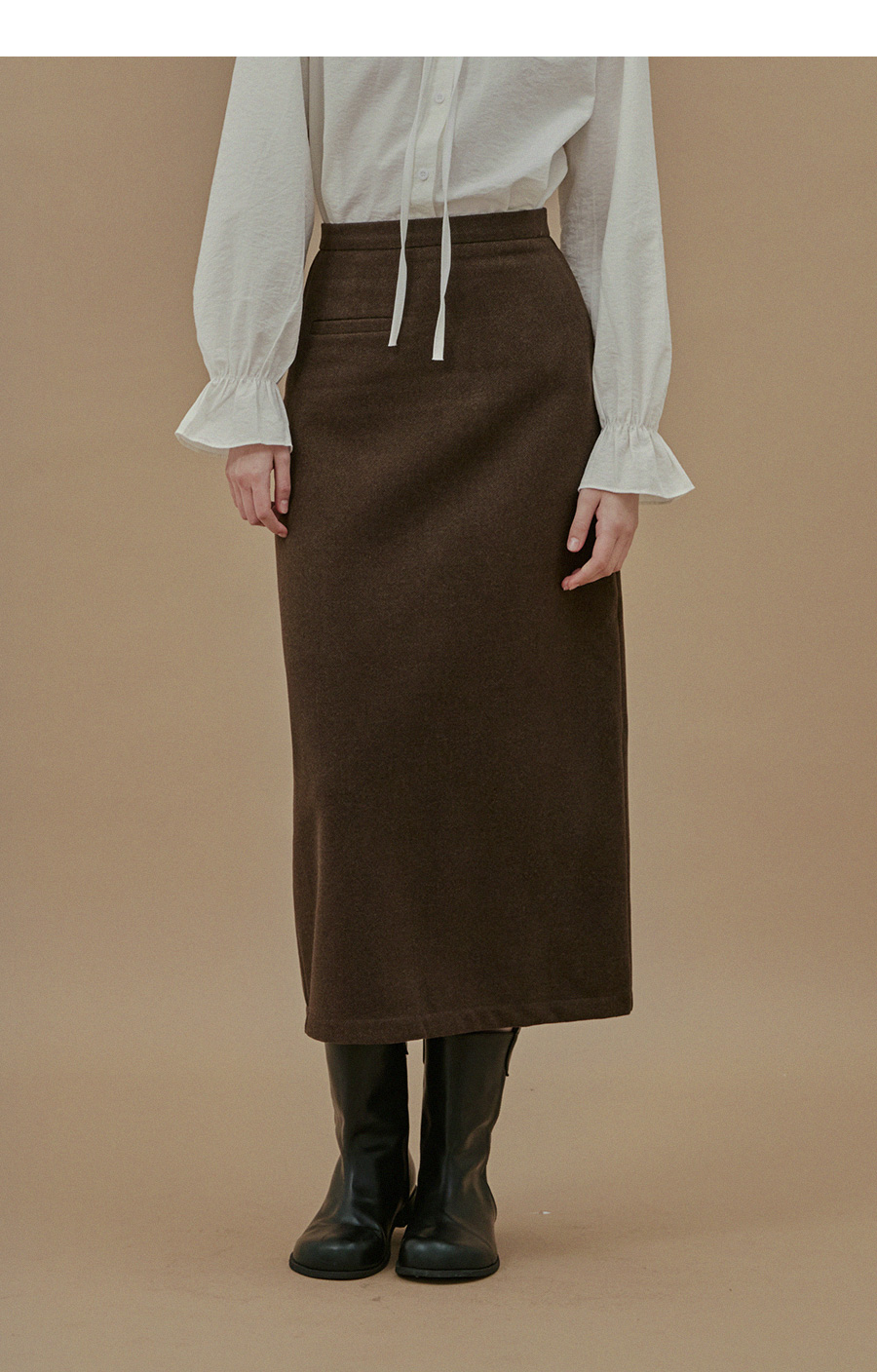 Yuta Rib Pocket Woolen fabric Long Skirt