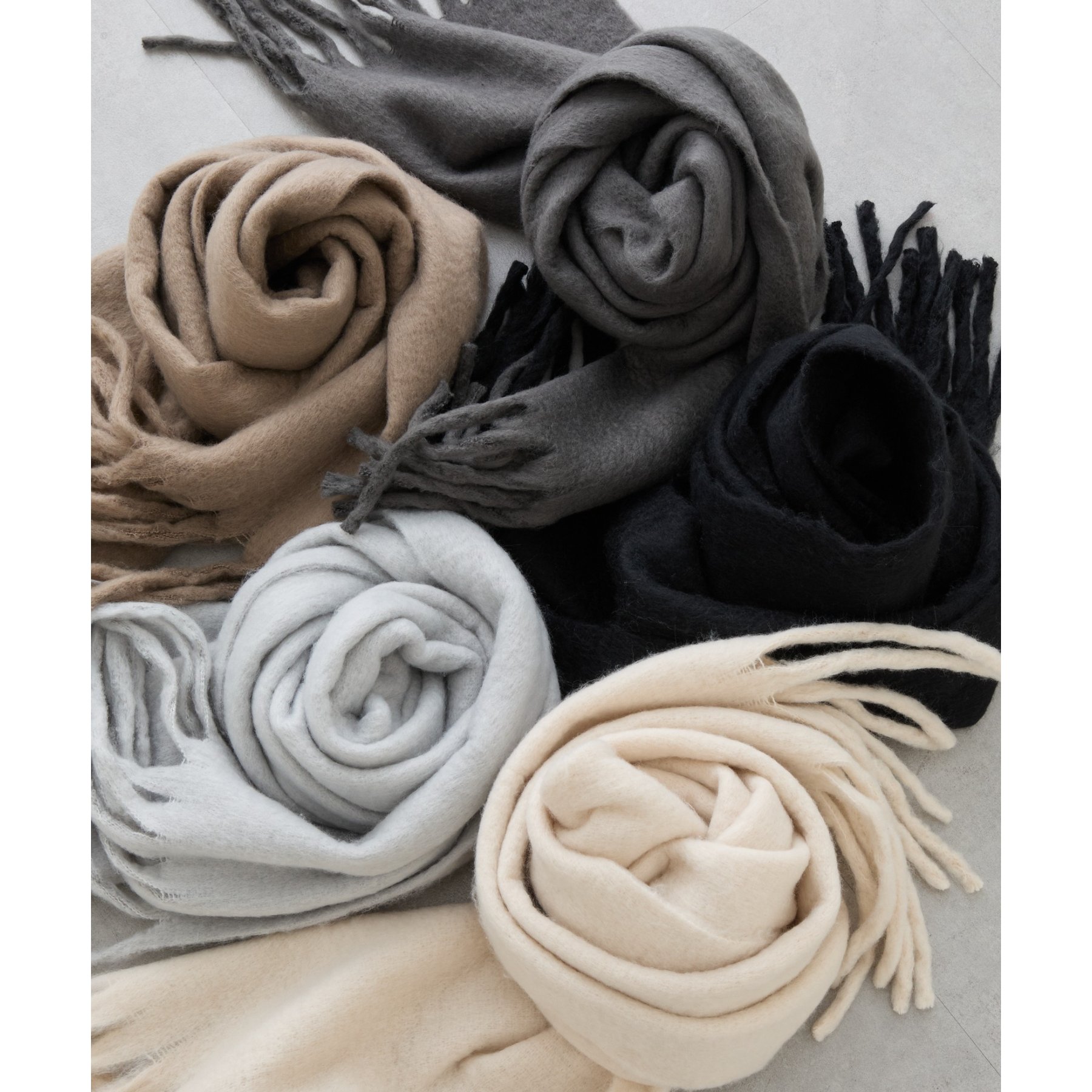 シンプルなデザインだからこそ様々なアイテムと相性が良く、合わせに困らないマフラーになっています。