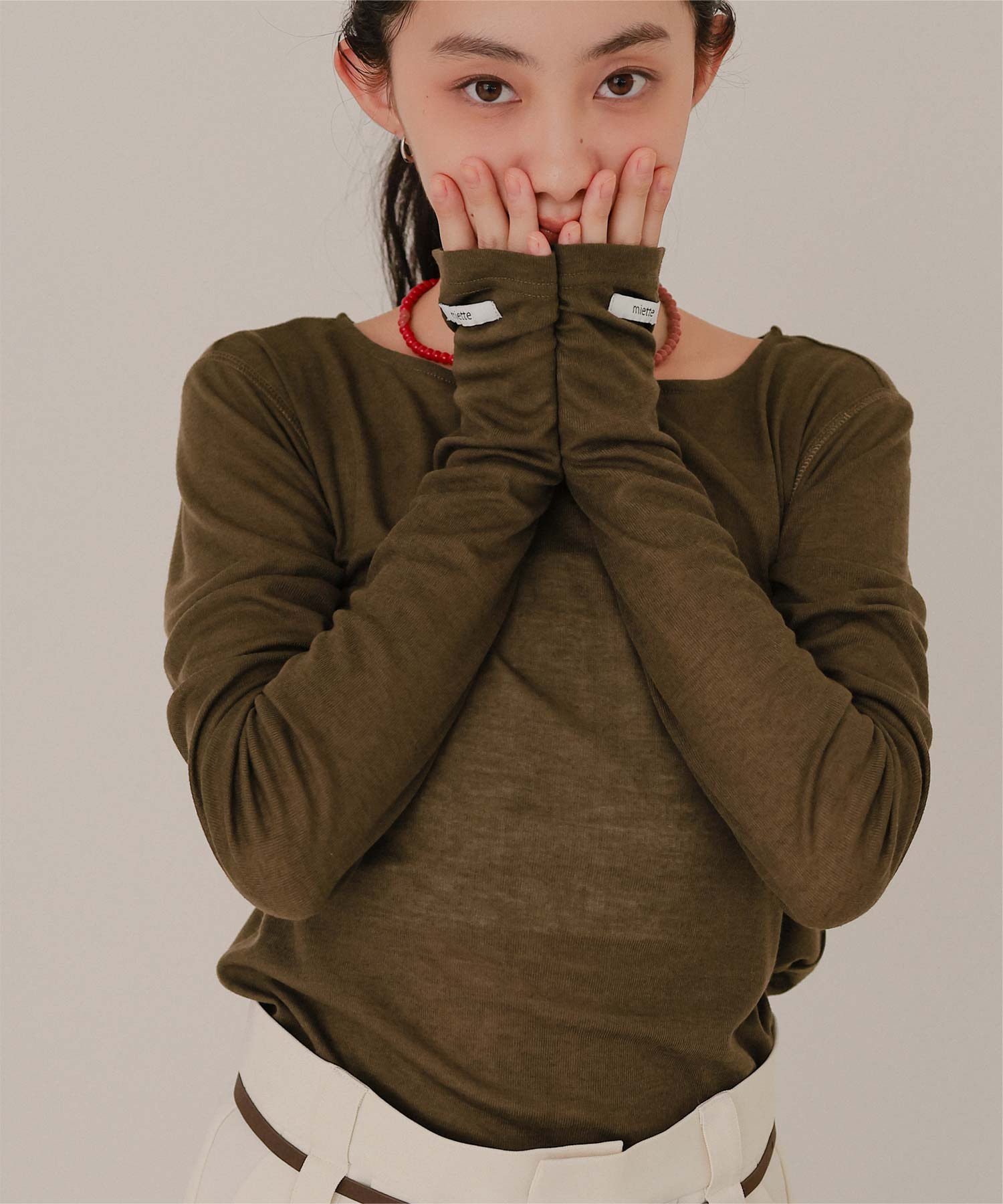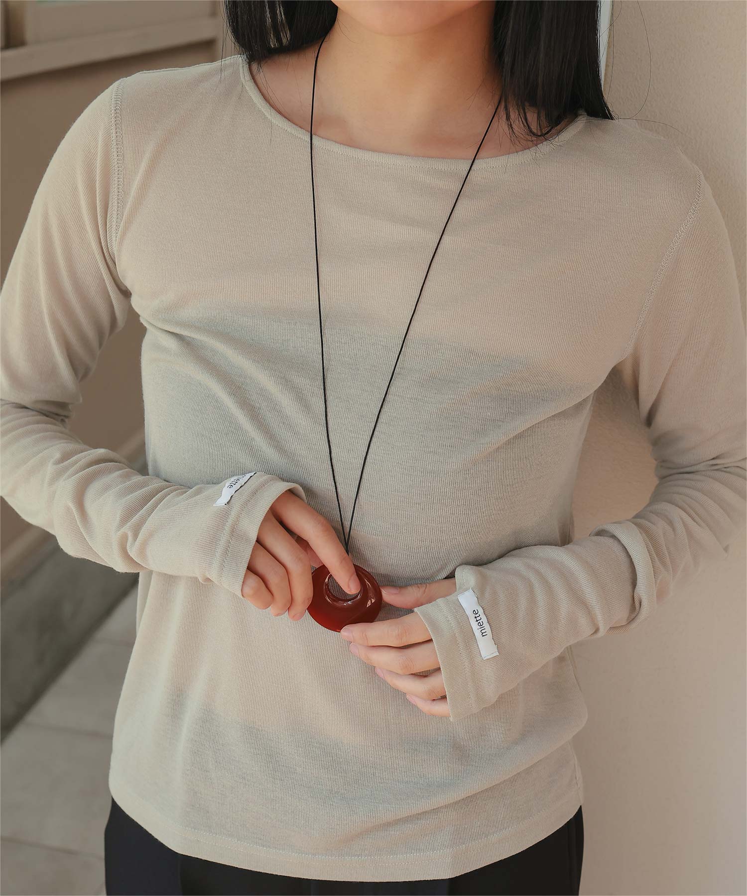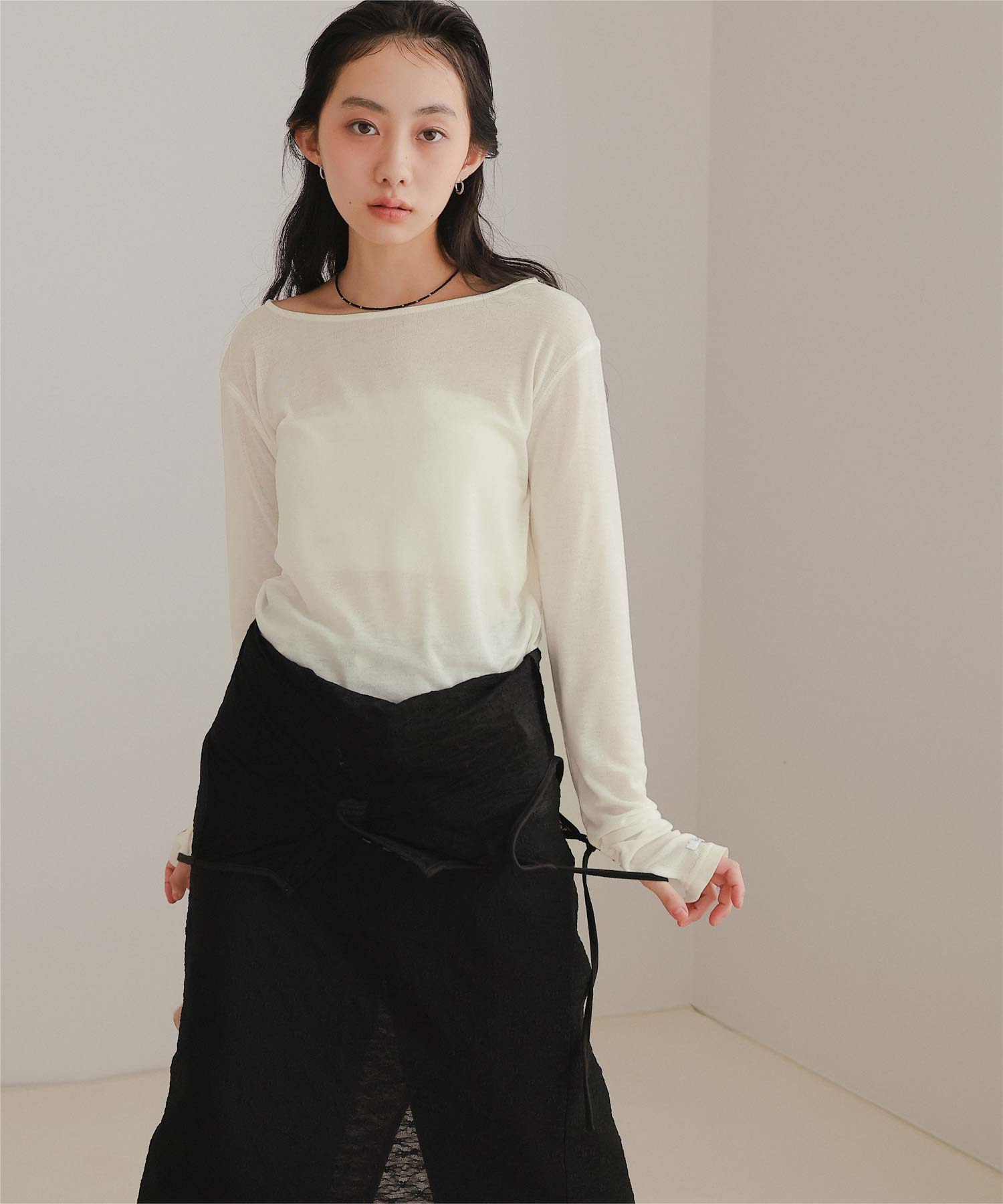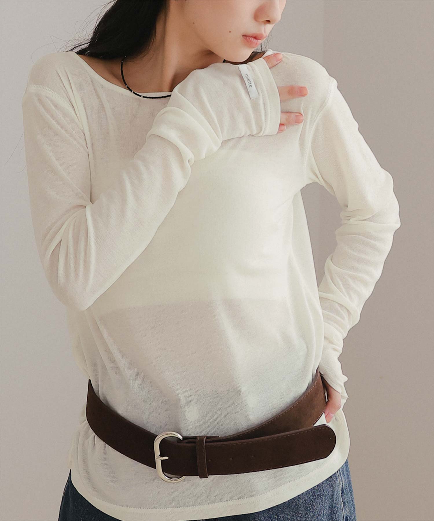 | 商品情報 | ・透け感のある素材の袖口のデザインがポイントのフィンガーホールシアートップス ・程よい透け感のある生地なので1枚でトップスでもインナーとしても◎ ・袖口のネームがポイント ・カジュアルにもモードにも合わせやすい万能アイテム ご購入前に必ずご確認ください