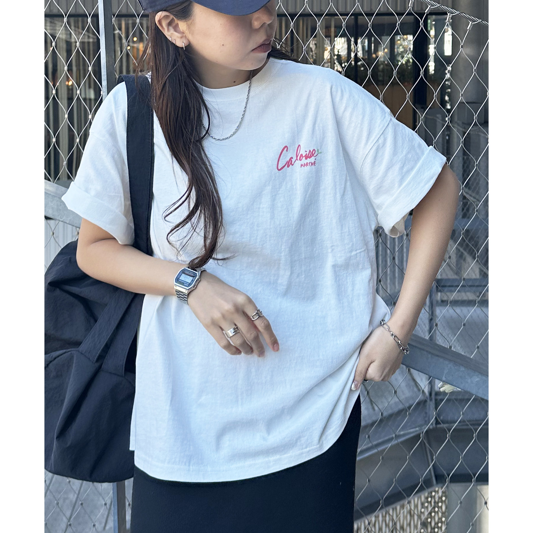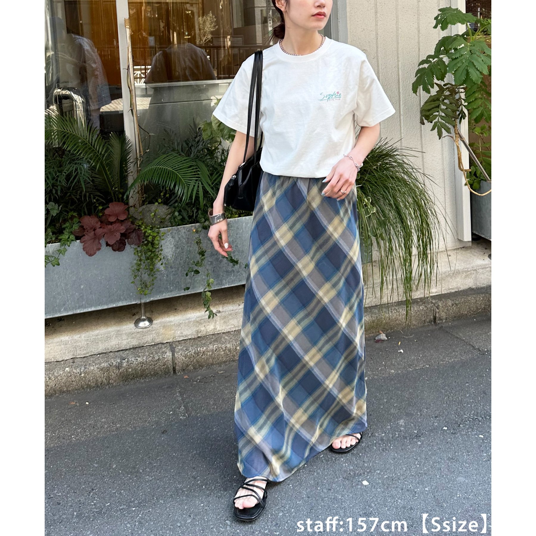 155cmレディーススタッフ:手書き風のプリントが柔らかく、どこか可愛らしさがあるので、女性もコーデに取り入れやすいデザインです!